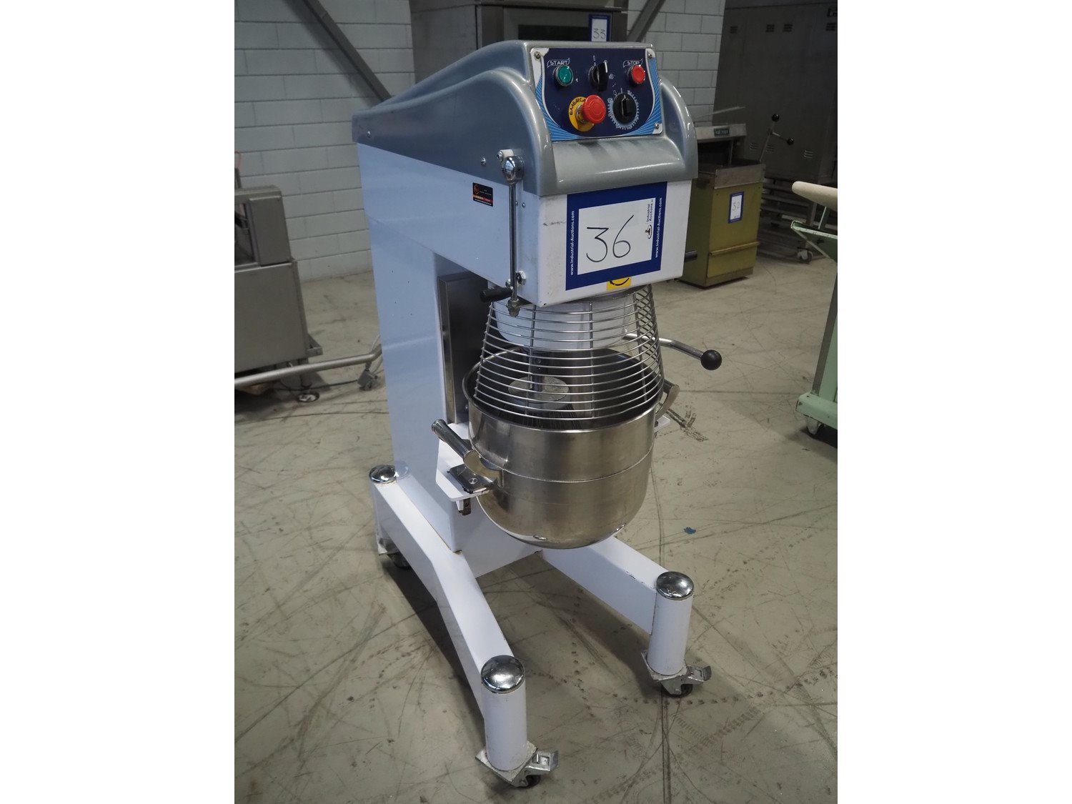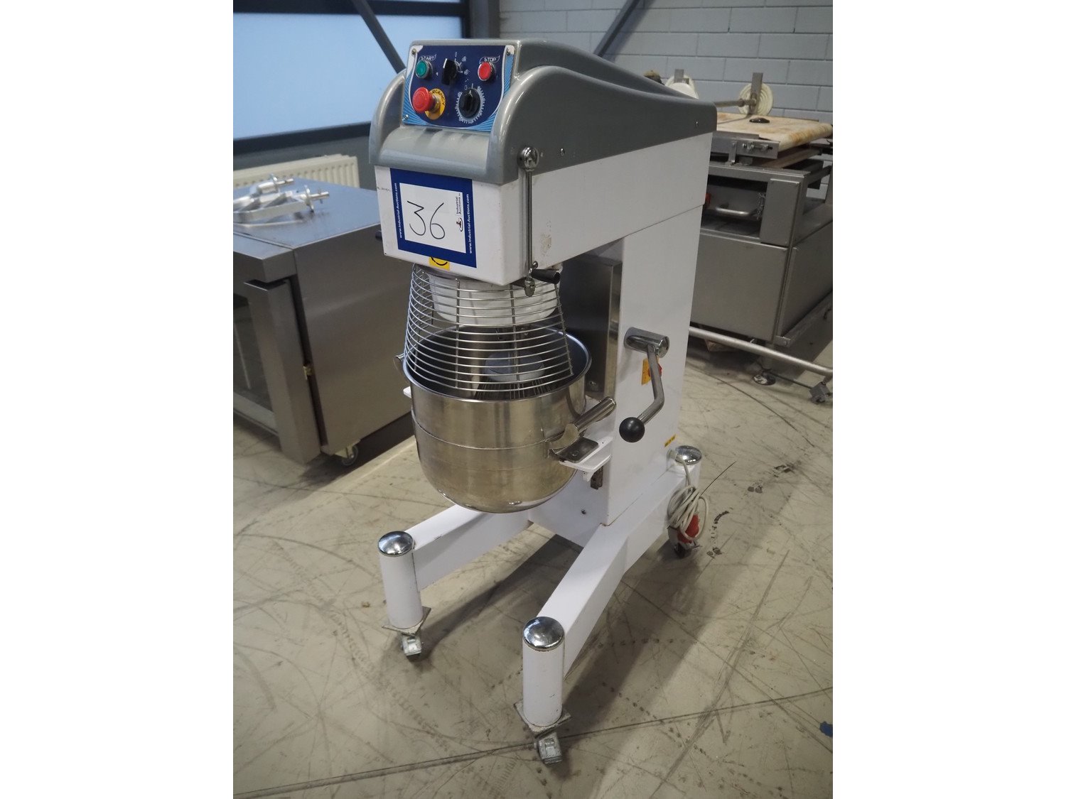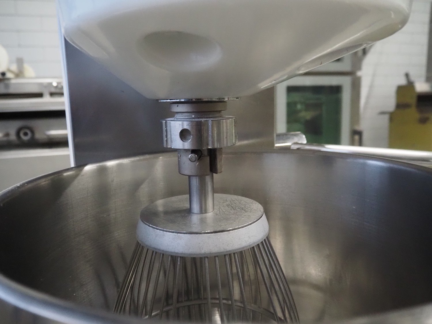 Mobile mixer, s/s bowl, inside dimensions: Ø 360 mm x 330 mm, total dimensions: 900 mm x 540 mm x 1490 mm. With whisk, paddle and dough hook.