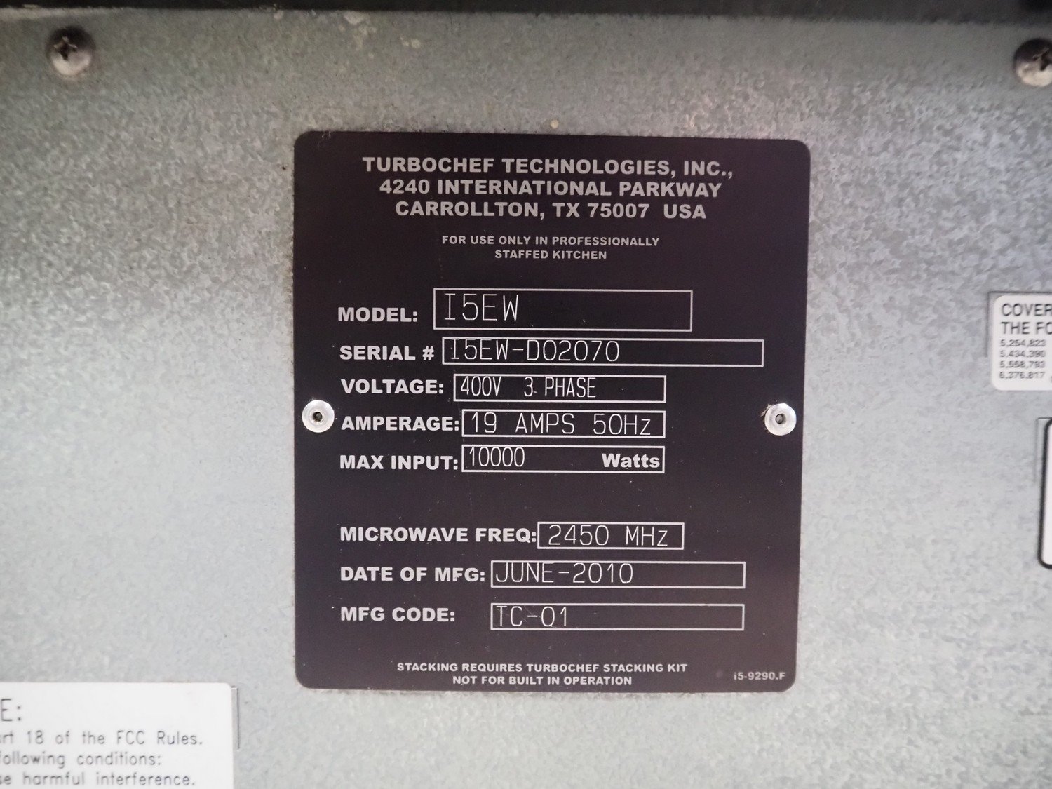 Turbochef Technologies turbo oven, model: I5EW, serial number: I5EW-D02070, year of construction: June 2010, 400 V, 3 Ph, 50 Hz, 19 A, 10000 W, inside dimensions: 610 mm x 400 mm x 250 mm, total dimensions: 750 mm x 690 mm x 610 mm.