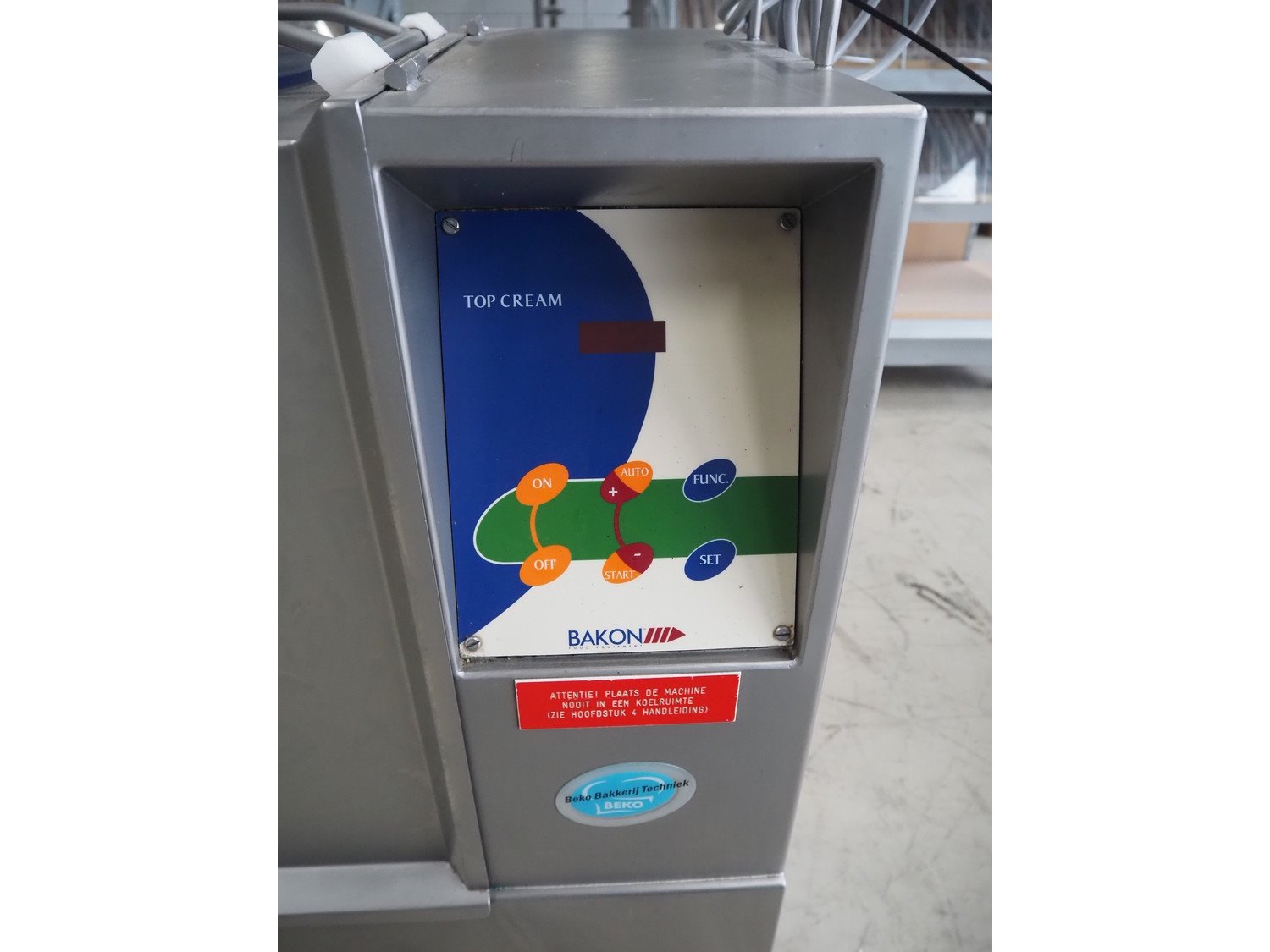 Bakon B.V. mobile whipped cream mixer, model: TC 2/10C, serial number: 7.210.135, year of construction: 2004, 230 V, 50 Hz, 1.5 kW, inside dimensions: Ø 350 mm x 450 mm, total dimensions: 800 mm x 500 mm x 1160 mm.
