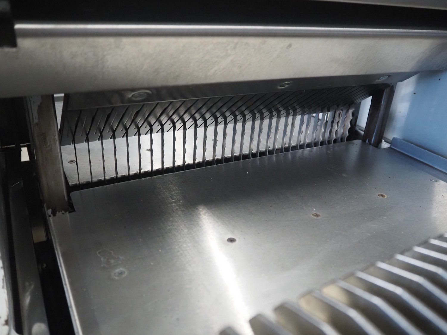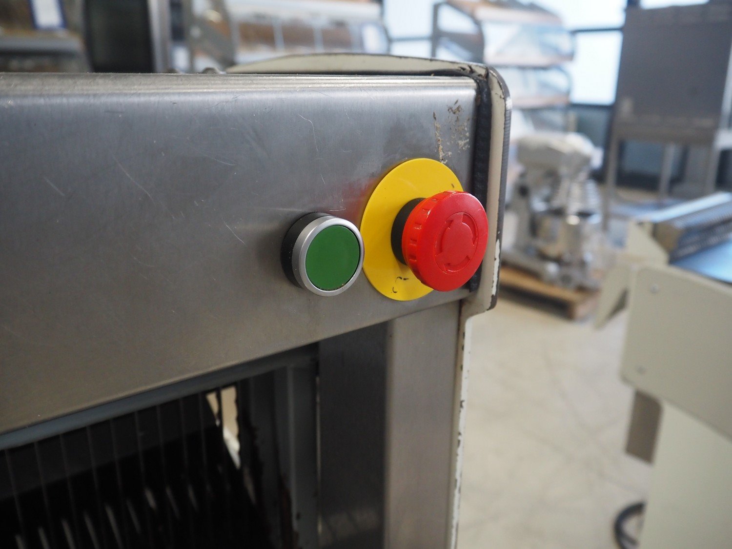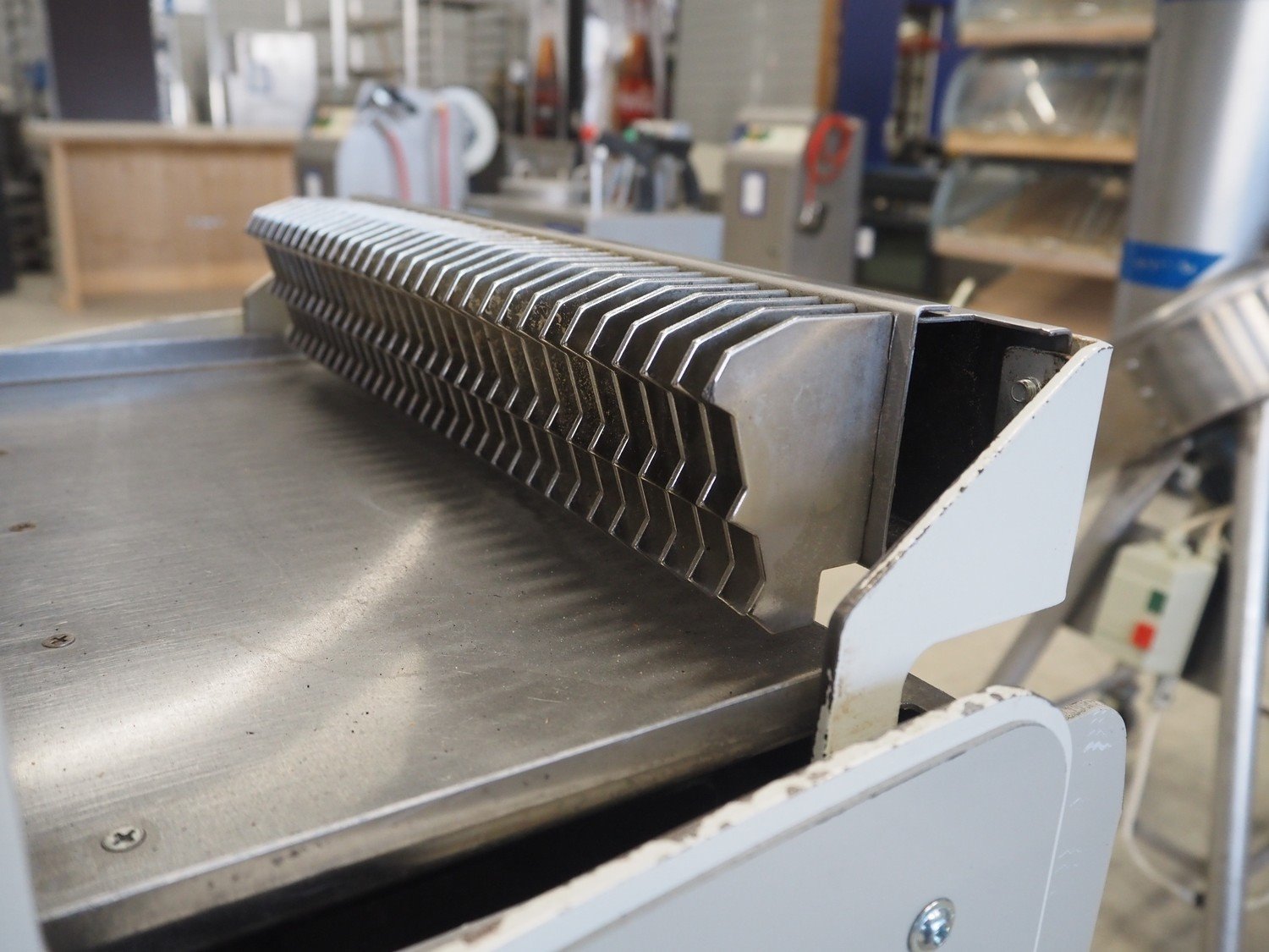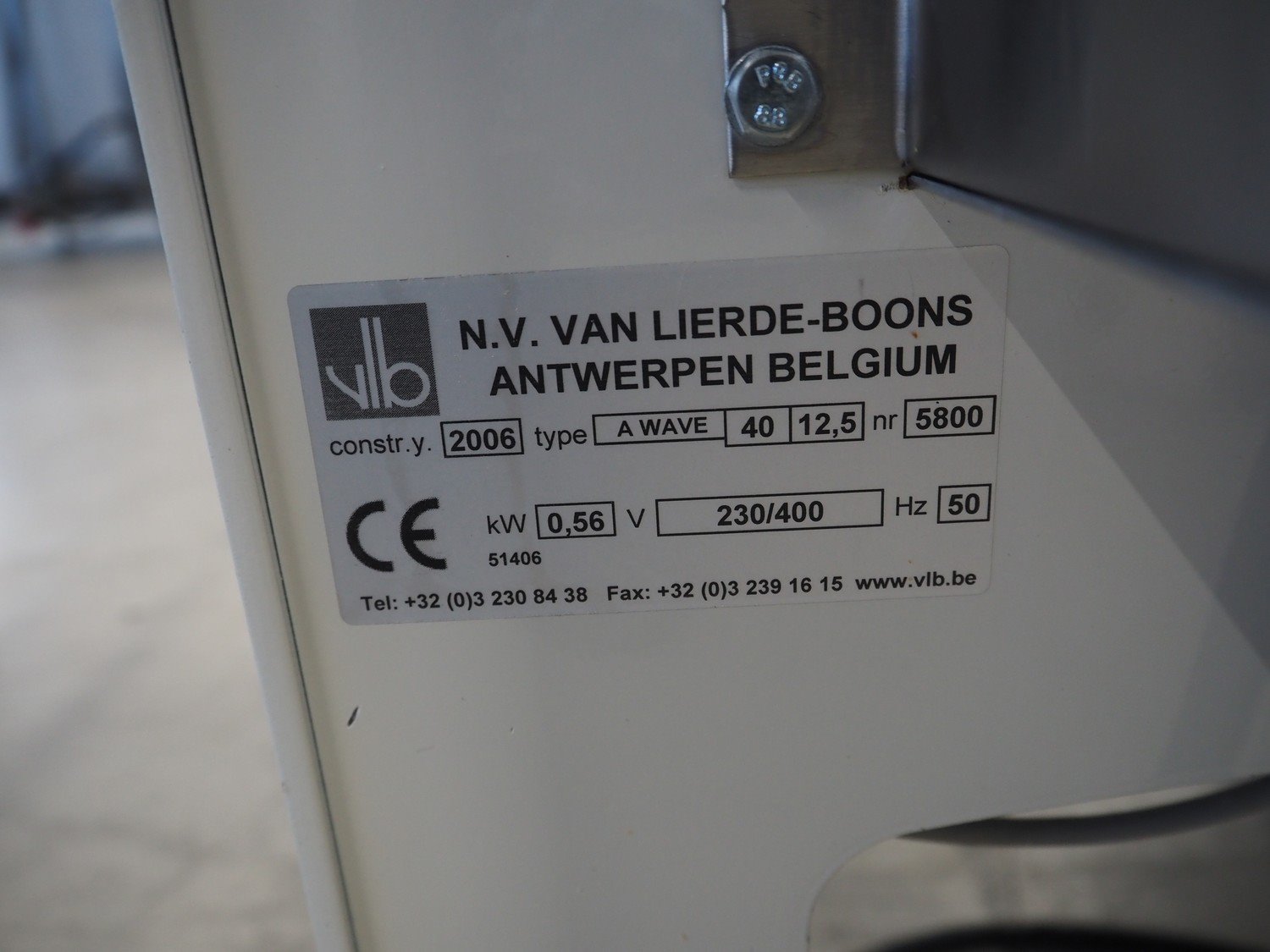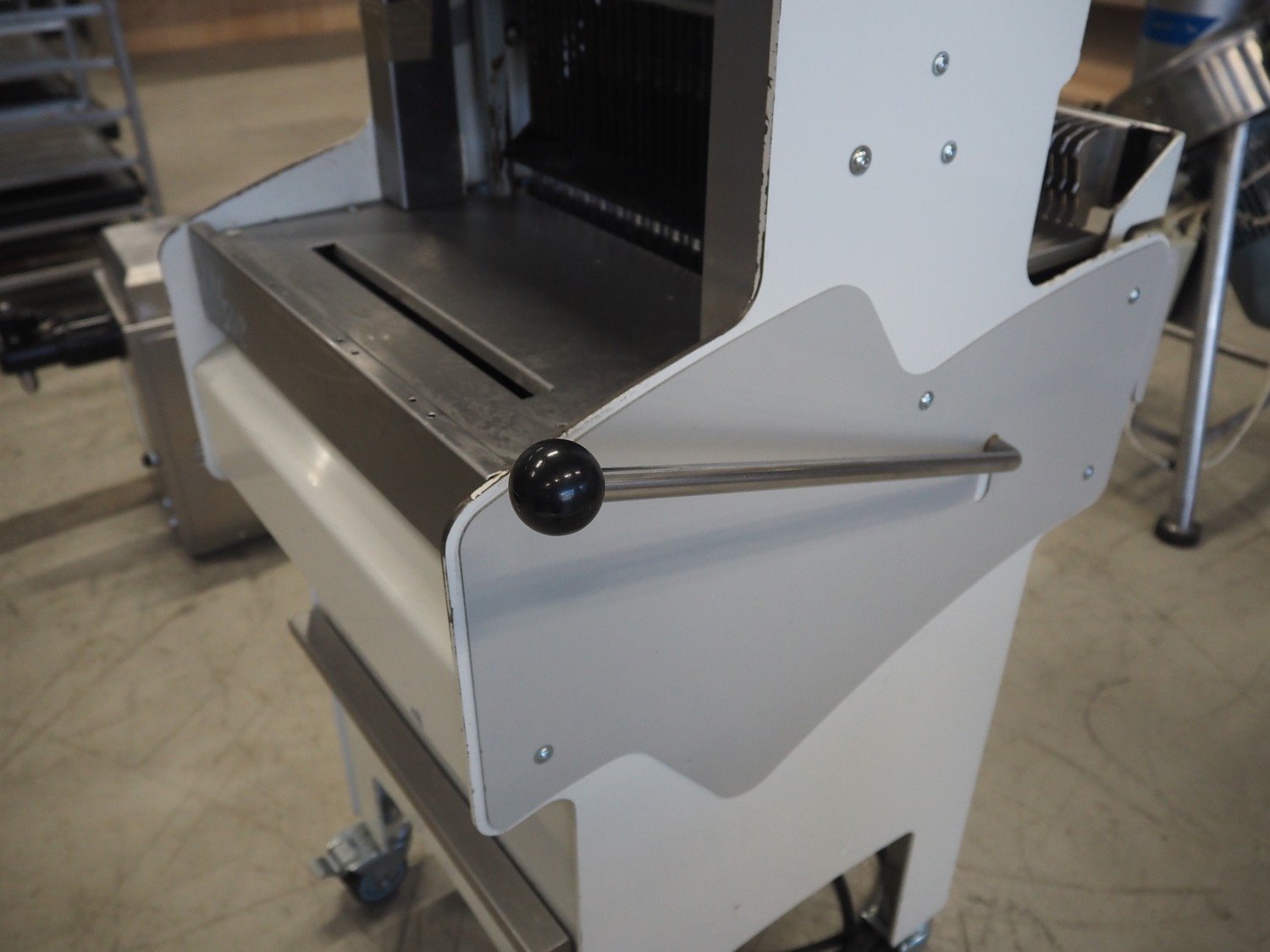 VLB mobile bread slicer, type: A Wave, number: 5800, year of construction: 2006, 230/400 V, 50 Hz, 0.56 kW, 30 knives, distance between knives: 10 mm, total dimensions: 750 mm x 630 mm x 1280 mm.