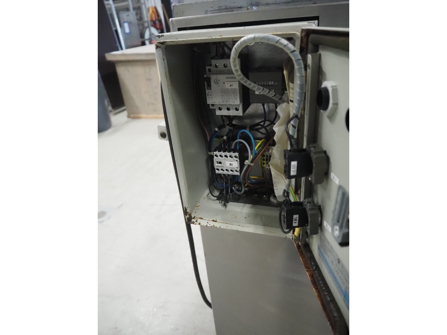 Benier dough divider, type: Afweger-B84, number: 20834A/801761, year of construction: 2002, 400 V, 3 Ph, 50 Hz, 4 A, plastic belt, belt width: 220 mm, total dimensions: 1450 mm x 720 mm x 1630 mm.
