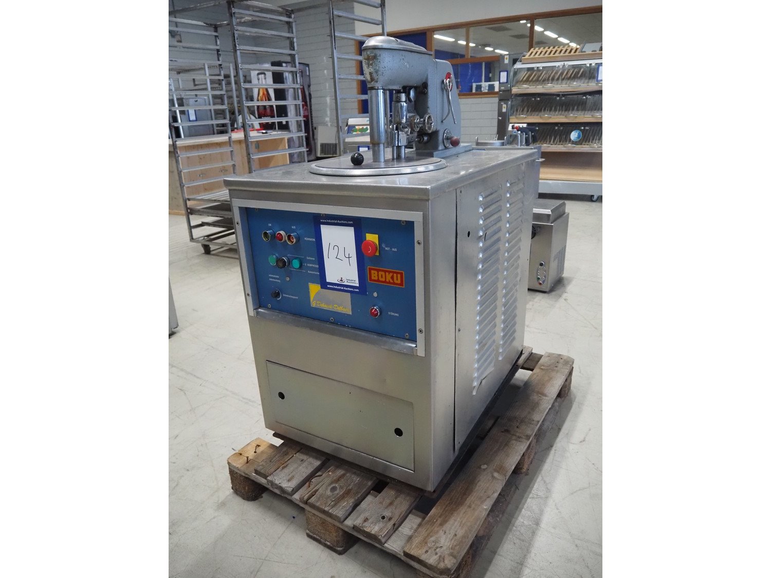 Boku cooled mixer, DWM Copeland cooling compressor, inside dimensions: Ø 360 mm x 460 mm, total dimensions: 900 mm x 600 mm x 1250 mm.