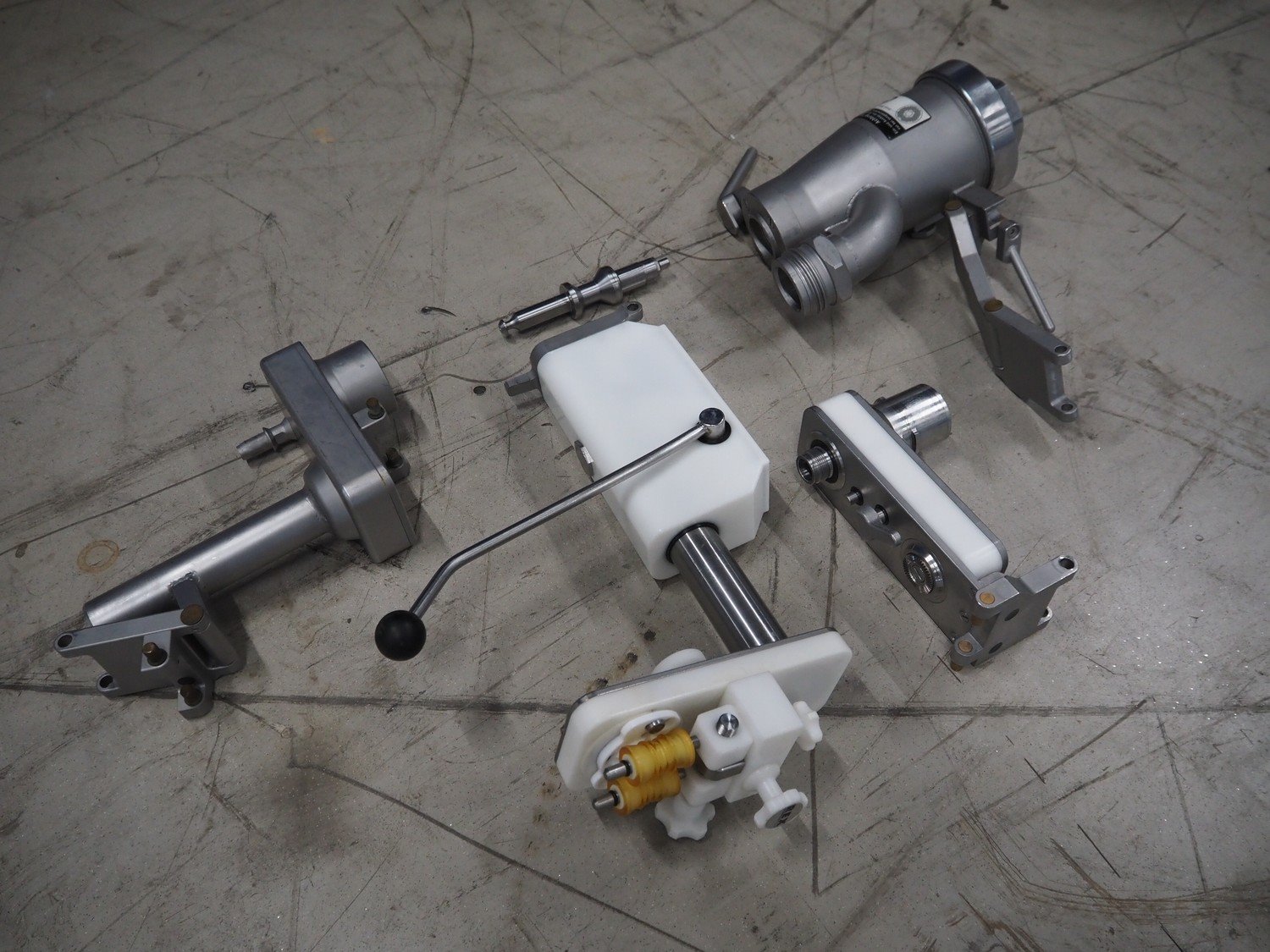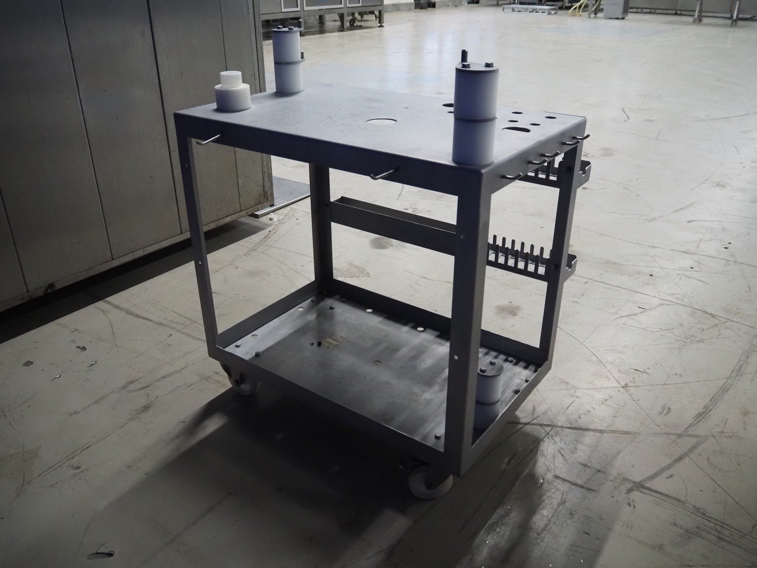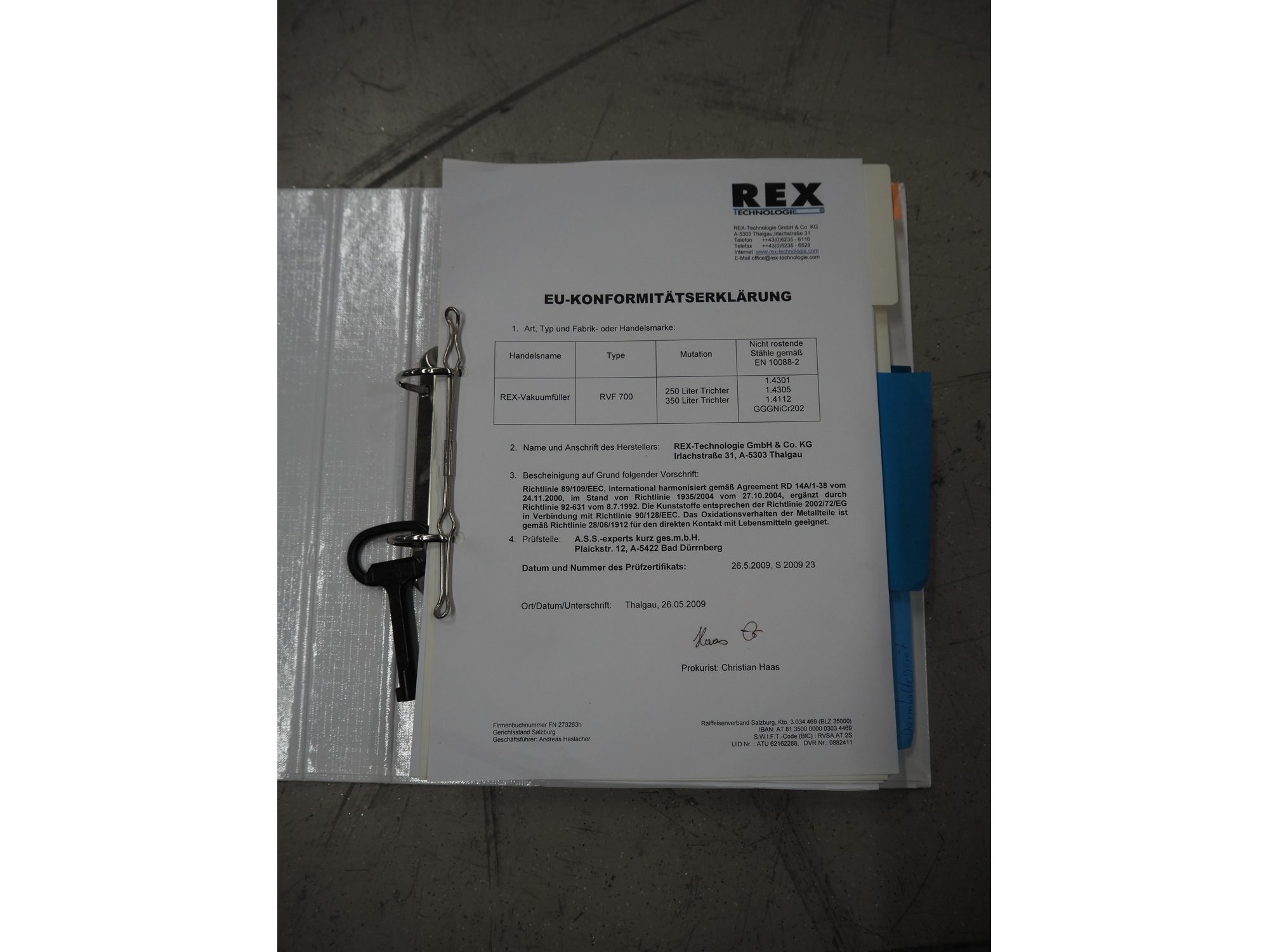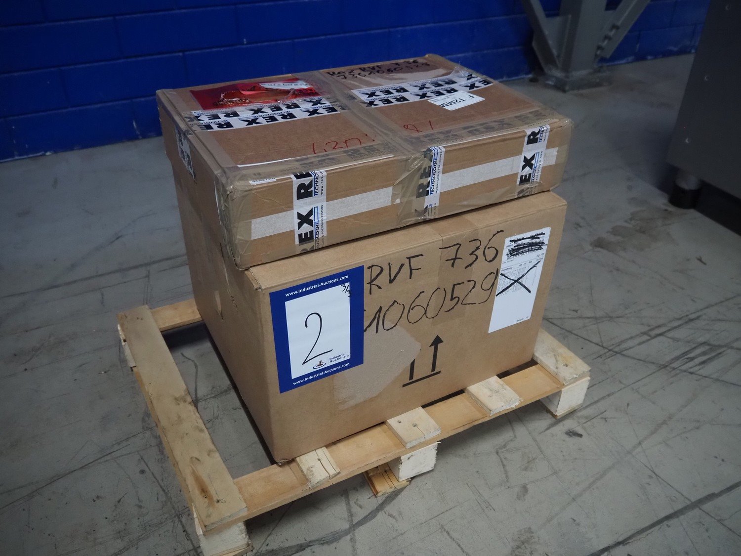 Rex vacuum filling machine, type: RVF 736, machine number: 7361060529, 400 V, 3 Ph, 50 Hz, 15 kW, dimensions: 1130 mm x 1020 mm x 1790 mm. Including s/s tool trolley and pallet with various parts, among others: Complete filling grinder with grinder, offset gearbox and turning gearbox.