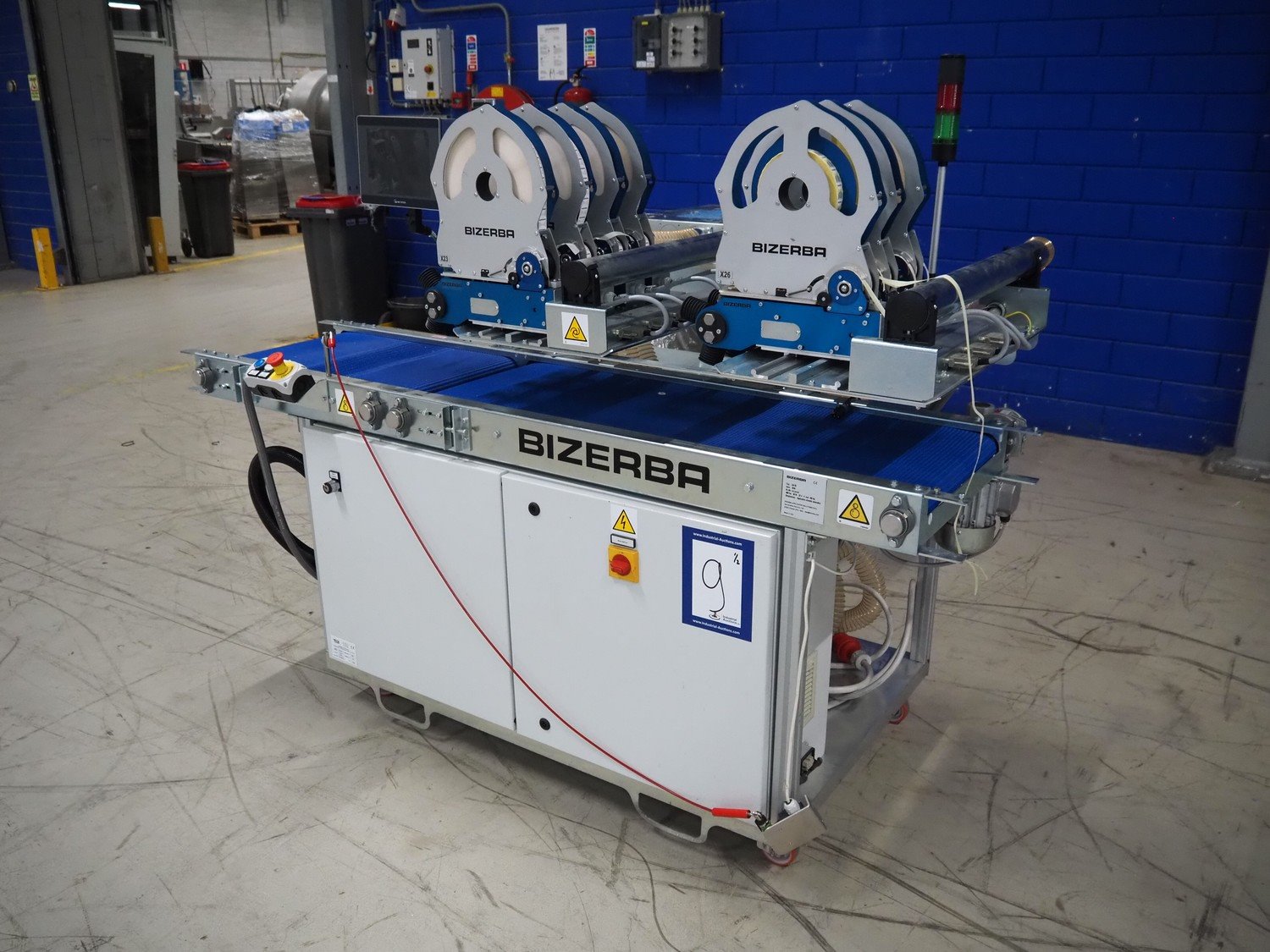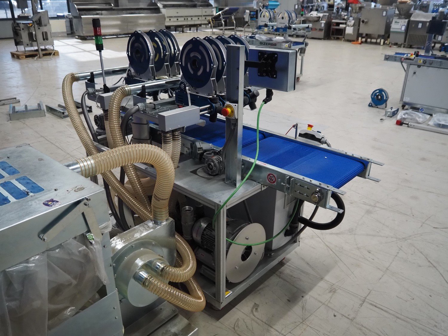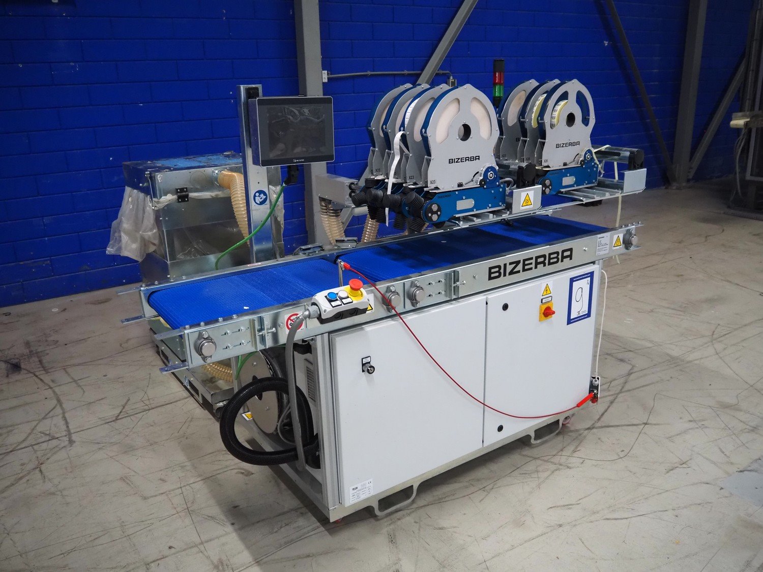 Bizerba labeller with suction unit, 7 cassettes with labels, type: LDI 20, number: 16/3036, year of construction: 2016, 400 V, 50 Hz, 32 A, weight: 435 kg, plastic mesh belt, belt width: 400 mm, total dimensions: 2000 mm x 940 mm x 1510 mm. Including suction unit, dimensions suction unit: 1150 mm x 620 mm x 1100 mm. Technical condition unknown.