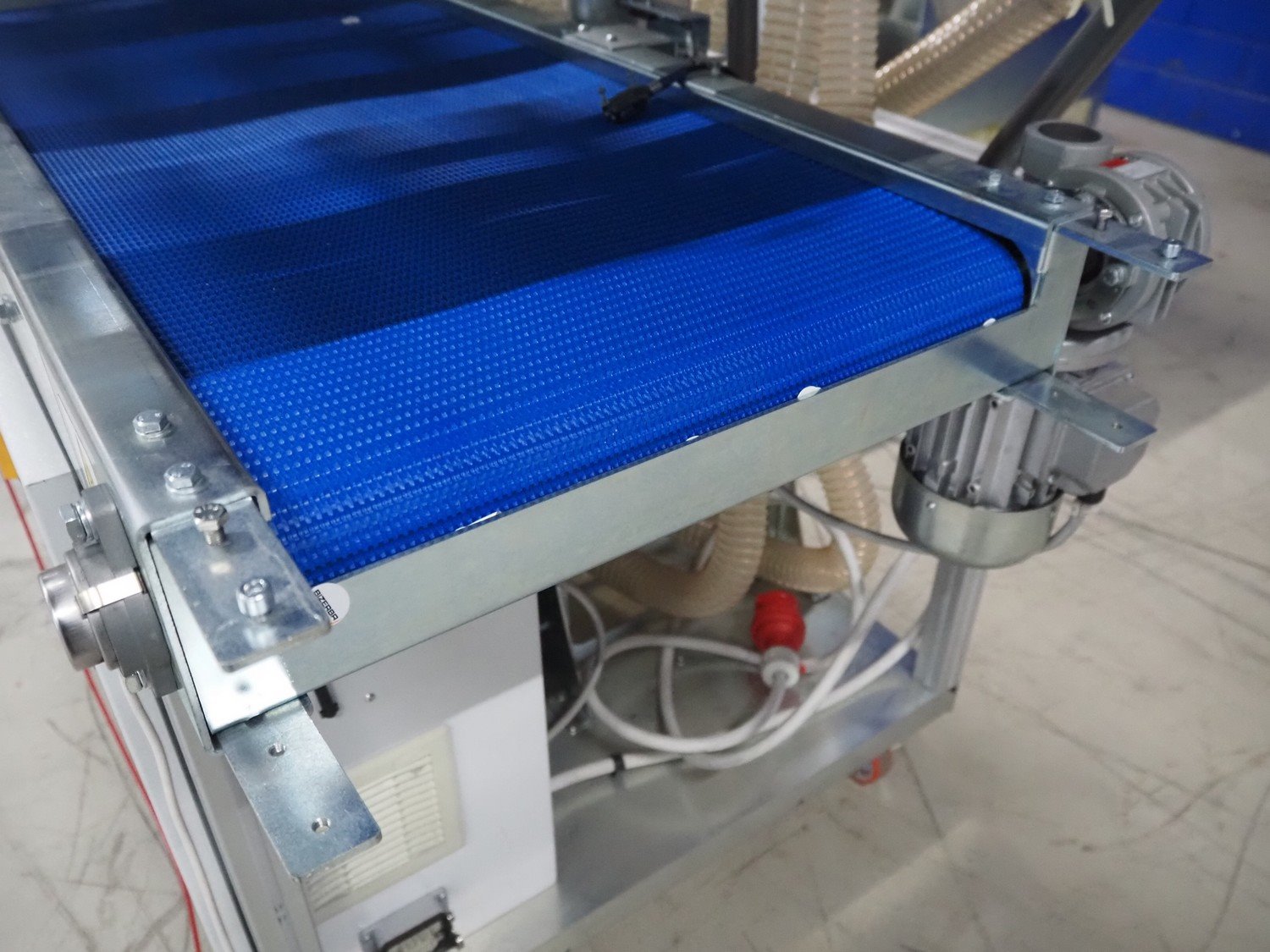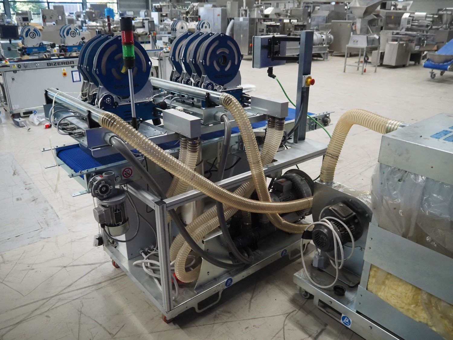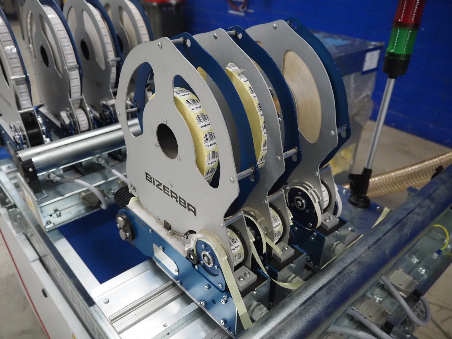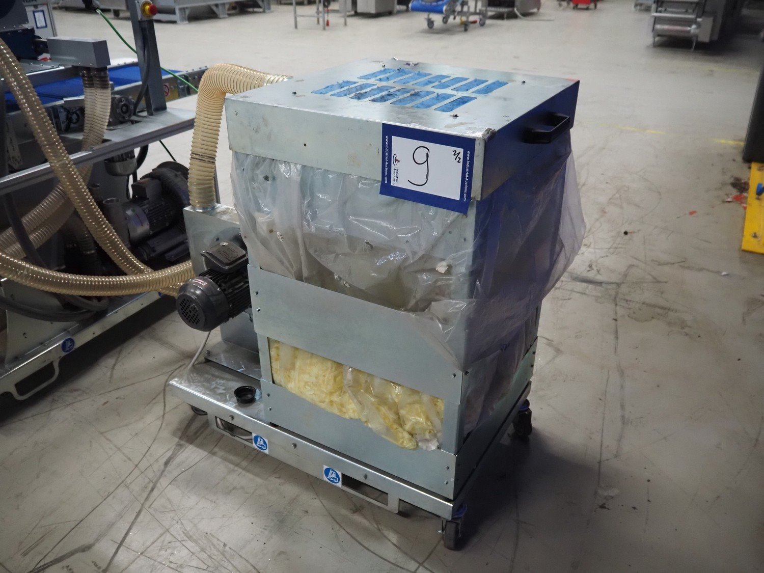 Bizerba labeller with suction unit, 7 cassettes with labels, type: LDI 20, number: 16/3036, year of construction: 2016, 400 V, 50 Hz, 32 A, weight: 435 kg, plastic mesh belt, belt width: 400 mm, total dimensions: 2000 mm x 940 mm x 1510 mm. Including suction unit, dimensions suction unit: 1150 mm x 620 mm x 1100 mm. Technical condition unknown.
