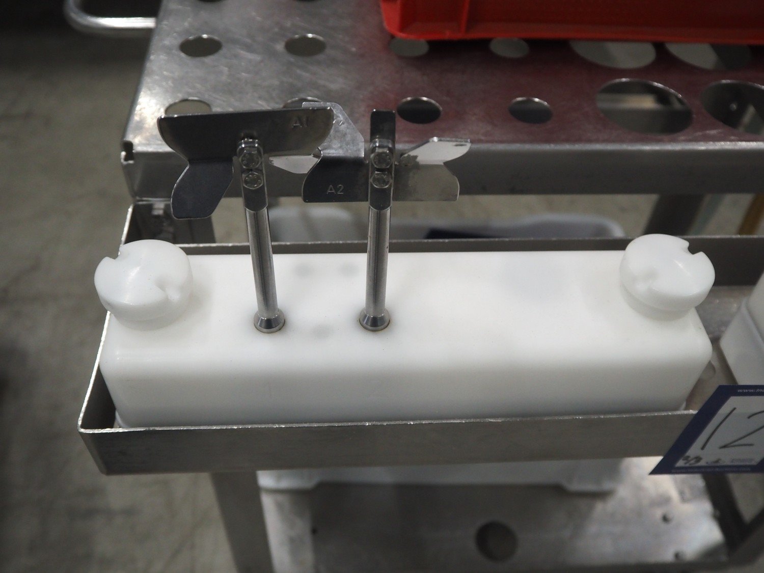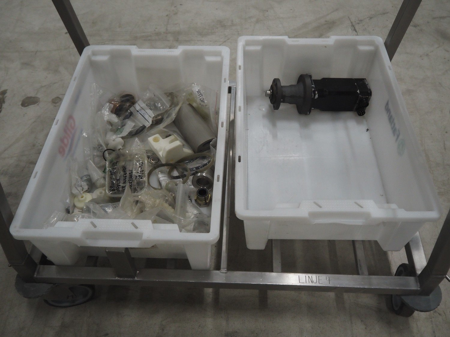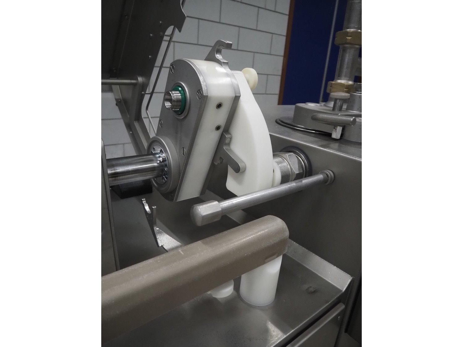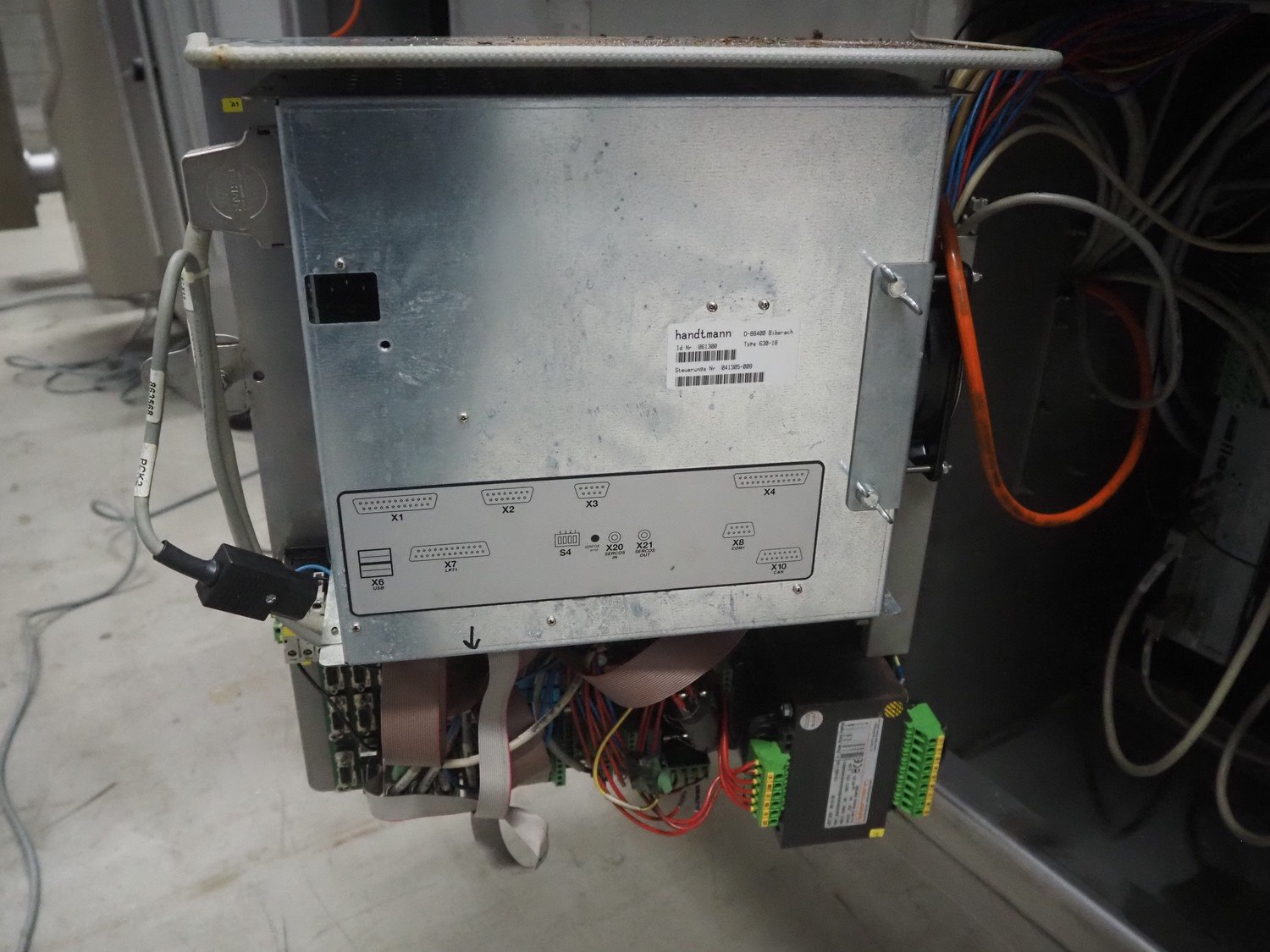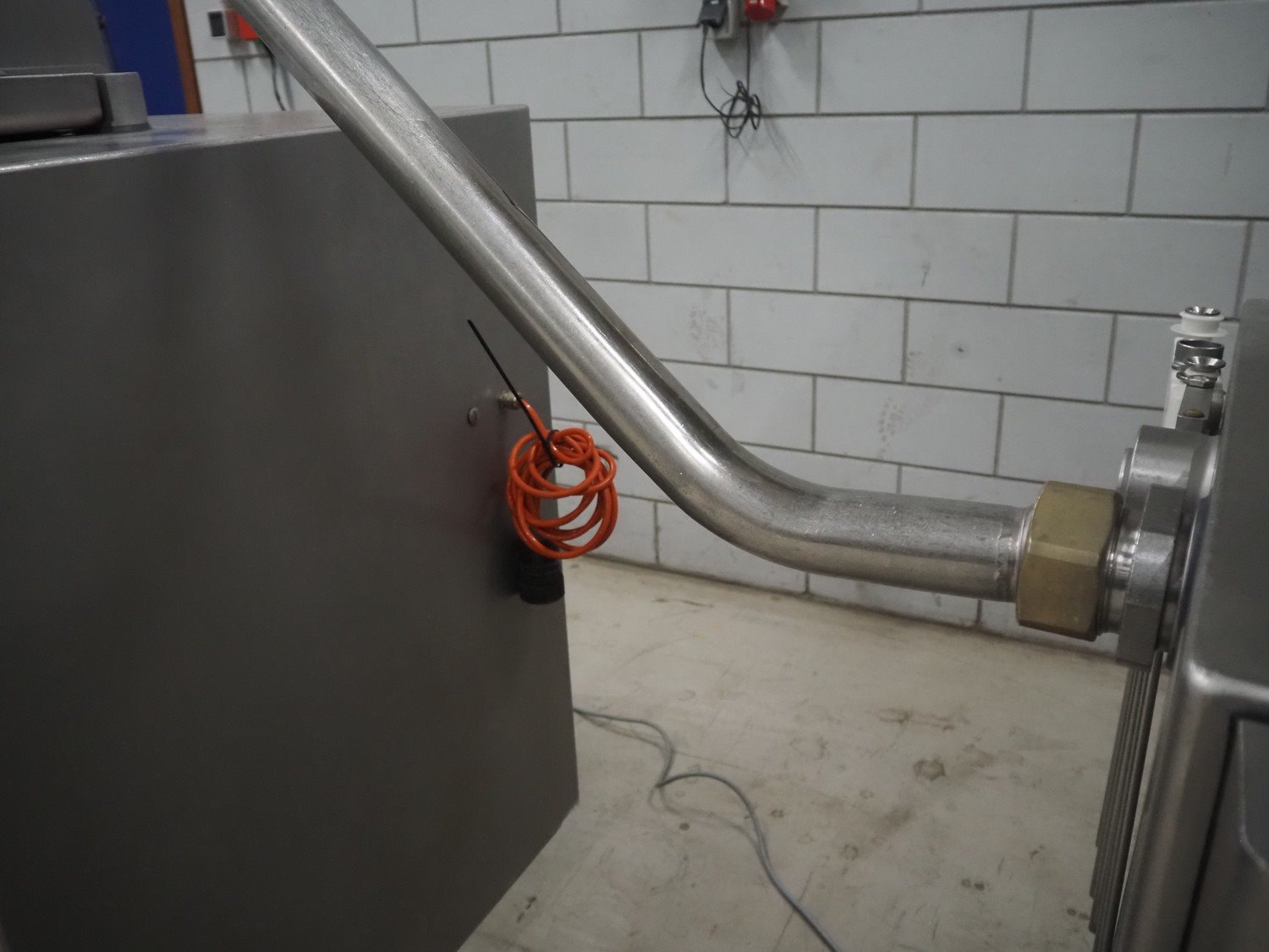 Handtmann mobile portioning and linking machine, type: 242-01, number: 501, year of construction: 2004, 400 V, 3 Ph, 50 Hz, 15 A, 10 kW, dimensions: 2600 mm x 880 mm x 1780 mm. Including 2 tool trolleys, dimensions trolleys: 1050 mm x 750 mm x 1000 mm and 900 mm x 860 mm x 880 mm.