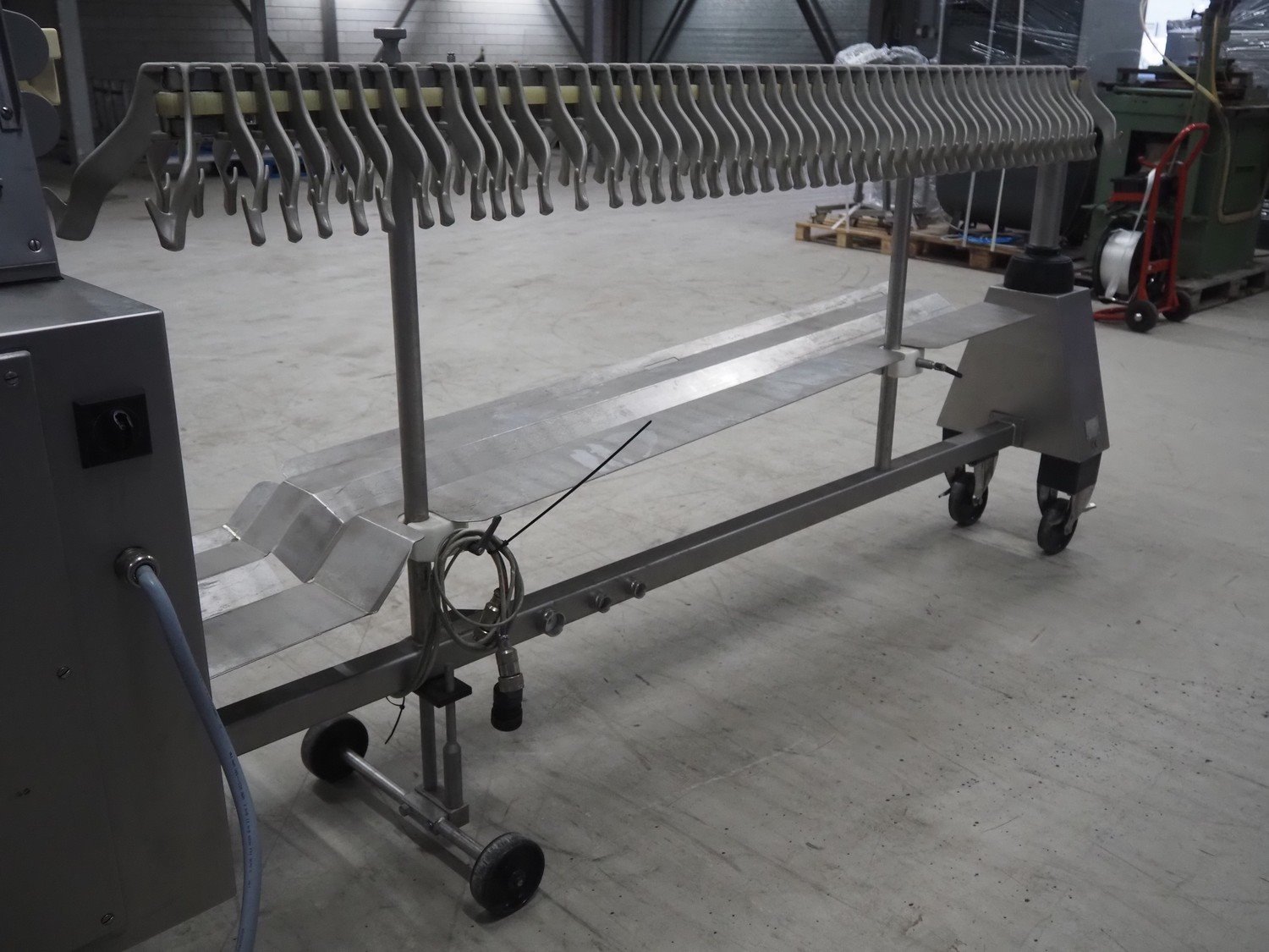 Handtmann mobile hanging machine: 220-16, number: 763, year of construction: 1999, dimensions: 2600 mm x 570 mm x 1400 mm.