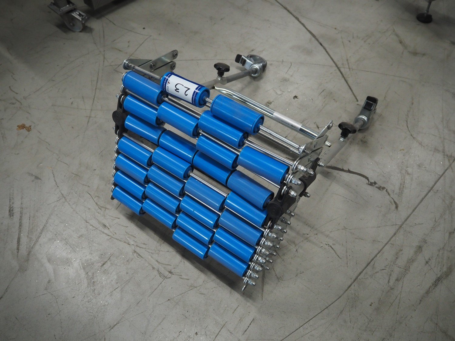 Mobile foldable roller conveyor, plastic rollers, roller width: 490 mm, total dimensions: 600 mm x 500 mm x 860 mm.