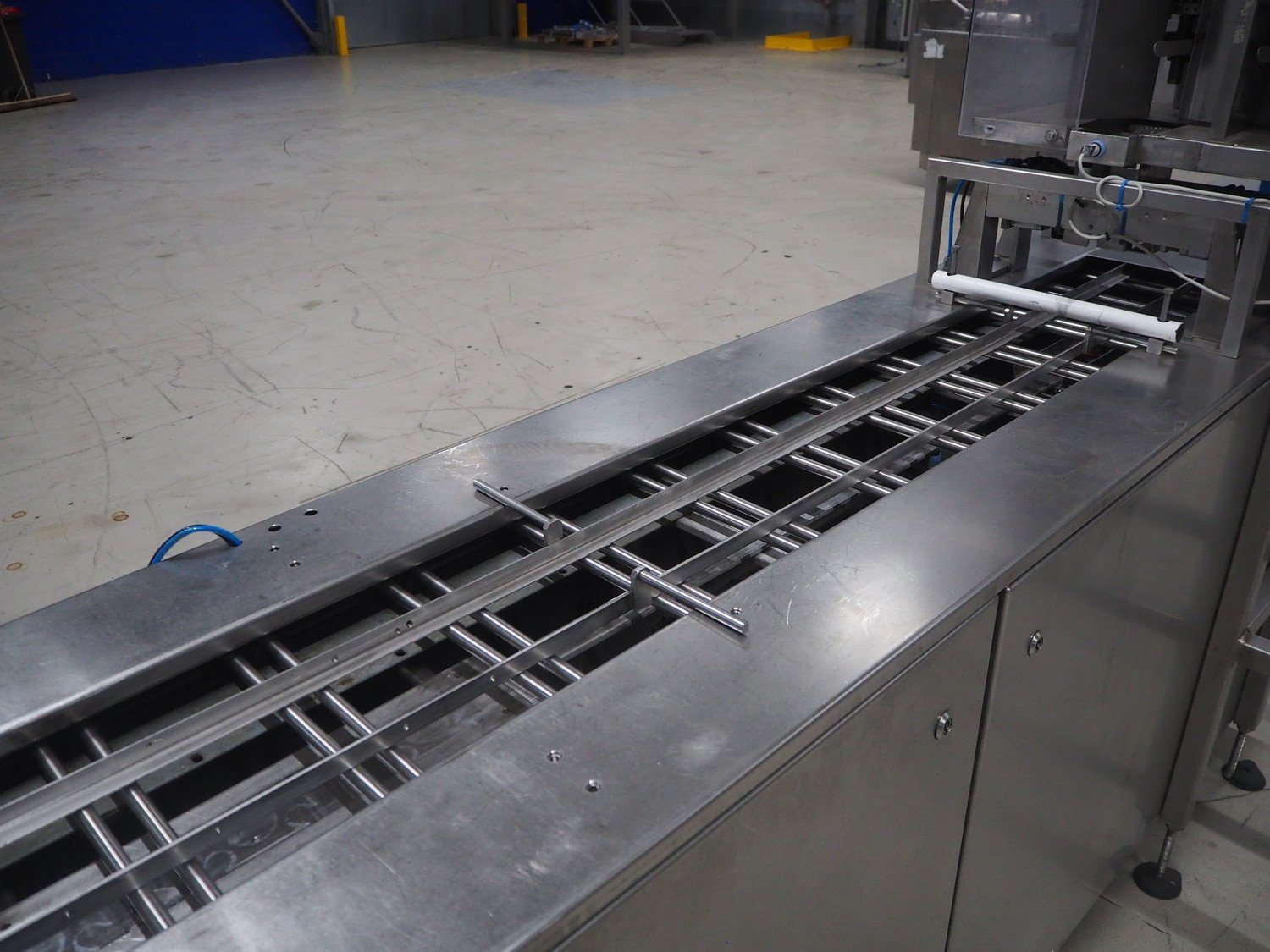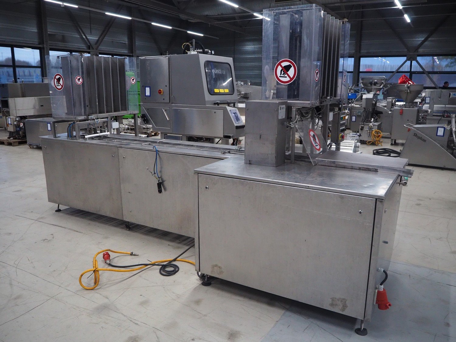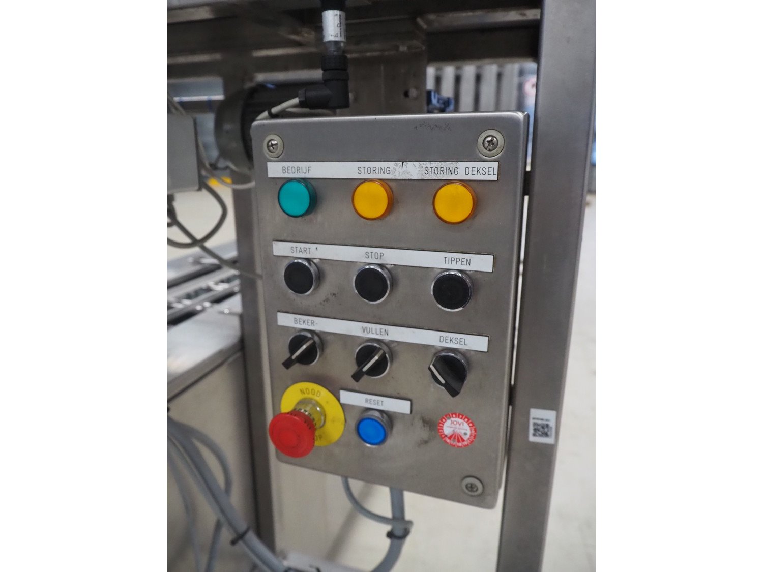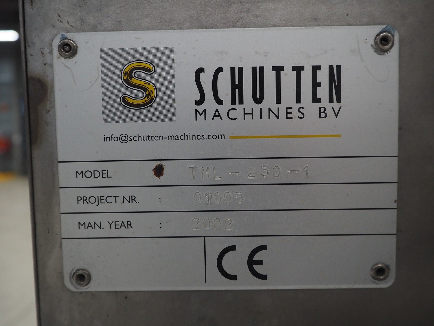 Schutten Machines BV water cup filling and closing machine, model: TML-250-1 number: 01005, year of construcion: 2002, diameter cutps: 75 mm, total dimensions: 4160 mm x 1690 mm x 2210 mm.
