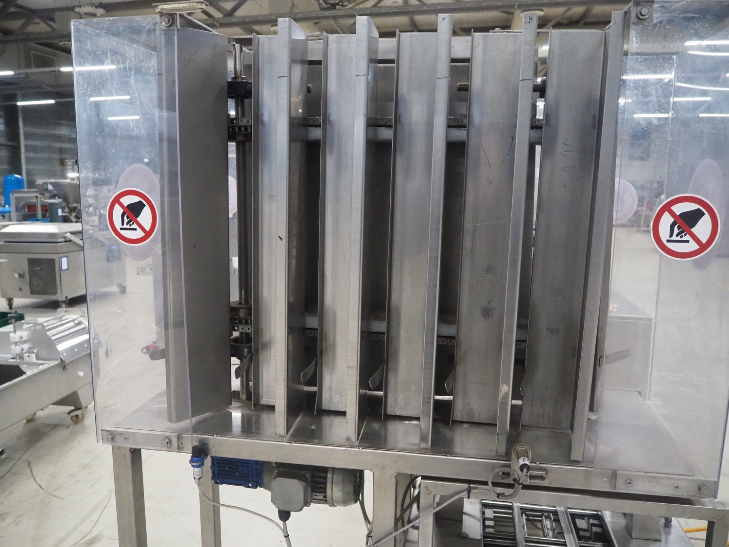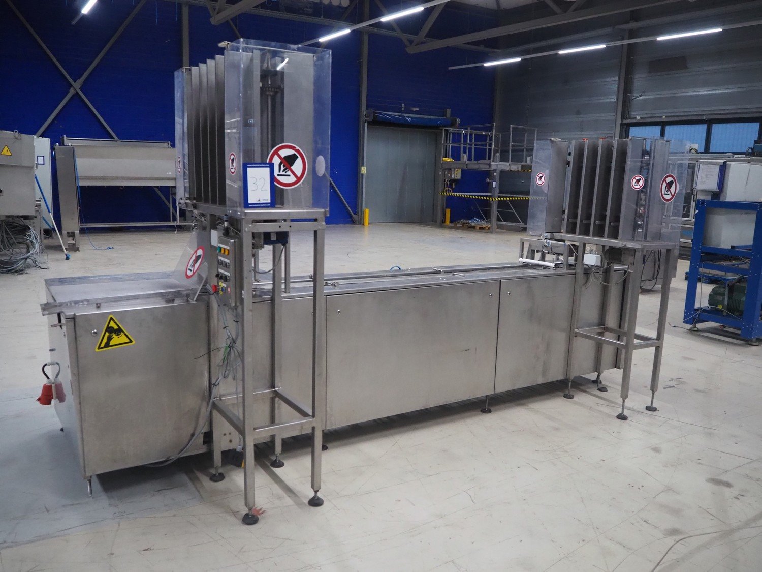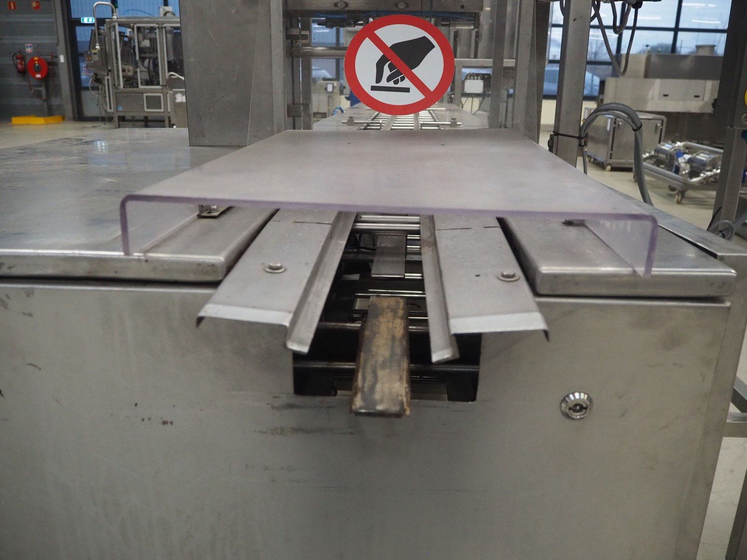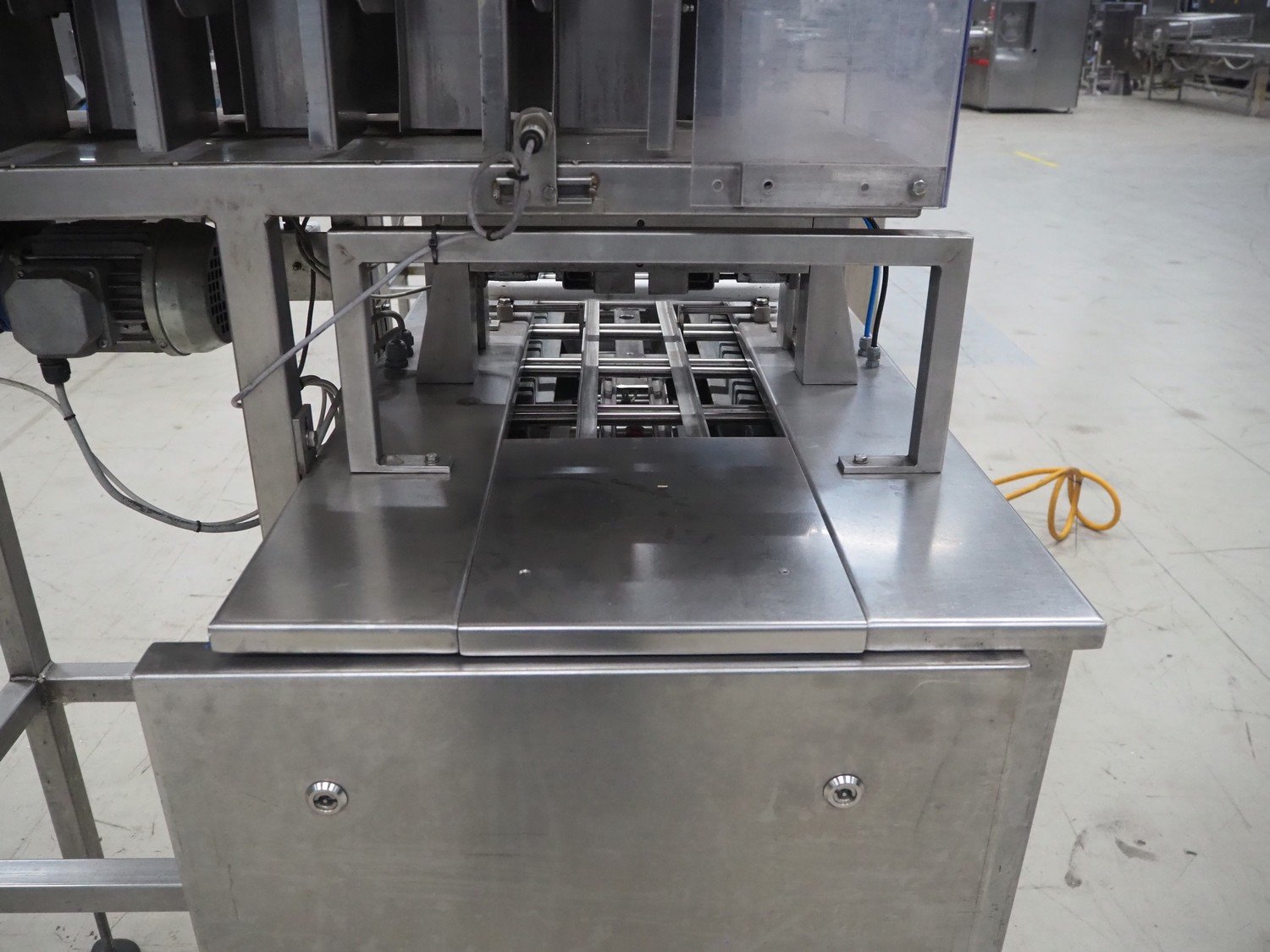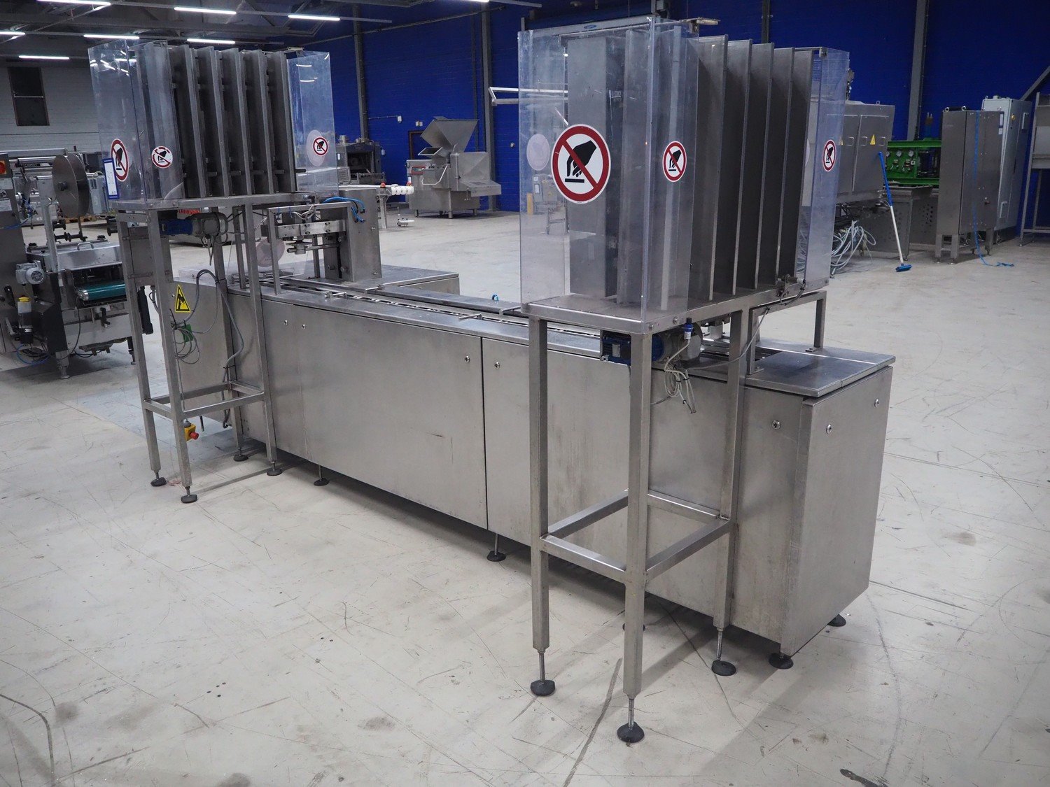 Schutten Machines BV water cup filling and closing machine, model: TML-250-1 number: 01005, year of construcion: 2002, diameter cutps: 75 mm, total dimensions: 4160 mm x 1690 mm x 2210 mm.