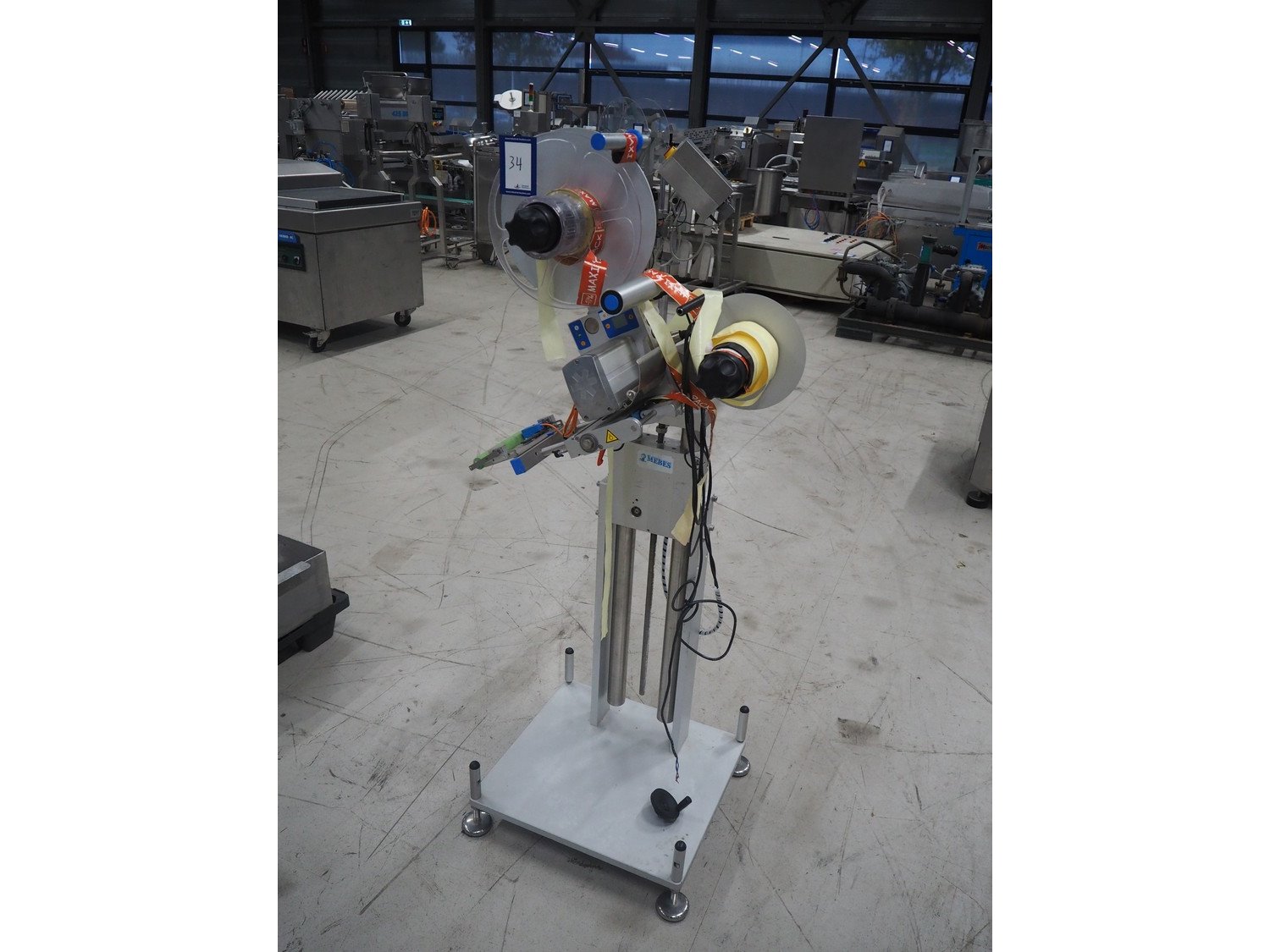 Herma labelling machine, model: H400 16R, serial number: 21232248, year of construction: 2016, 100-240 V, 50-60 Hz, 400 W, dimensions: 550 mm x 500 mm x 1570 mm.