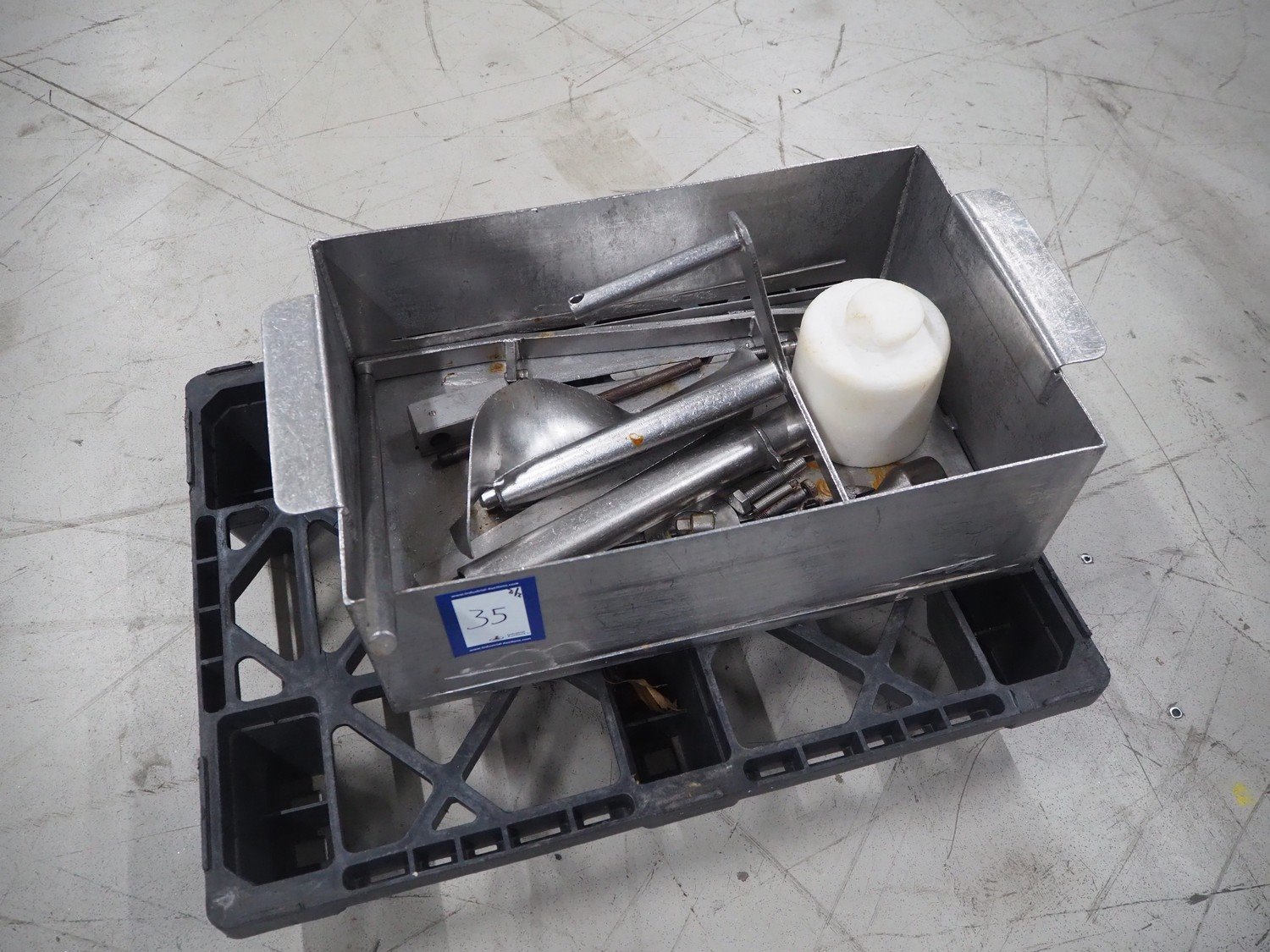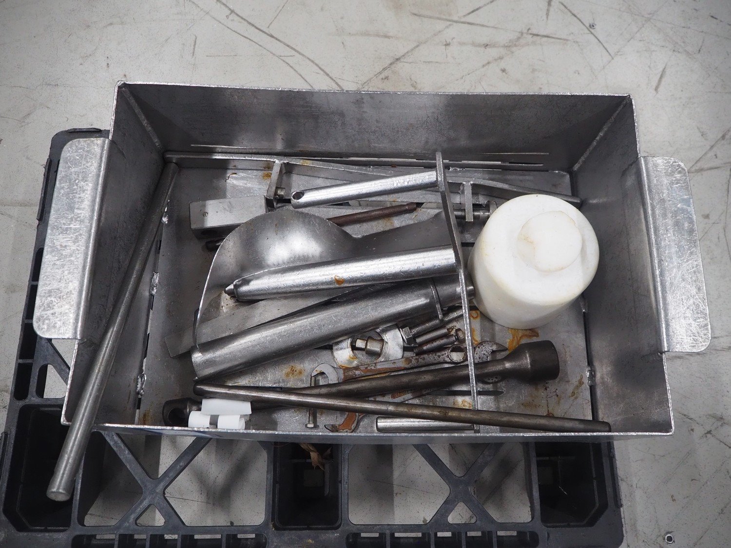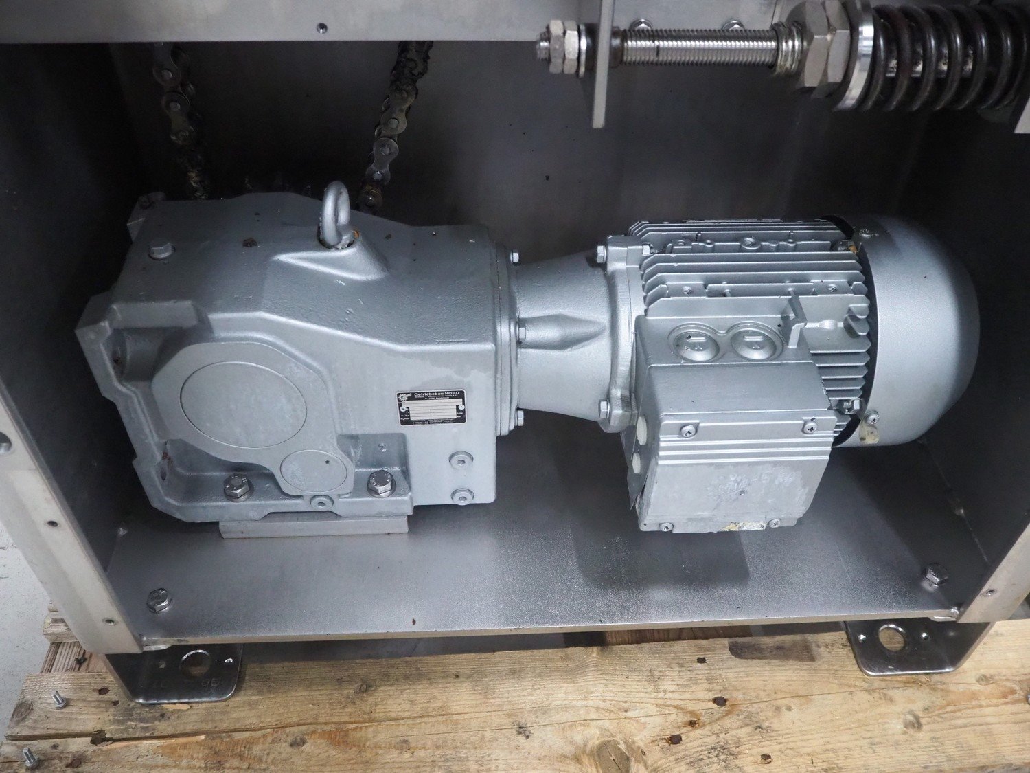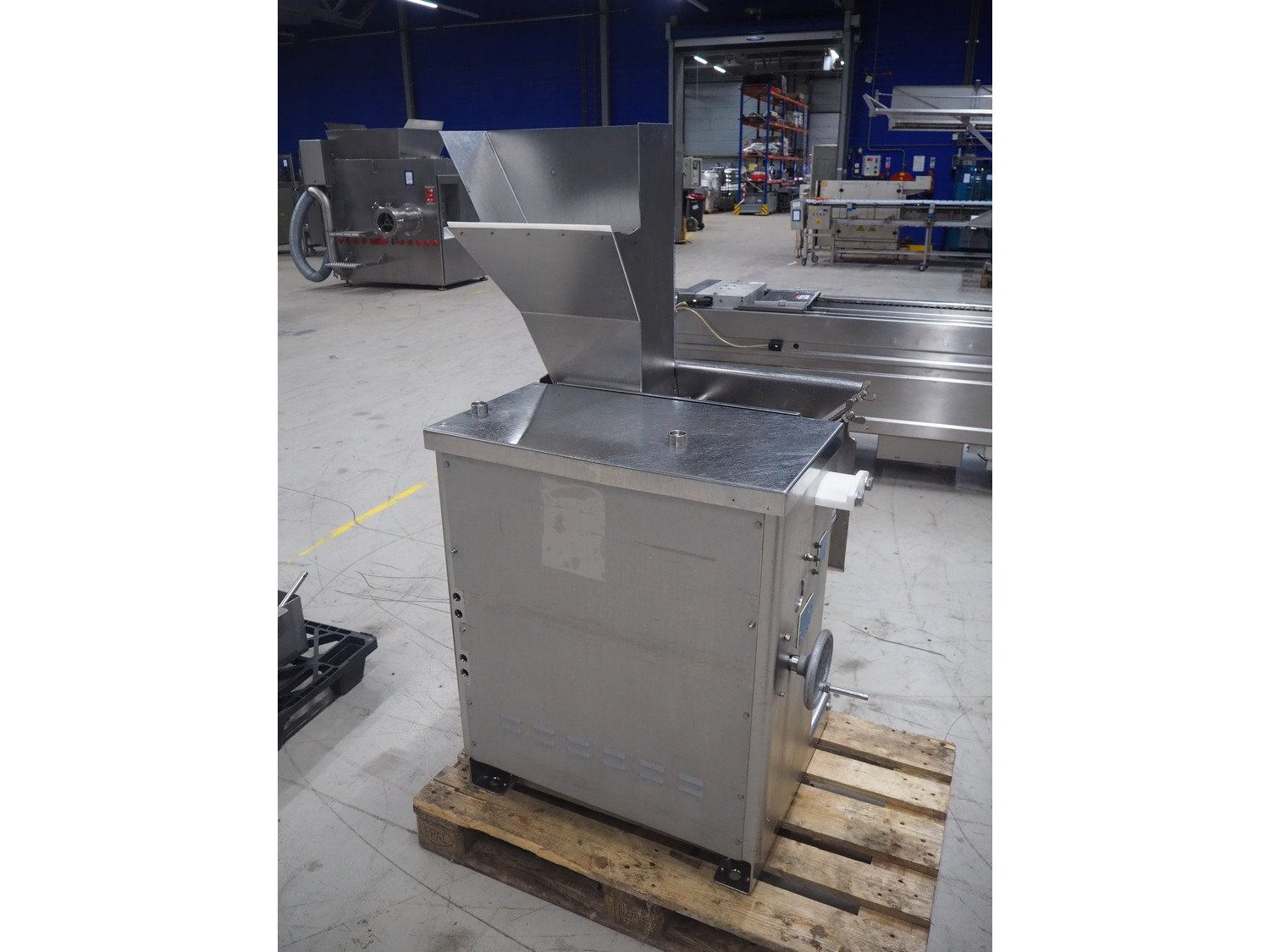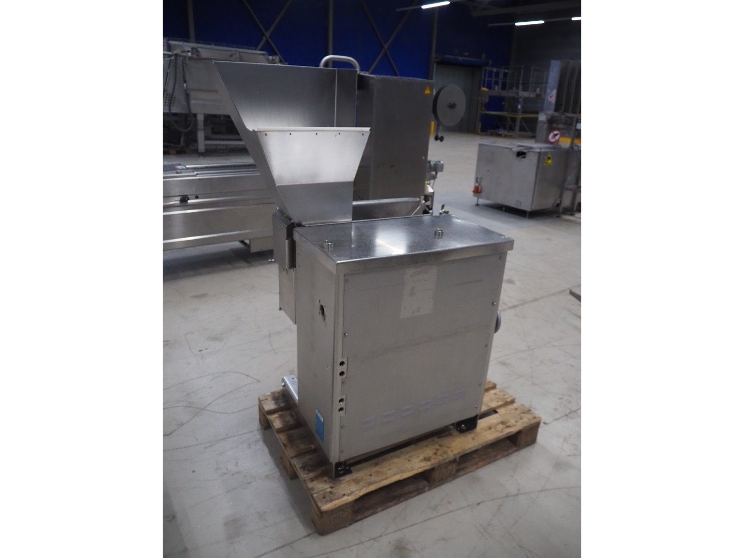 Baader separator, type: 601, number: 120573, year of construction: 2000, 400 V, 3 Ph, 50 Hz, 7.2 A, diameter perforations: 3 mm, diameter drum: 225 mm, total dimensions: 1100 mm x 800 mm x 1550 mm. With box with parts. Incomplete, missing belts.