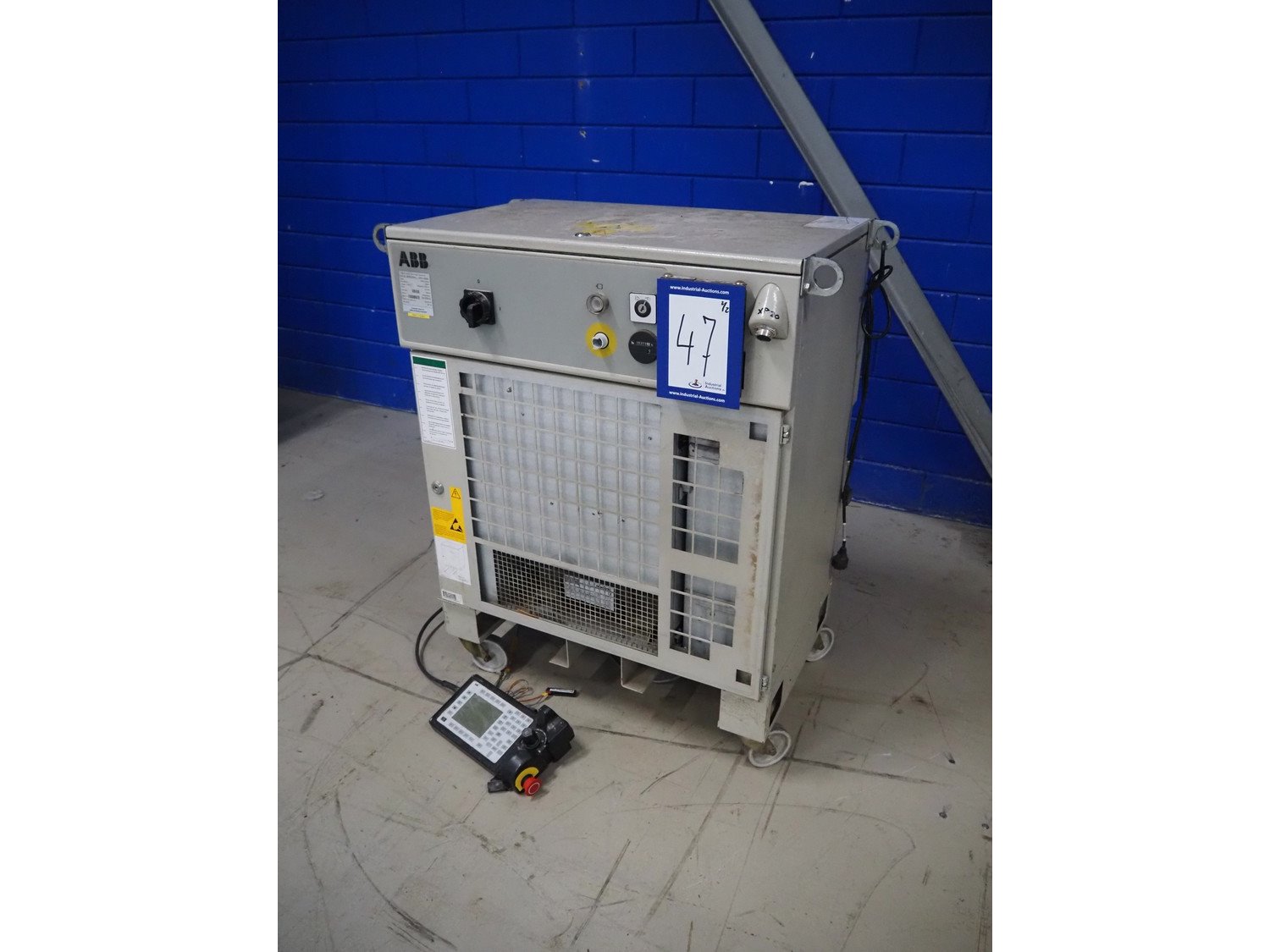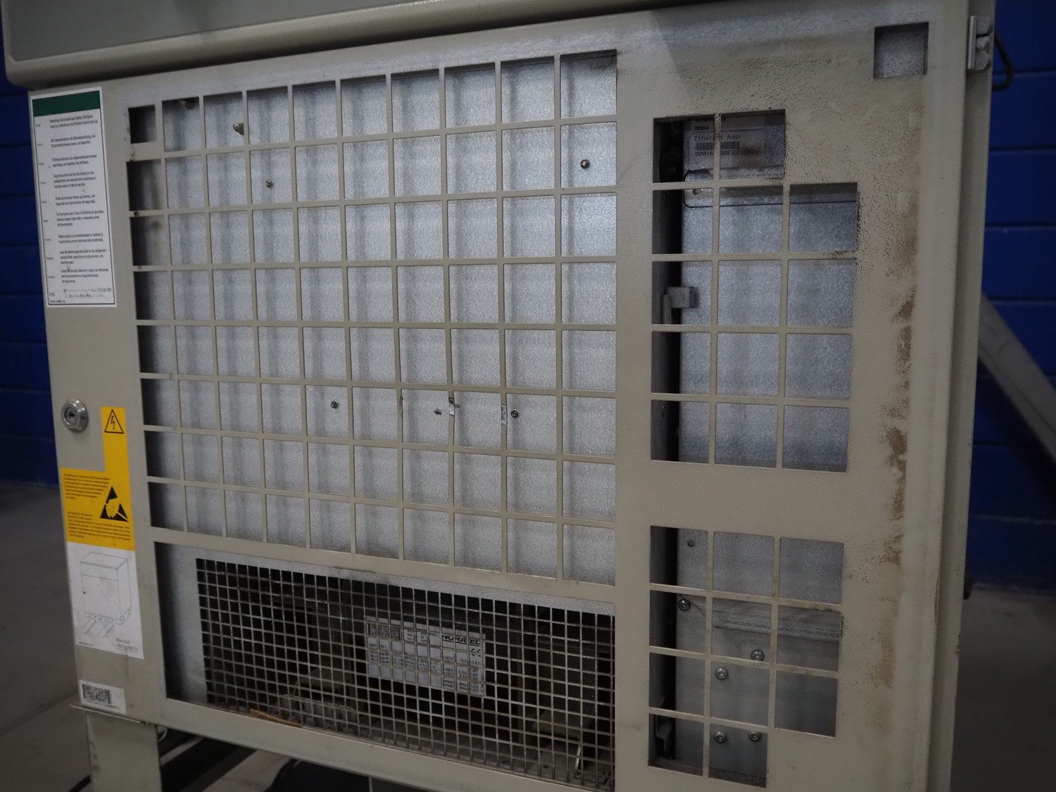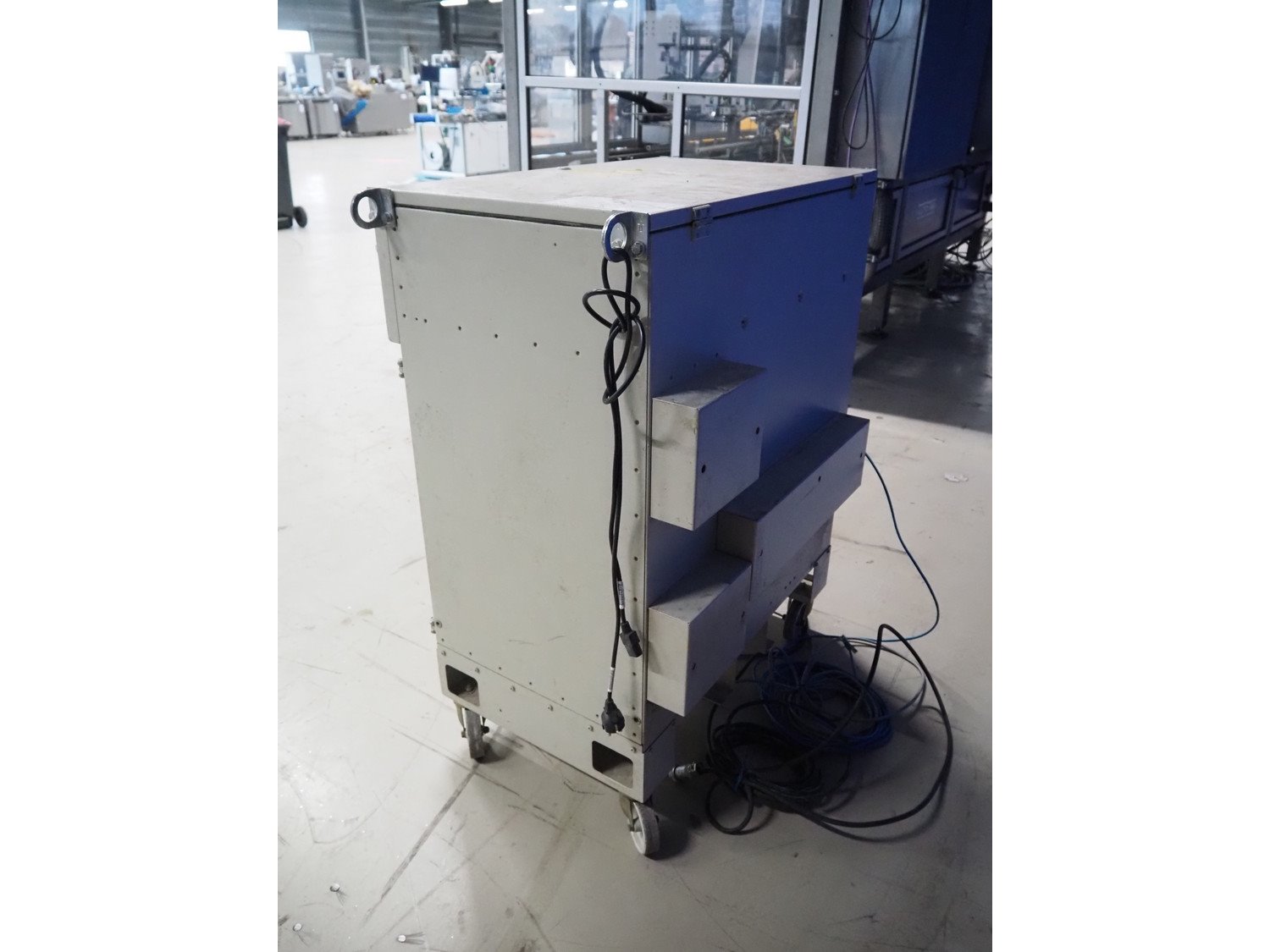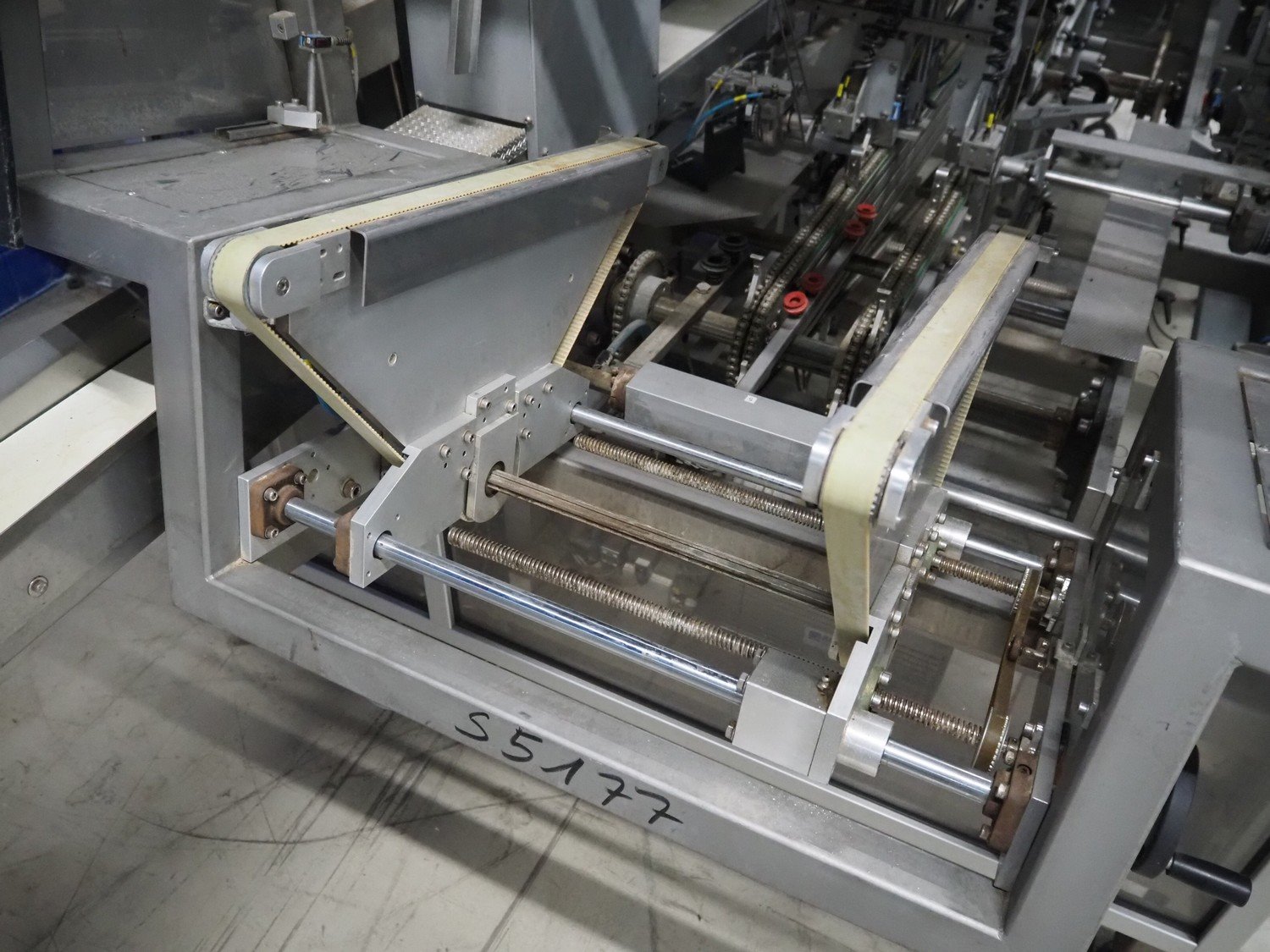 Altotek case erecting and filling machine with FlexPicker, machine number: 754867, year of construction: 31/01-2003, 400 V, 3 Ph, 50 Hz, 35 A, Nordson glue unit, minimum box sizes: 175 mm x 115 mm x 100 mm, maximum box sizes: 350 mm x 250 mm x 250 mm, s/s chain conveyor with dividers, belt width: 200 mm, distance between dividers: 350 mm, divider height: 50 mm, plastic belts, belt width: 130 mm, total dimensions: 4500 mm x 2000 mm x 2600 mm. With ABB control panel and cabinet for robot, type: IRB340 M2000, serial number: 34-20212, year of construction: 19-08-2002, dimensions: 900 mm x 550 mm x 1100 mm.