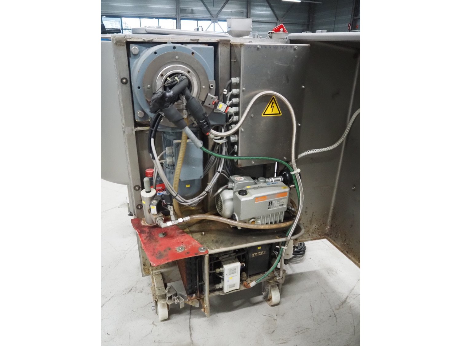 Rühle mobile cooled vacuum tumbler, type: MKR 220, volume: 220 liter, Busch vacuum pump, type: KC 0010 E3Z0, year of construction: 2010, capacity: 10 m³ per hour, serial number: CZM121311738, dimensions: 1170 mm x 920 mm x 1720 mm.