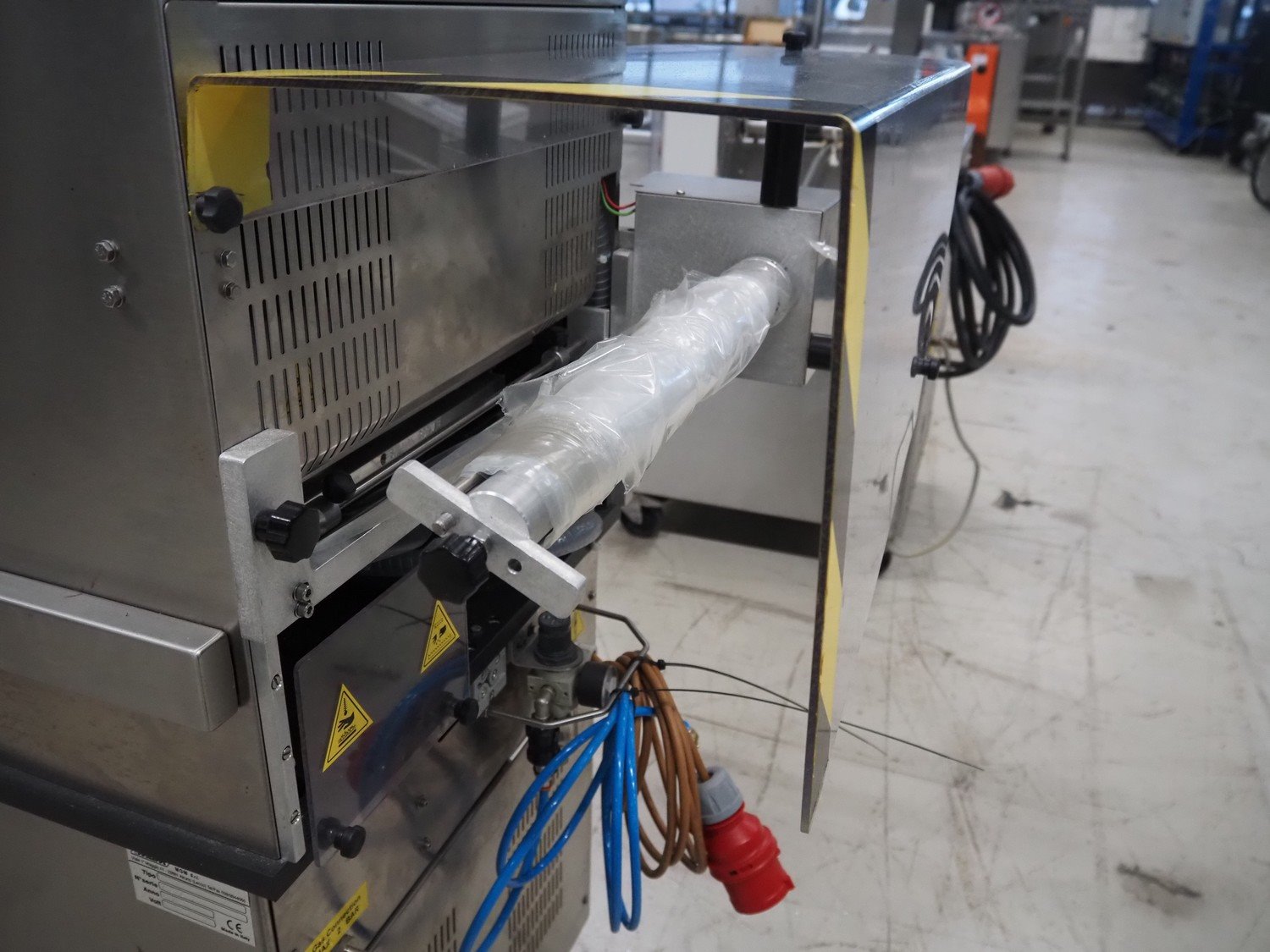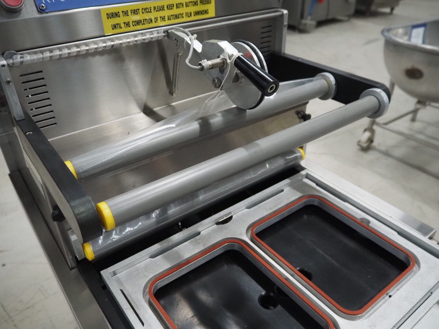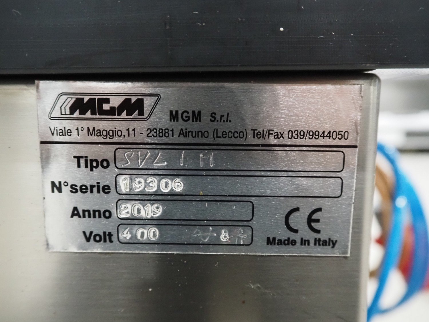 MGM S.r.l. mobile traysealer, type: SVL I M, serial number: 19306, year of construction: 2019, 400 V, 8 A, dimensions dye: (2x) 220 mm x 170 mm, total dimensions: 1100 mm x 570 mm x 1350 mm.