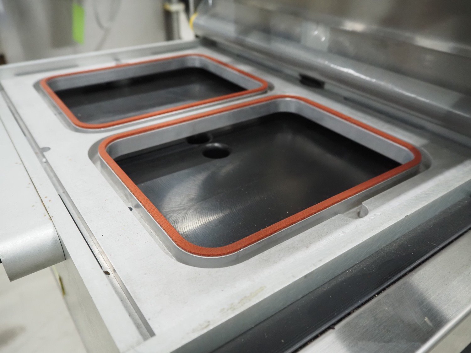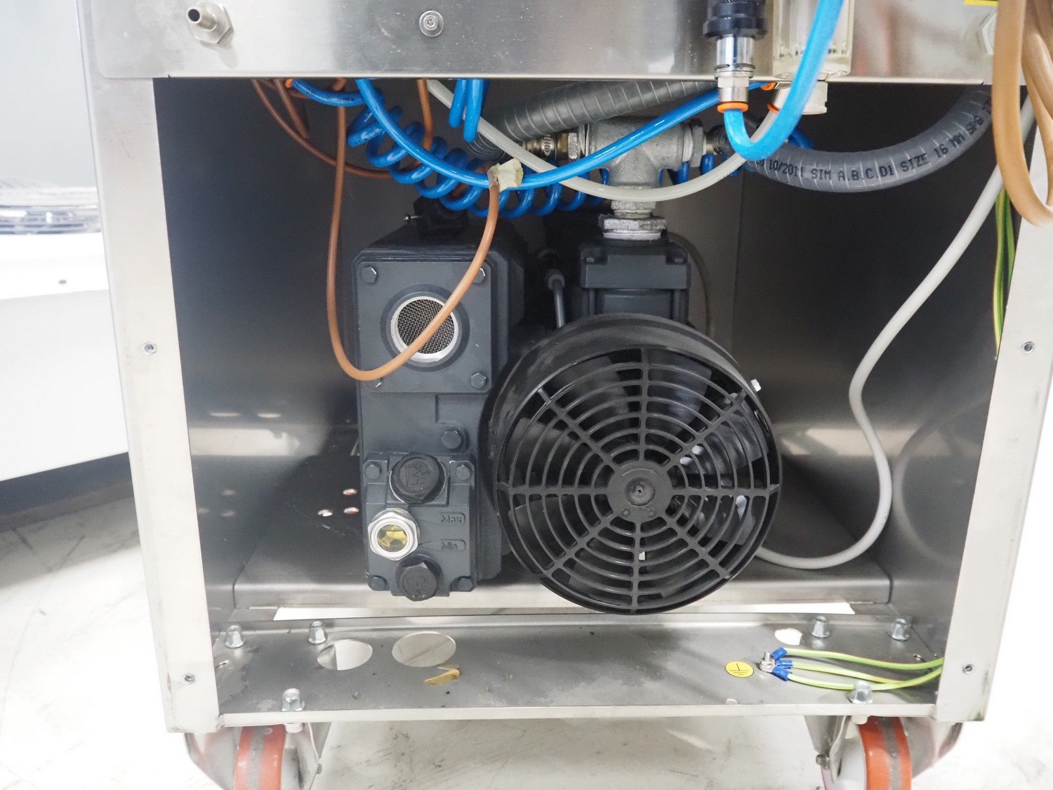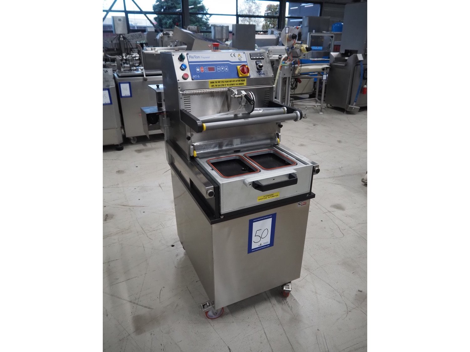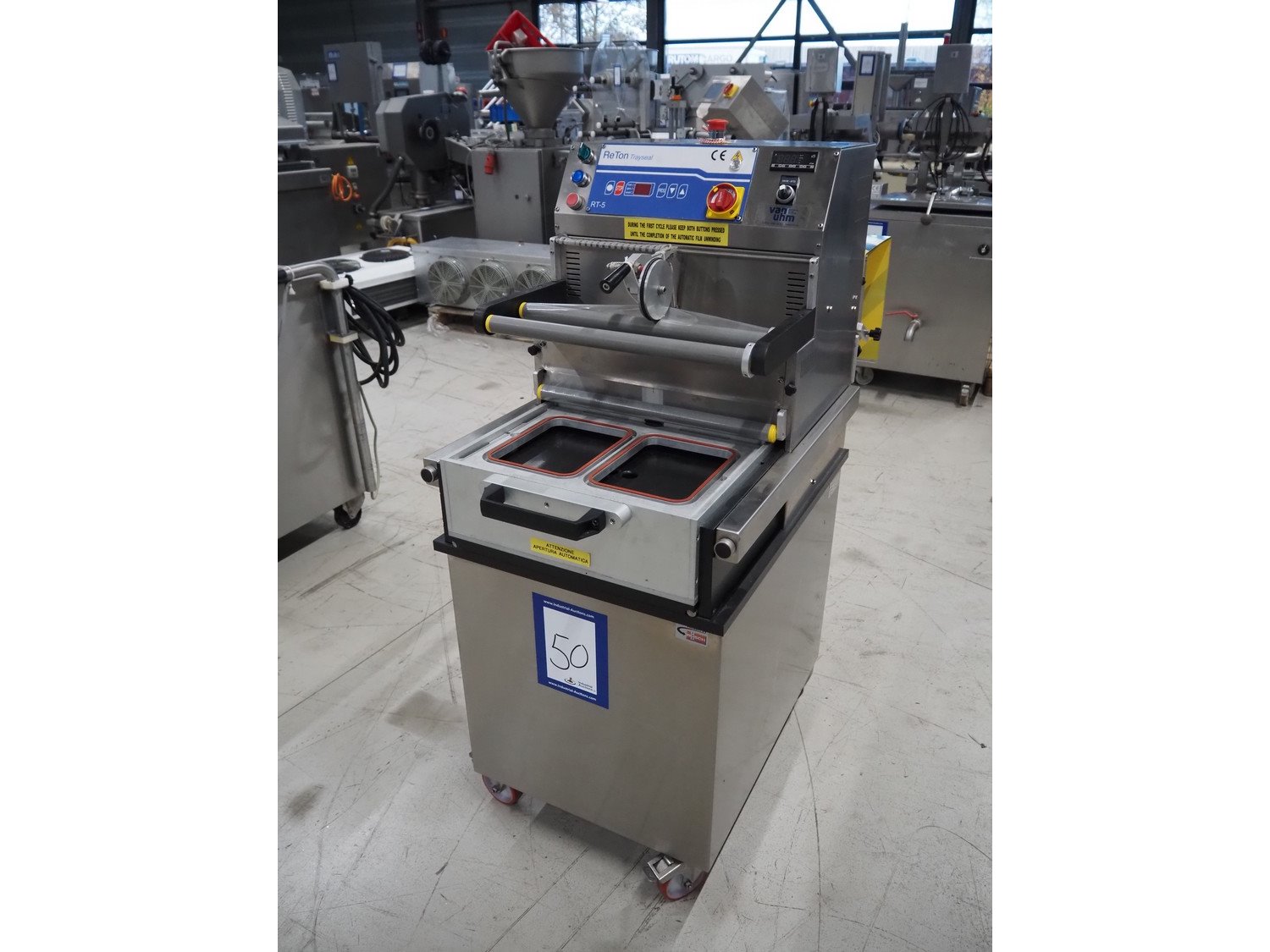 MGM S.r.l. mobile traysealer, type: SVL I M, serial number: 19306, year of construction: 2019, 400 V, 8 A, dimensions dye: (2x) 220 mm x 170 mm, total dimensions: 1100 mm x 570 mm x 1350 mm.