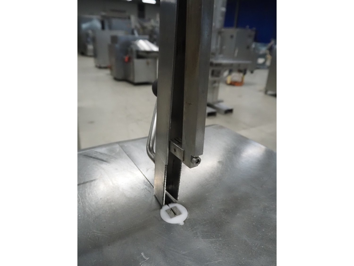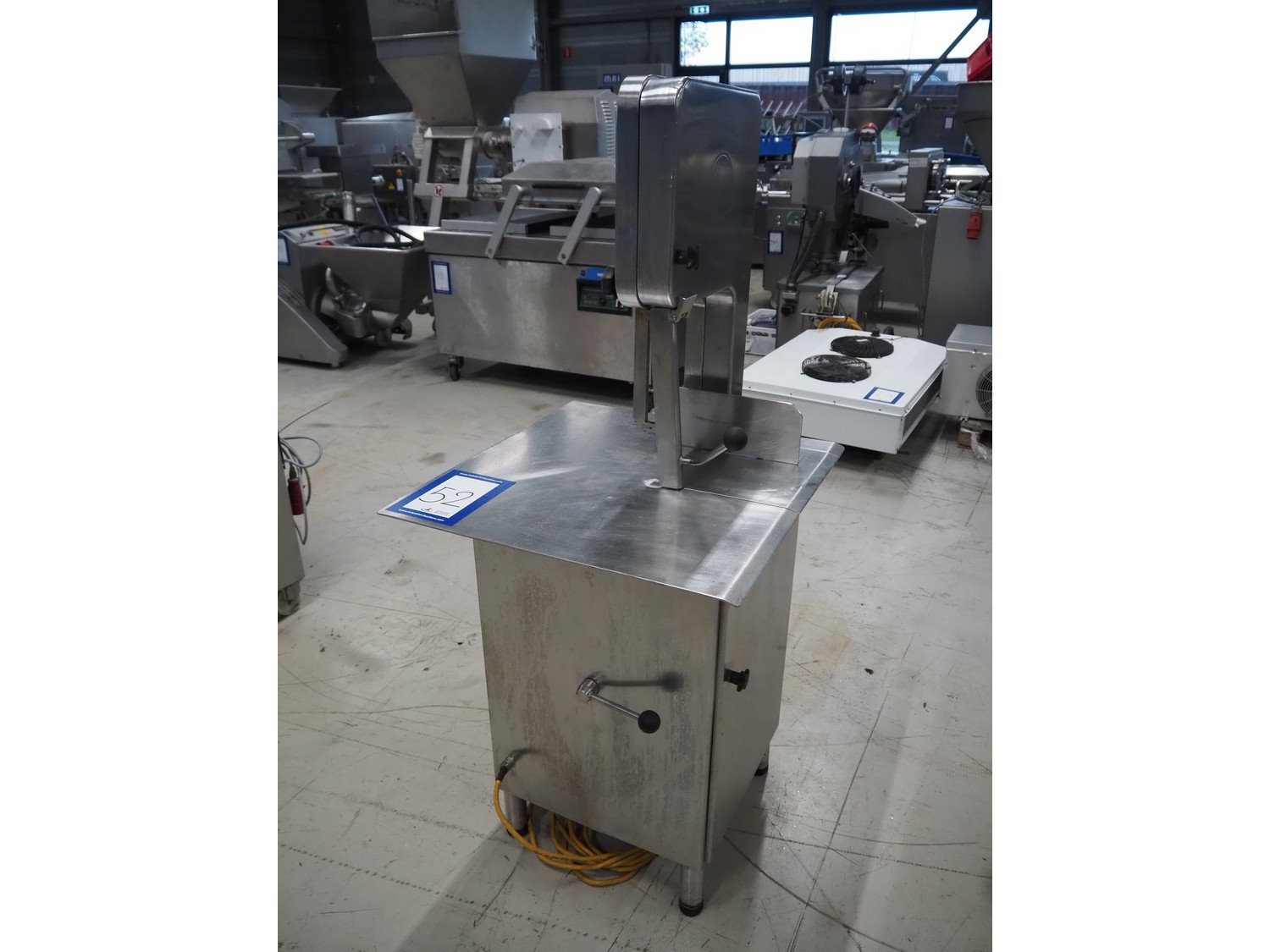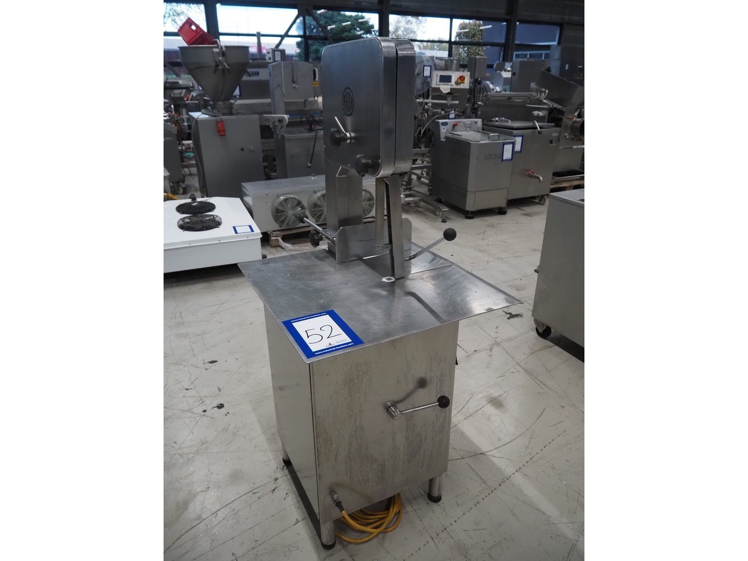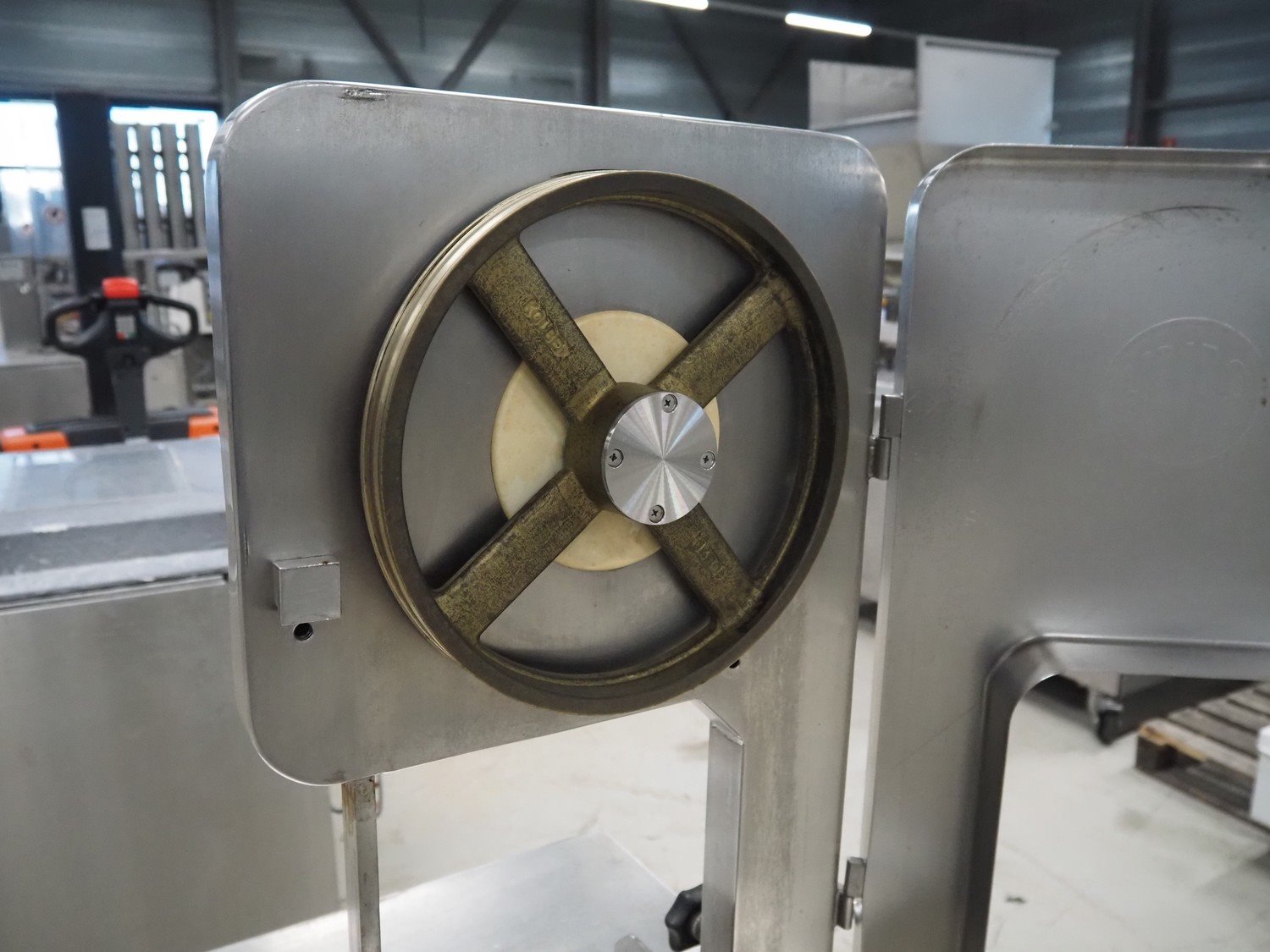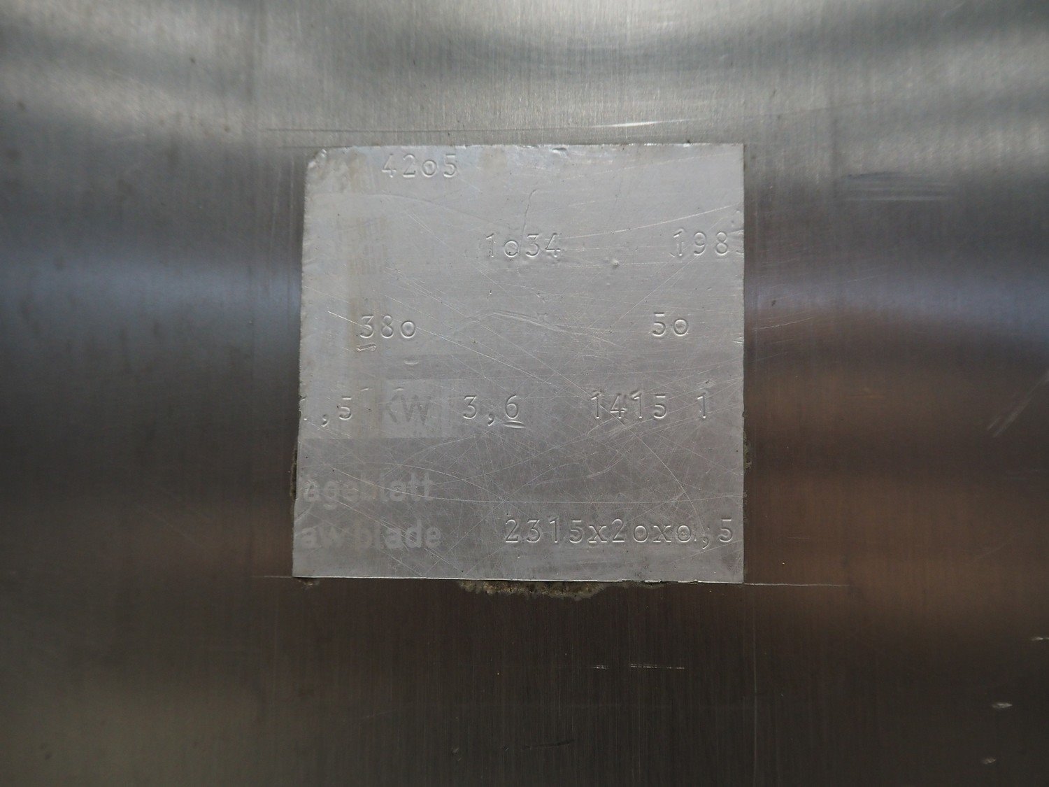 Reich bandsaw, model: 4205, number: 1034, 380 V, 50 Hz, 3.6 kW, dimensions table: 680 mm x 660 mm, total dimensions: 900 mm x 660 mm x 1580 mm.