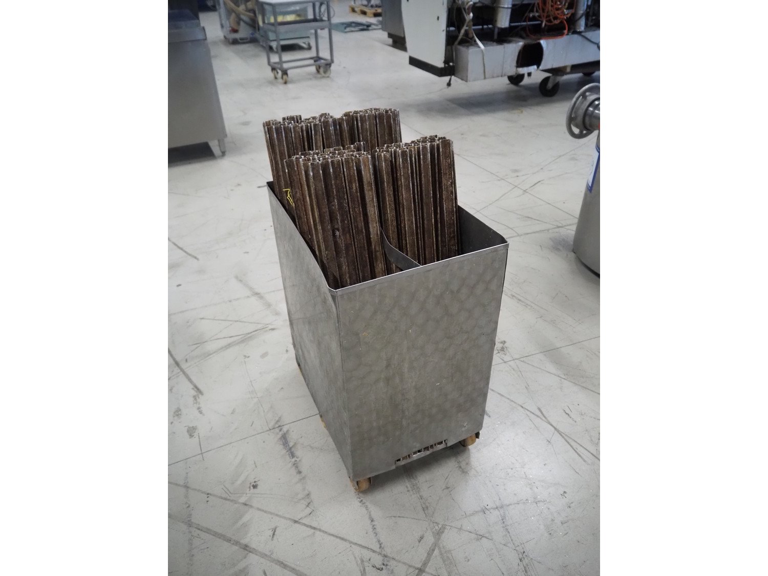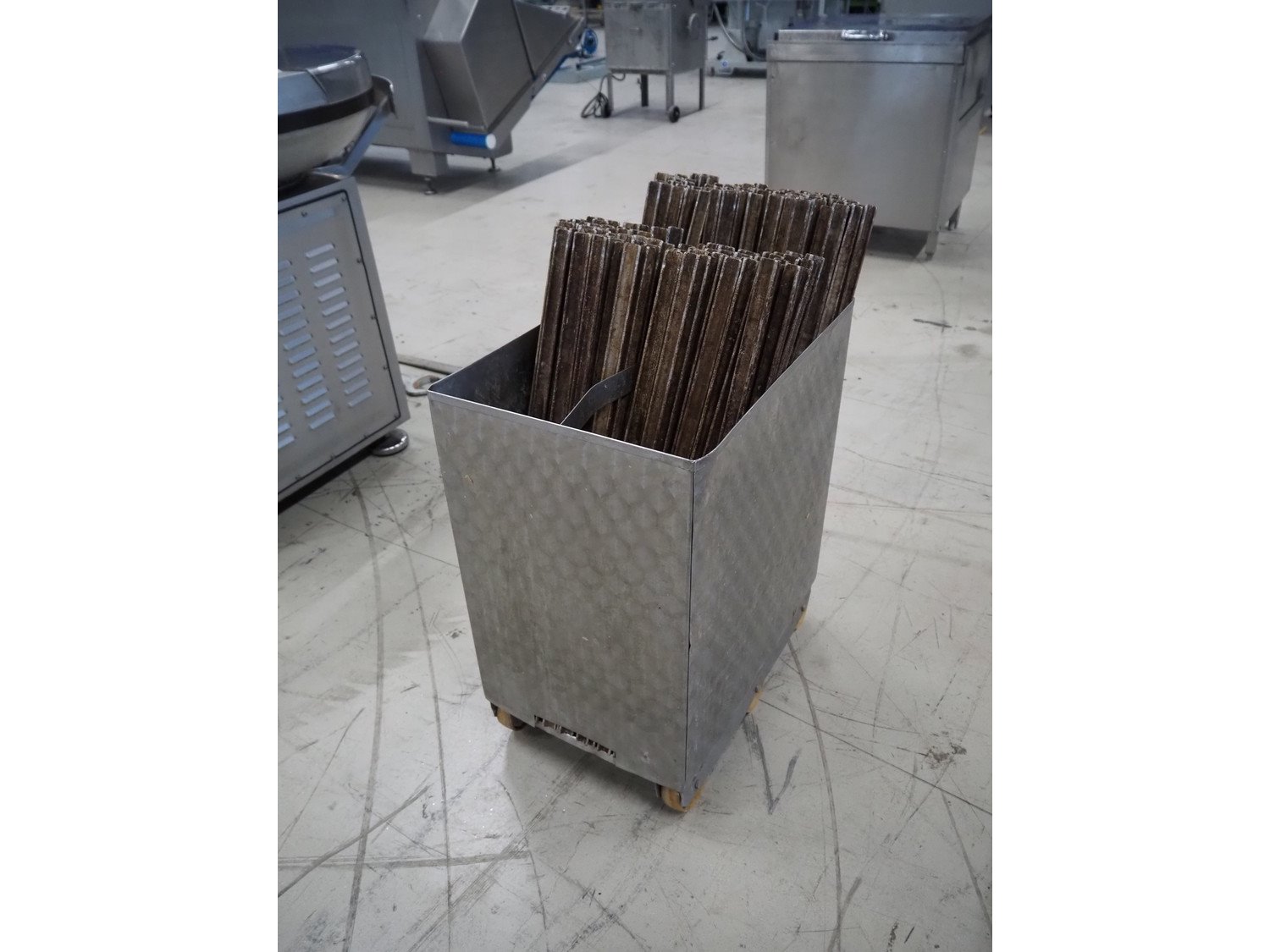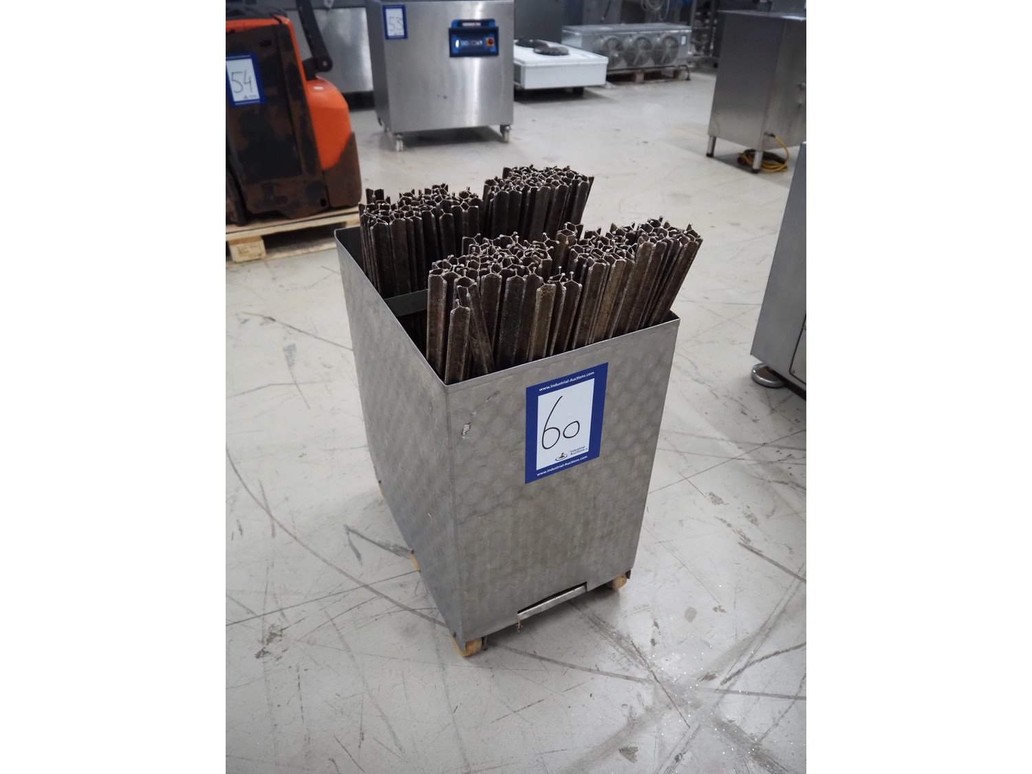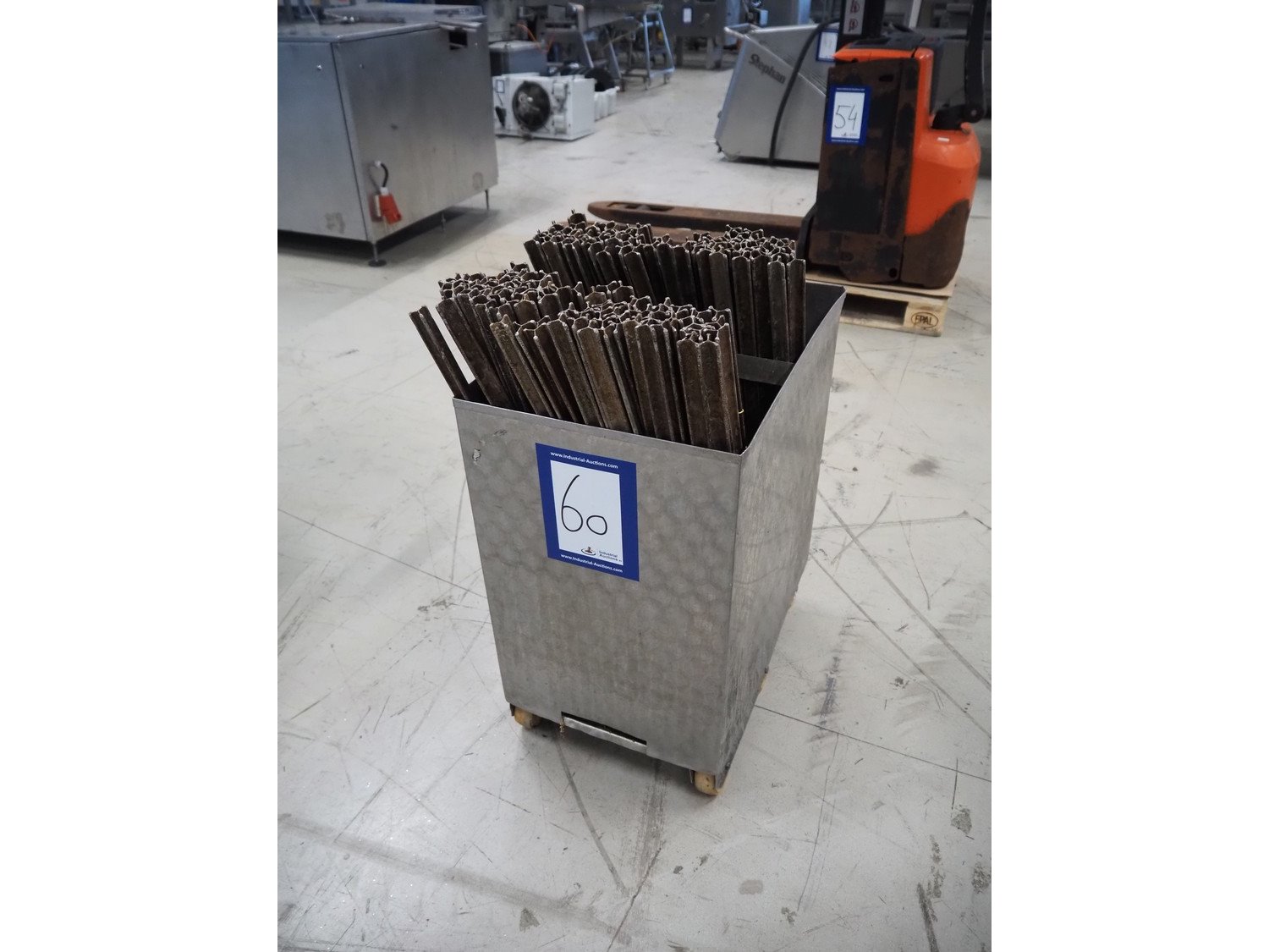 S/s trolley with approximately 100 aluminium y-shaped smoke sticks, length each stick: 800 mm, dimensions trolley: 600 mm x 400 mm x 720 mm