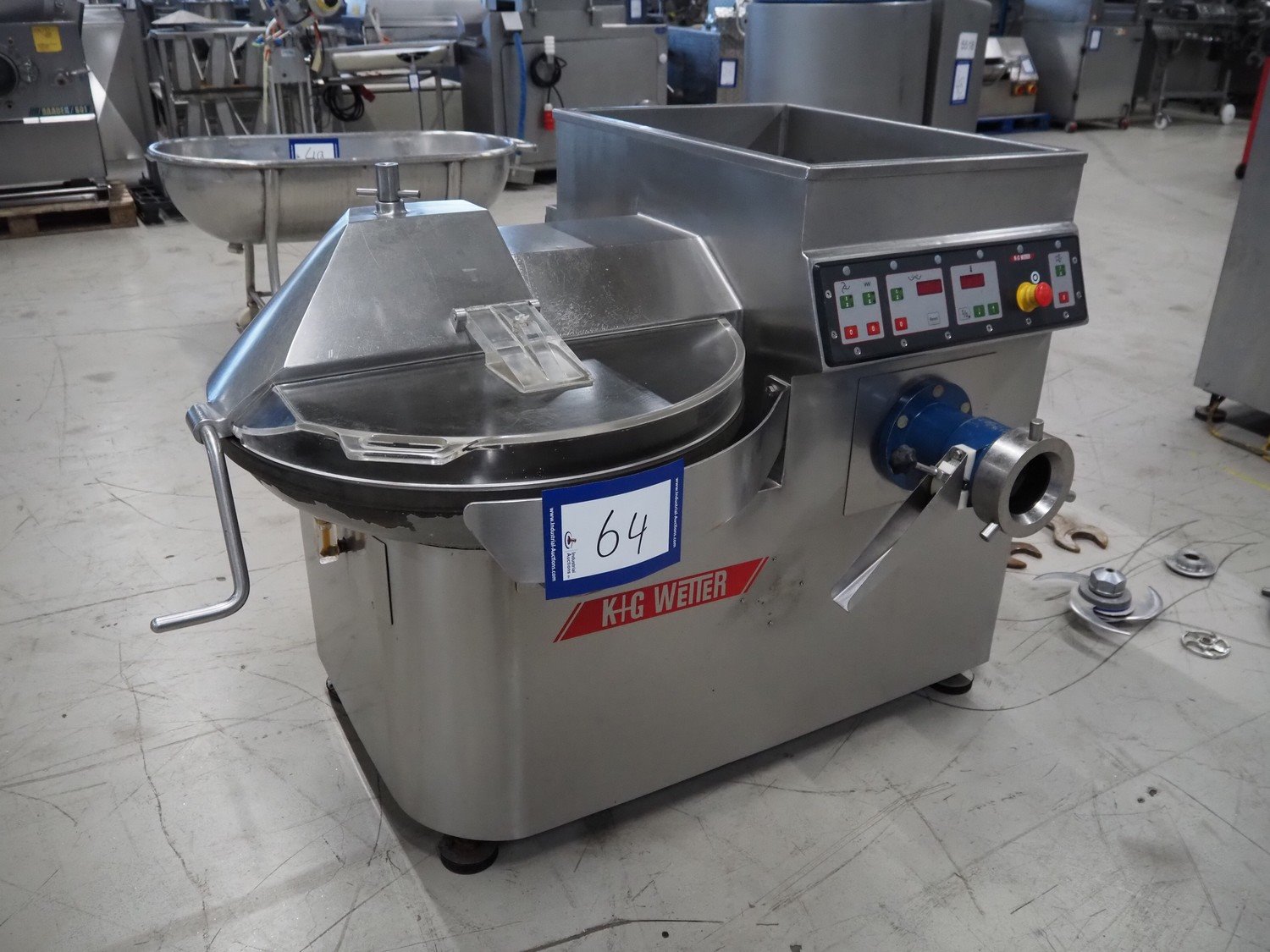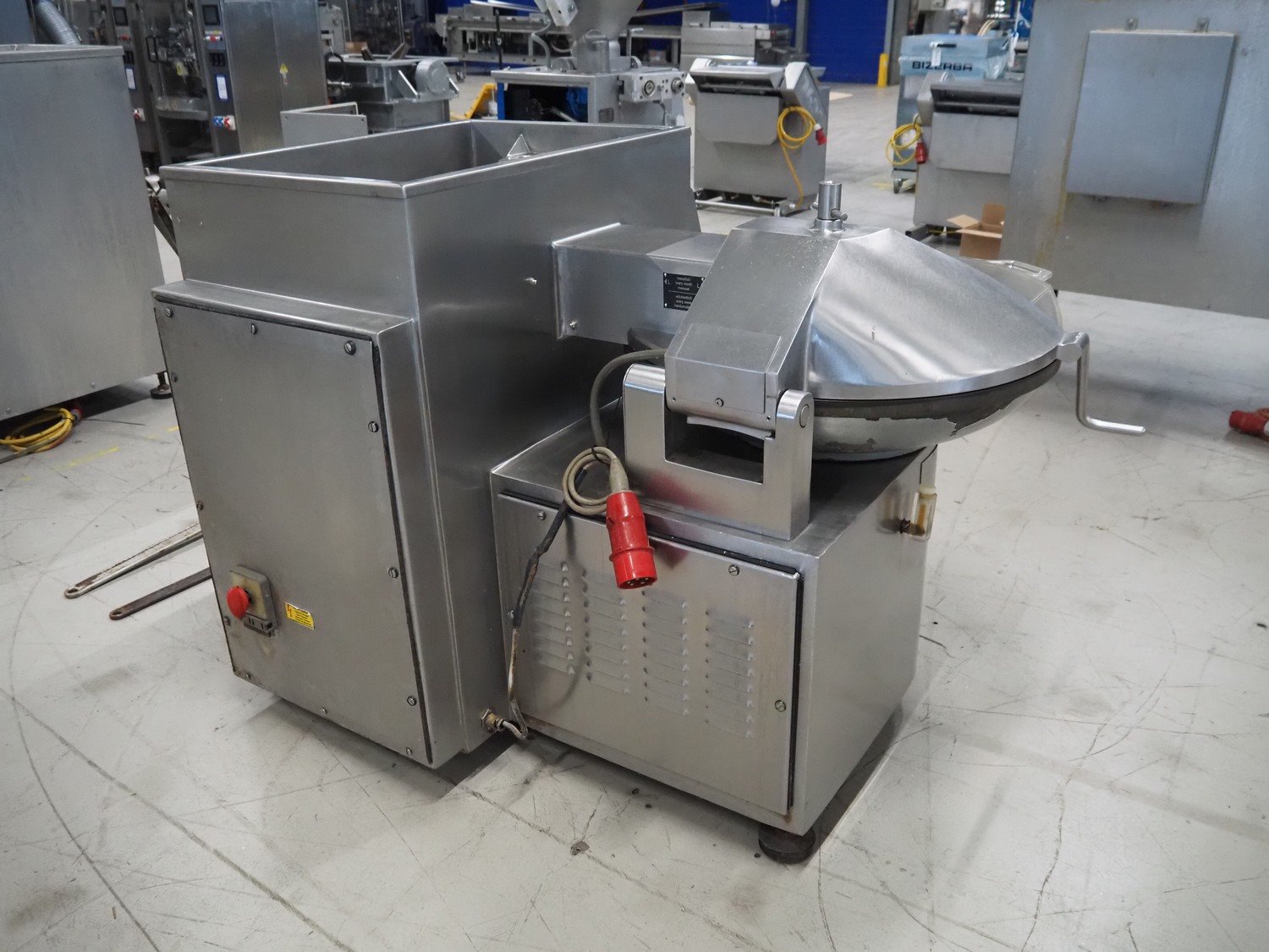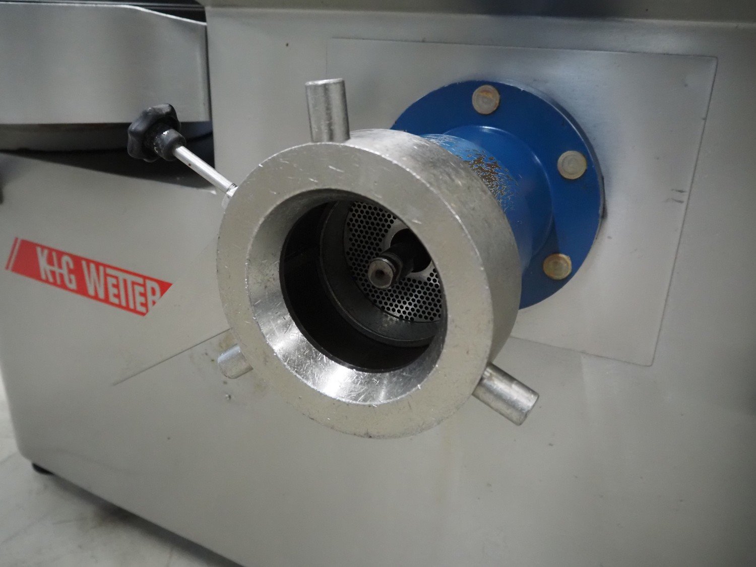 Kramer + Grebe grinder and cutter, type: SM/ZW, machine number: 275/121, year of construction: 1989, diameter plate: 102 mm, dimensions bowl: Ø 740 mm x 140 mm, total dimensions: 1580 mm x 1180 mm x 1110 mm.