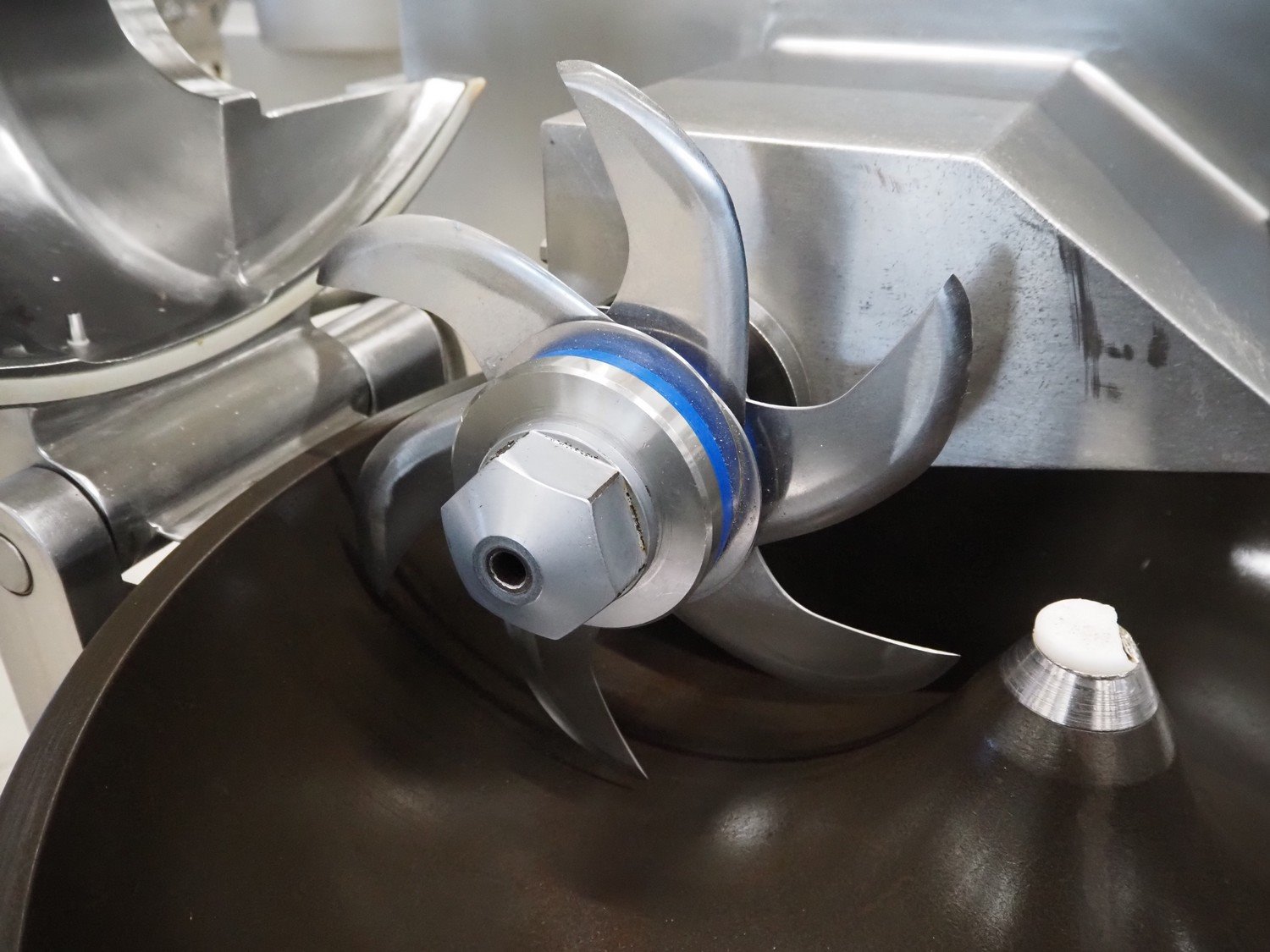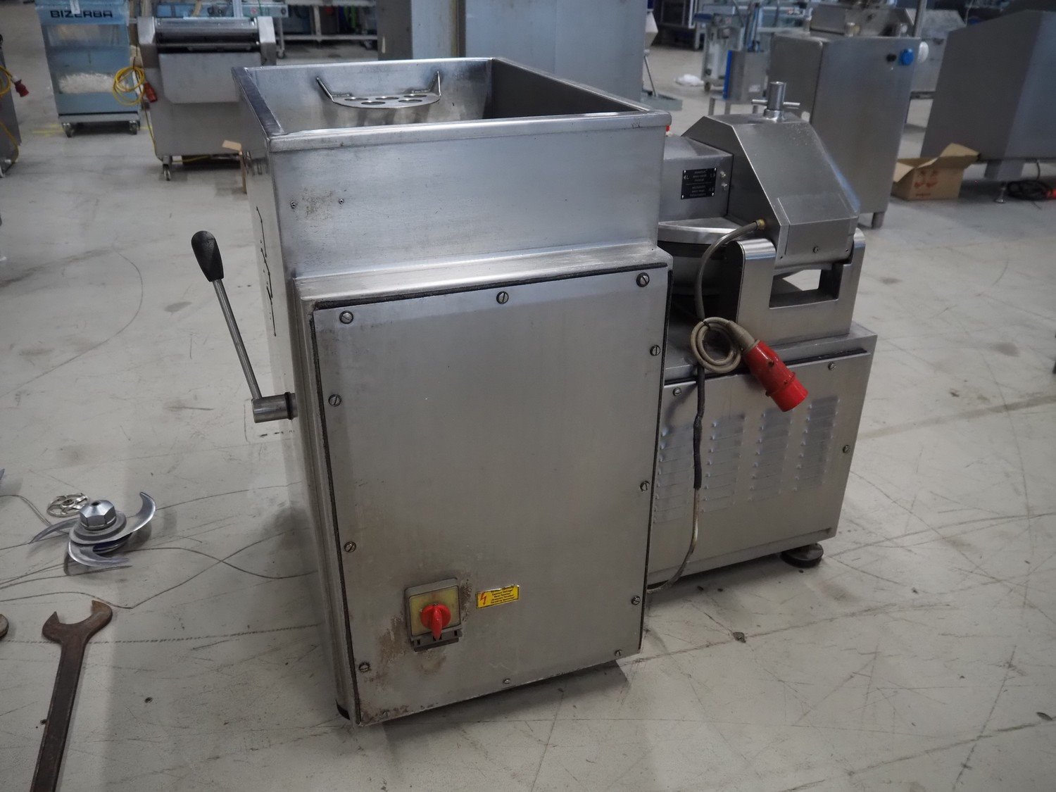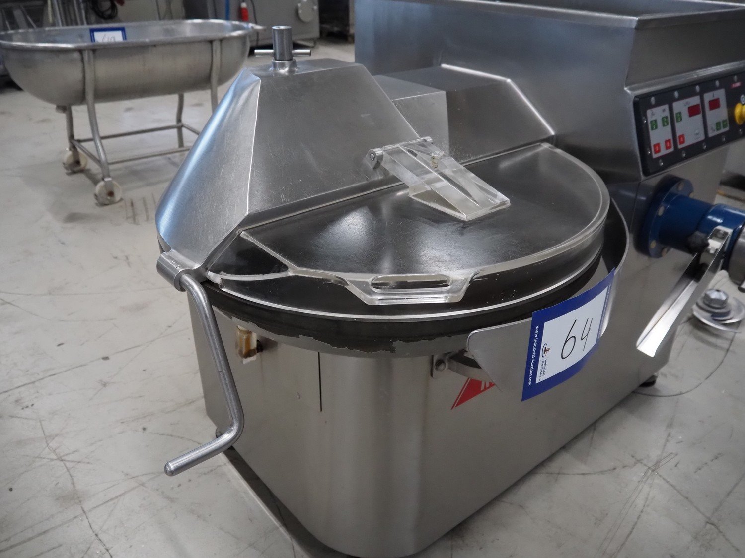 Kramer + Grebe grinder and cutter, type: SM/ZW, machine number: 275/121, year of construction: 1989, diameter plate: 102 mm, dimensions bowl: Ø 740 mm x 140 mm, total dimensions: 1580 mm x 1180 mm x 1110 mm.