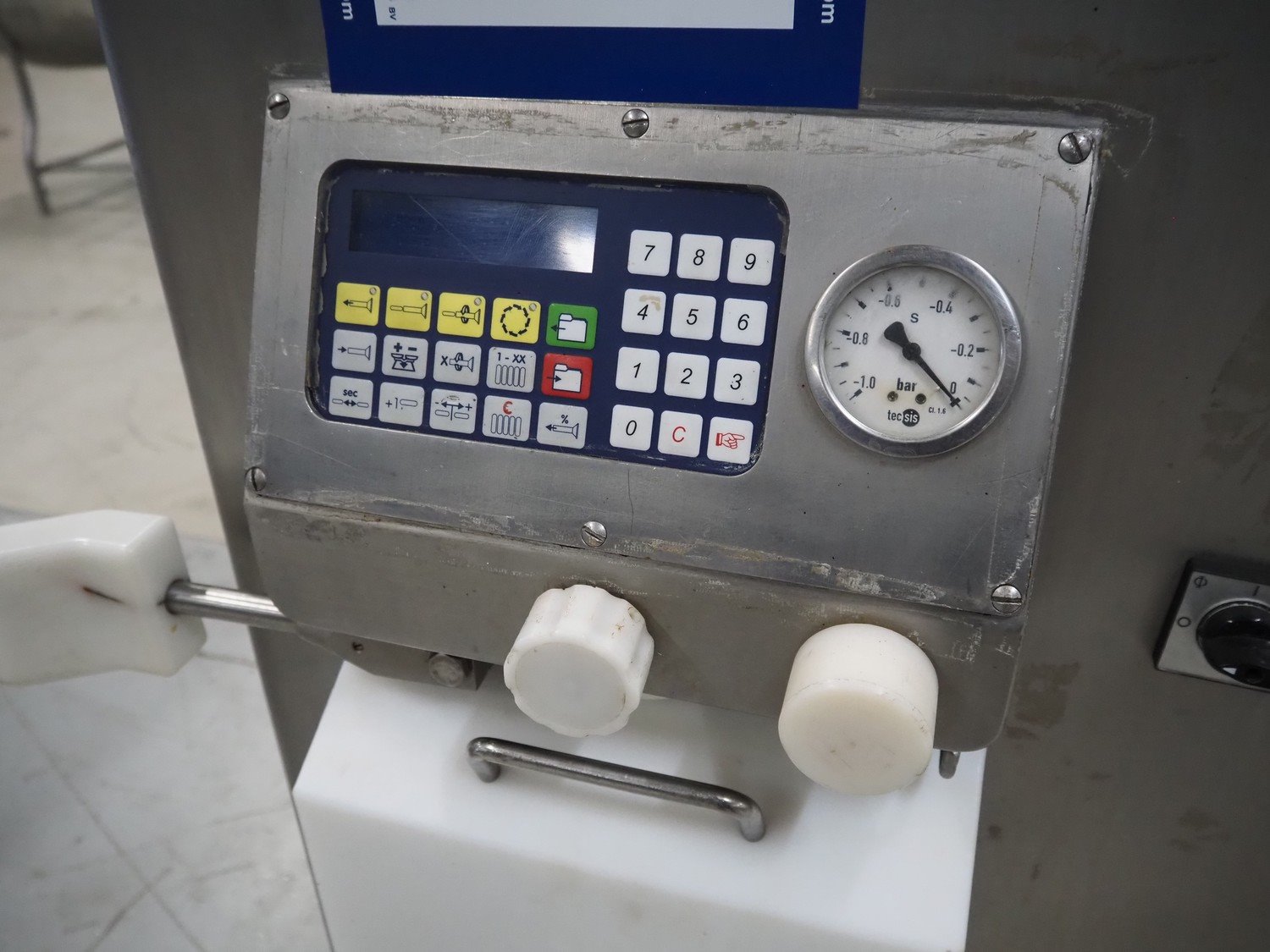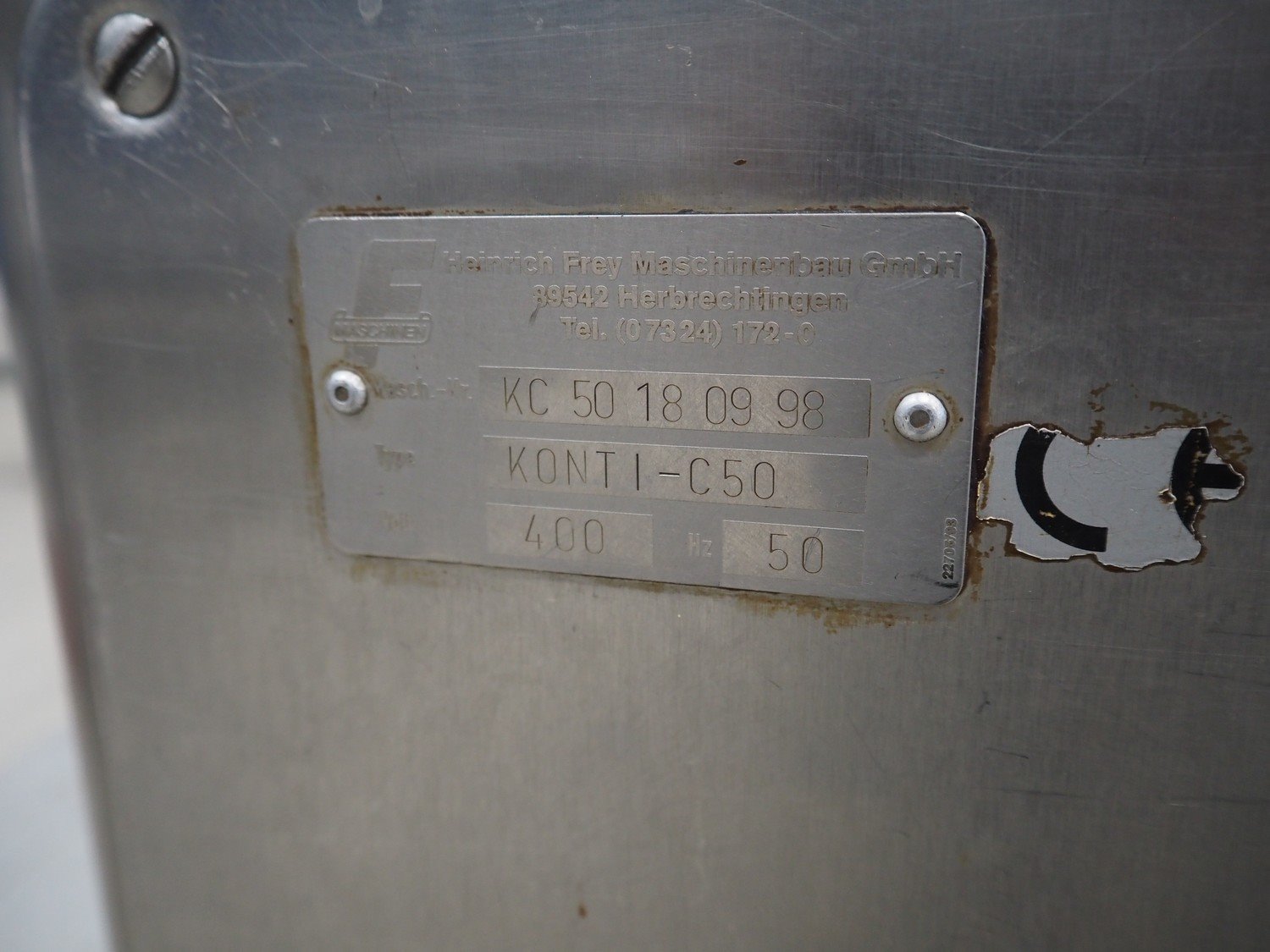 Frey vacuum filling machine, type: KONTI-C50, machine number: KC 50 18 09 98, 400 V, 50 Hz, dimensions: 900 mm x 650 mm x 1610 mm.