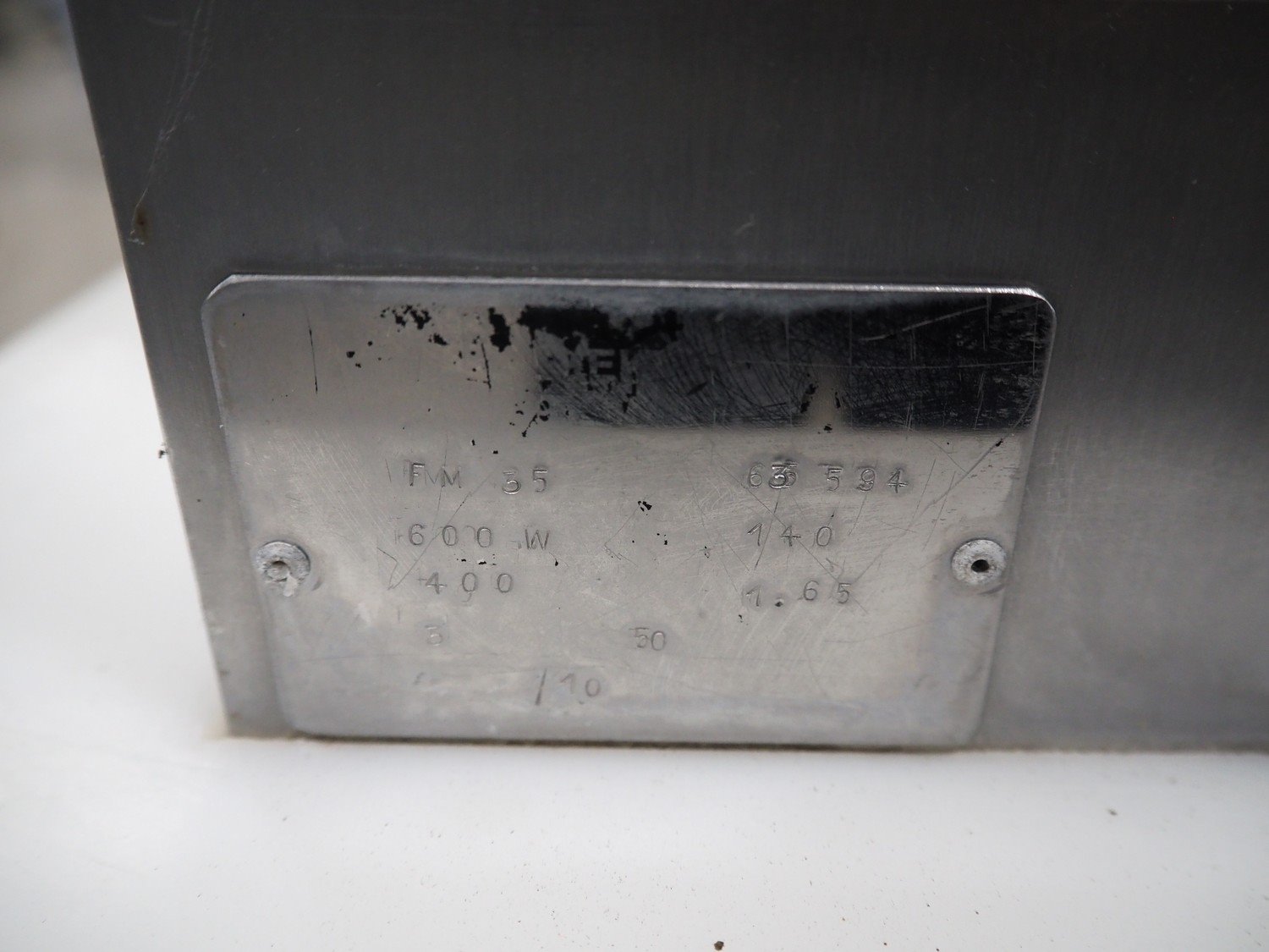 Edertal tenderizer, type: FM 35, number: 63 594, 400 V, 3 Ph, 50 Hz, 1.65 A, 600 W, clearance: 200 mm x 30 mm, total dimensions: 660 mm x 400 mm x 1260 mm.