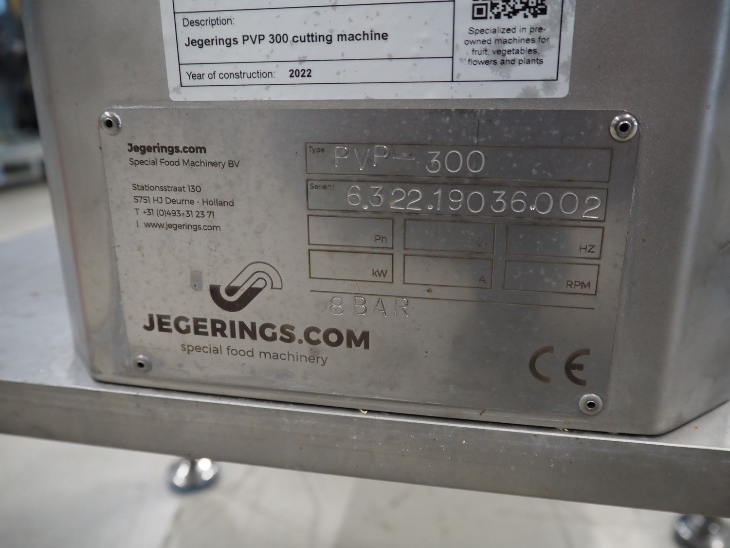 Jegerings dicer, type: PVP-300, serial number: 6.322.19036.002, 8 bar, clearance: 200 mm x 200 mm, dye's: (36x) 30 mm x 30 mm, total dimensions: 510 mm x 340 mm x 1120 mm.