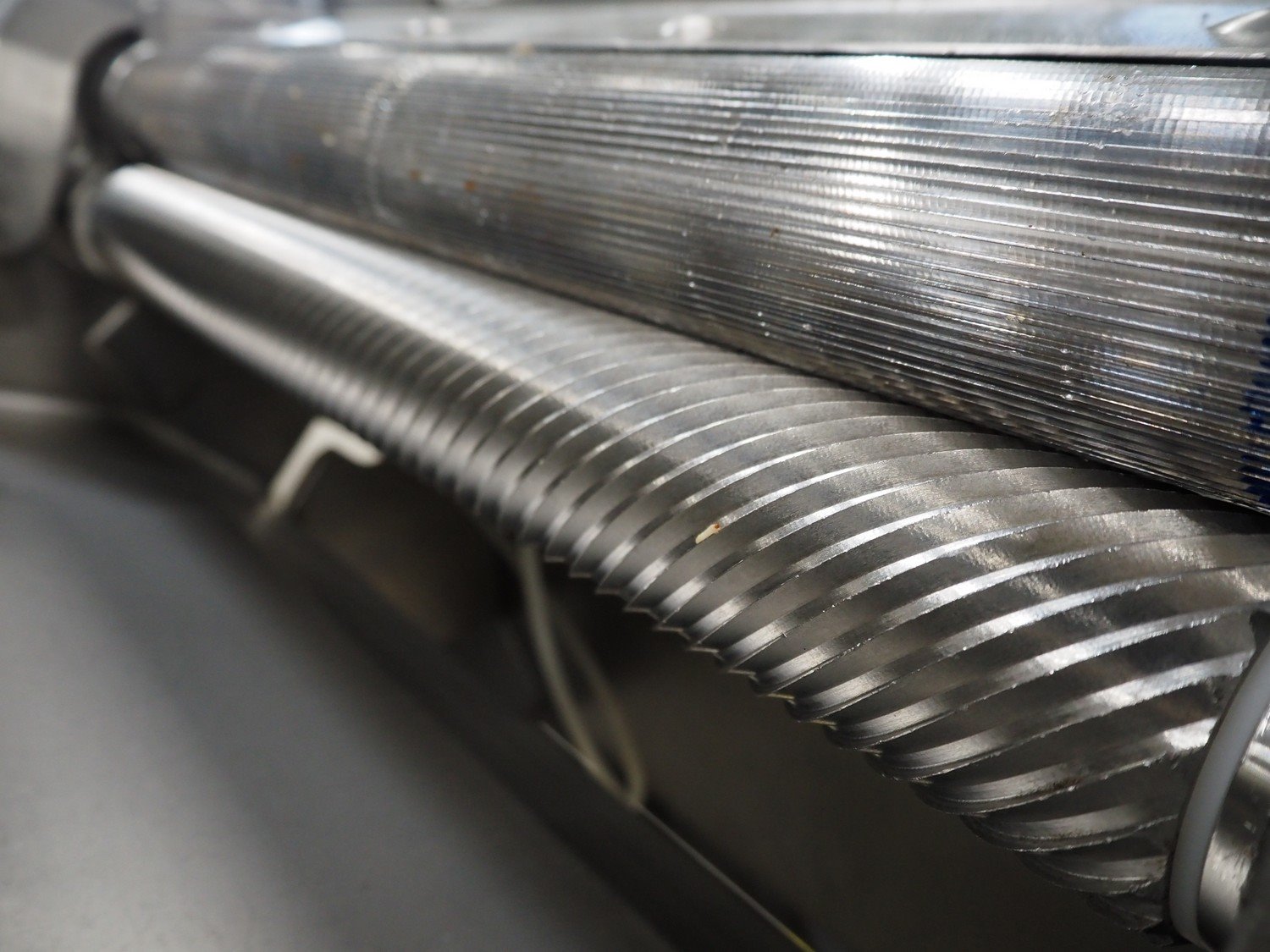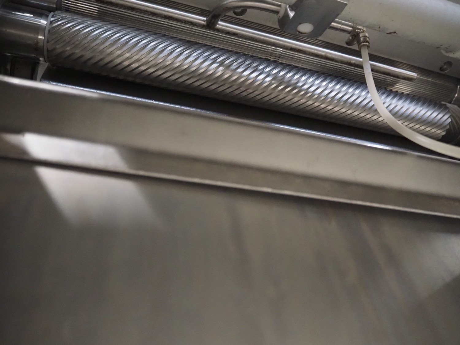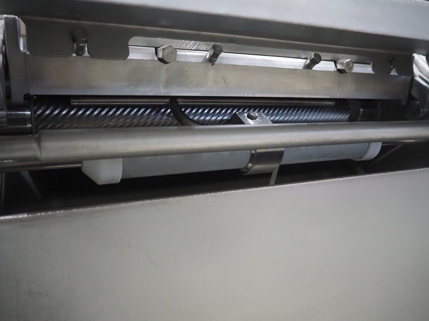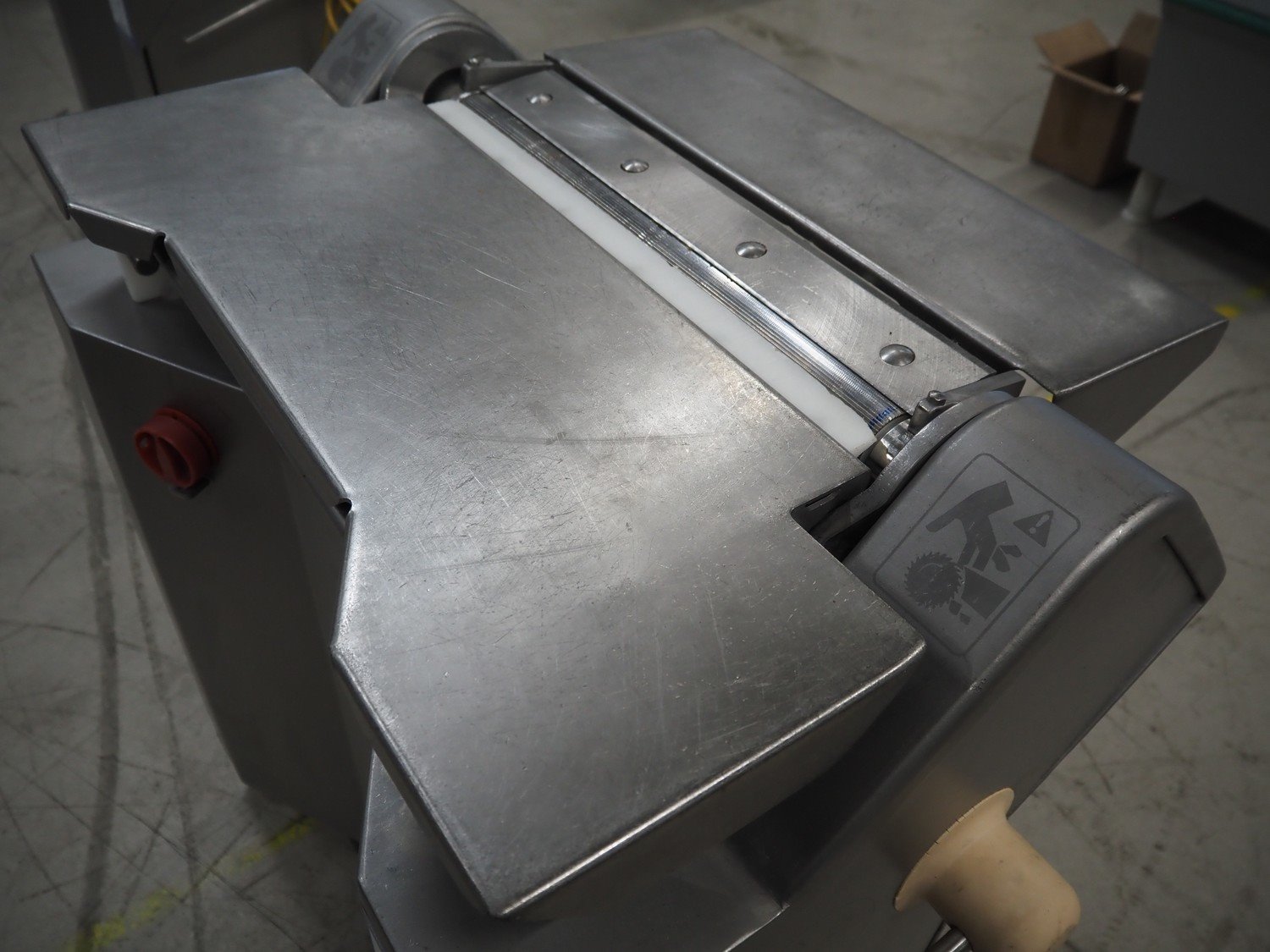 Townsend mobile skinning machine, model: 7620, serial number: 708, year of construction: 1995, 380 V, 3 Ph, 50 Hz, 2.0 A, 1 HP, foot control, working width: 510 mm, total dimensions: 900 mm x 670 mm x 900 mm.