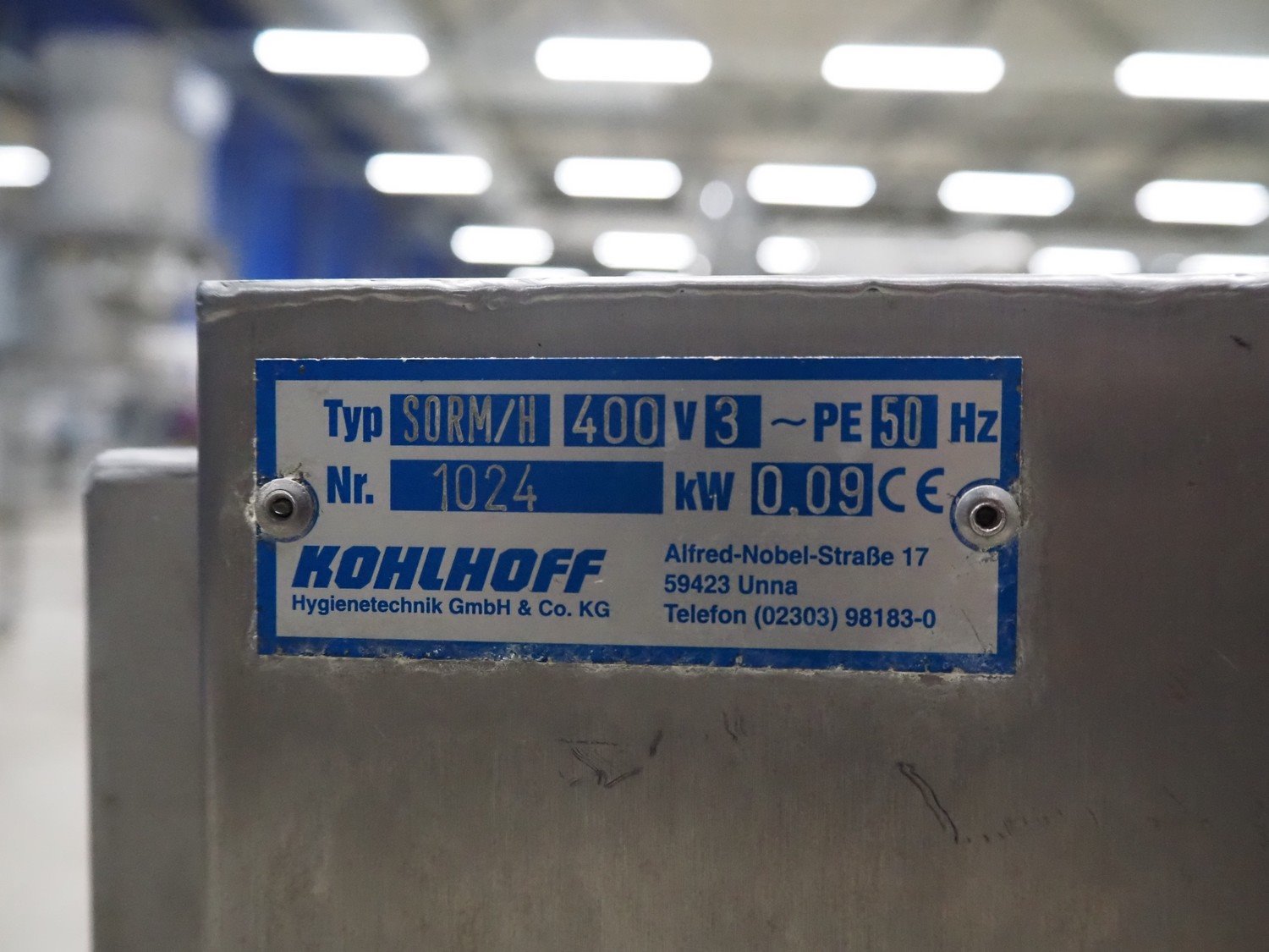 Kohlhoff sole cleaner, type: SORM/H, number: 1024, 400 V, 3 Ph, 50 Hz, 0.09 kW, brush length: 150 mm, total dimensions: 650 mm x 550 mm x 1120 mm.