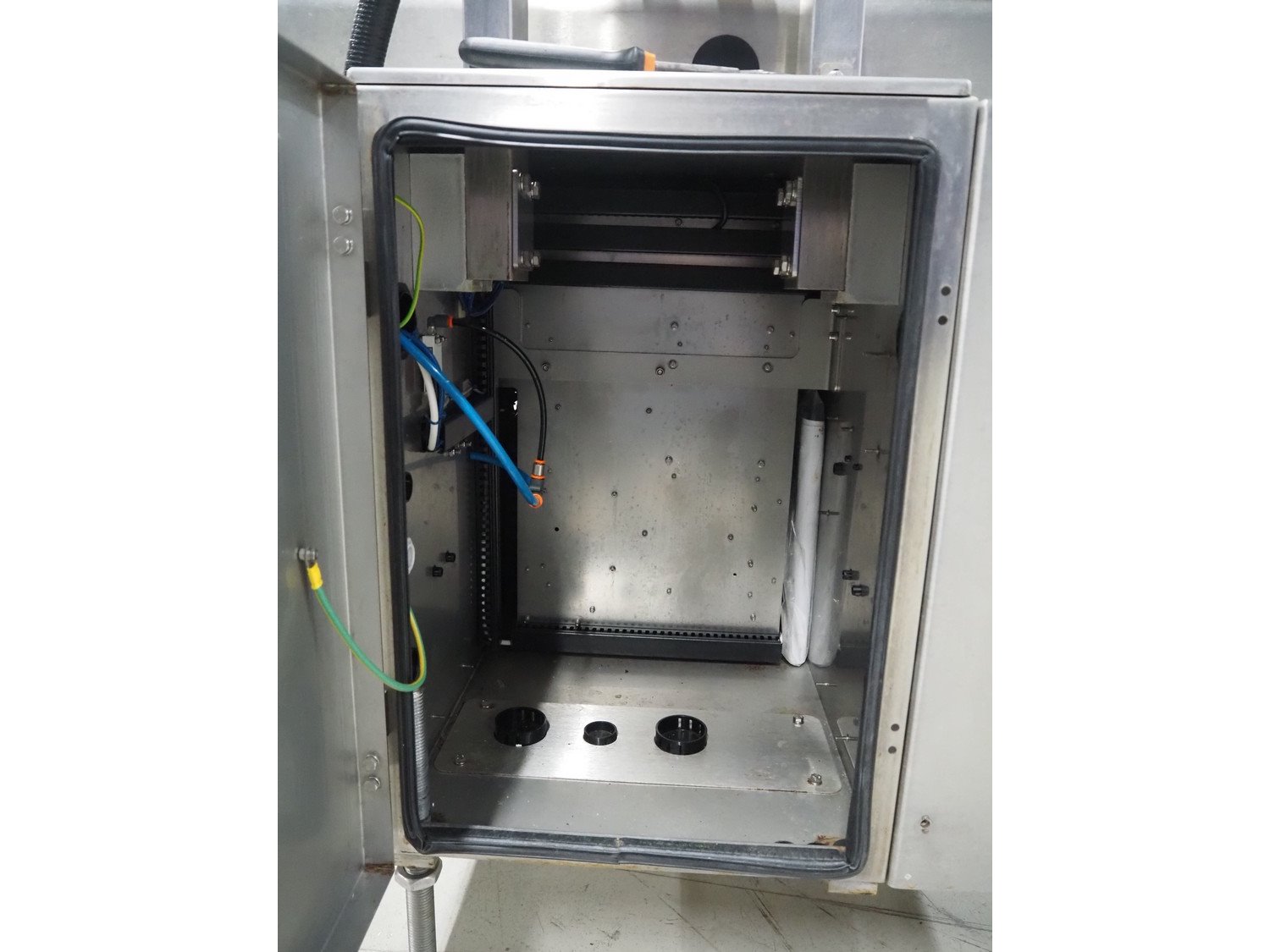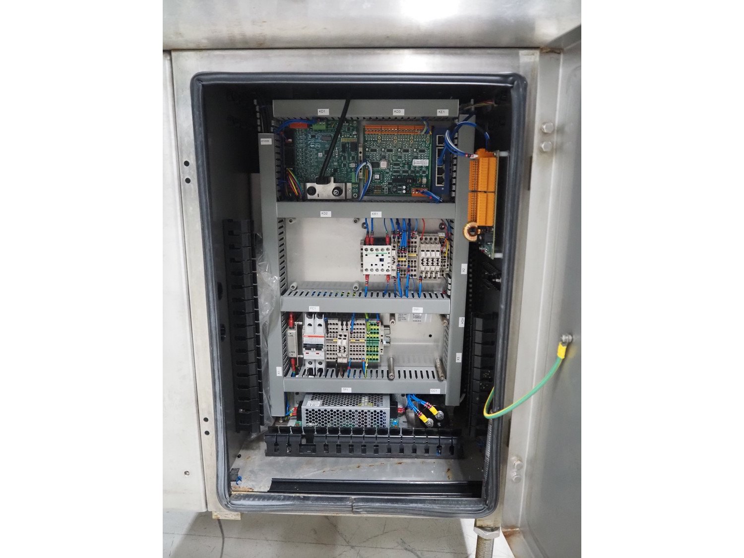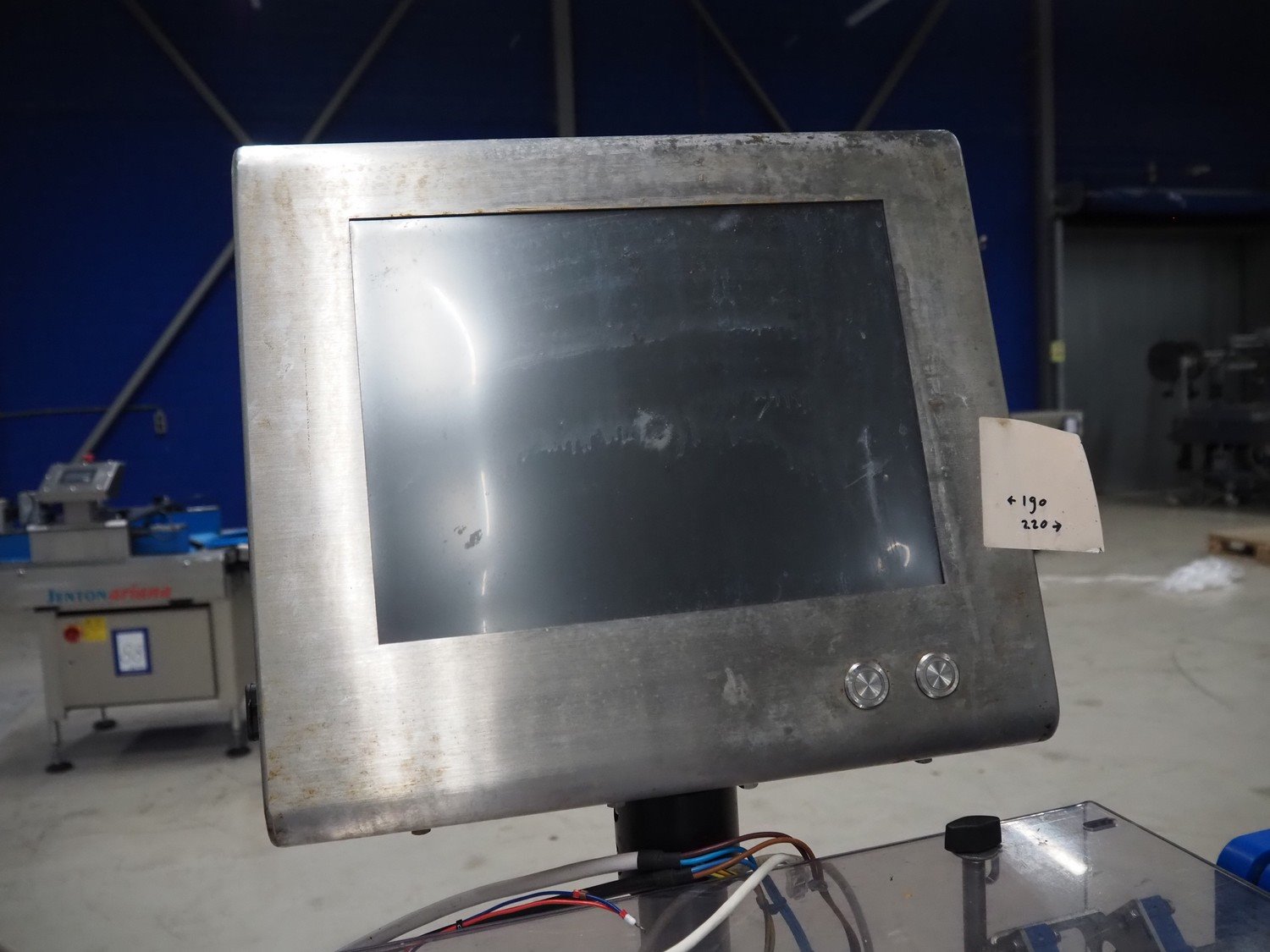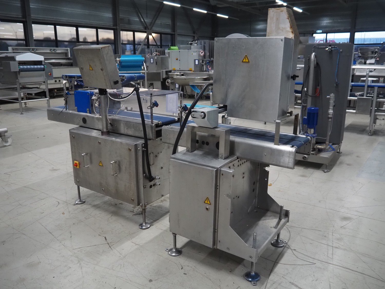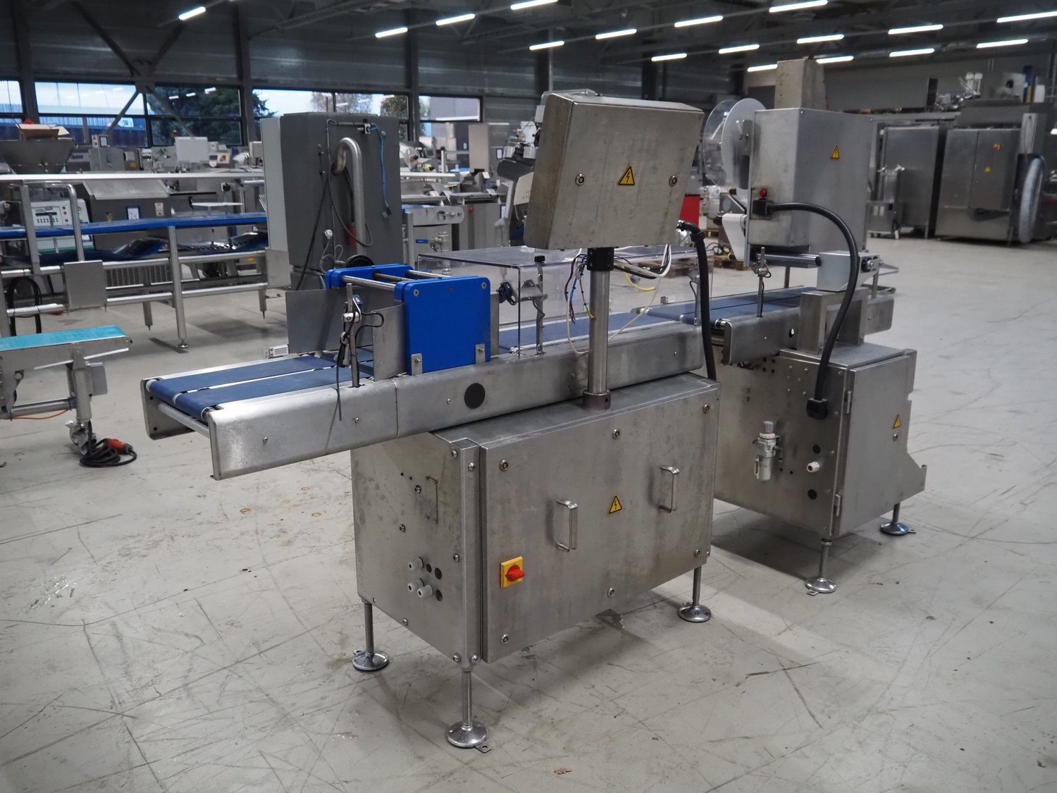 Marel checkweigher and labeller, model: 9000, serial number: 10449319, maximum weight: 3000 kg, minimum weight: 40 gram, e= 2 gram, maximum tare: 900 gram, plastic belts: (2x) 140 mm and 200 mm, total dimensions: 1580 mm x 600 mm x 1600 mm and 1080 mm x 750 mm x 1790 mm.