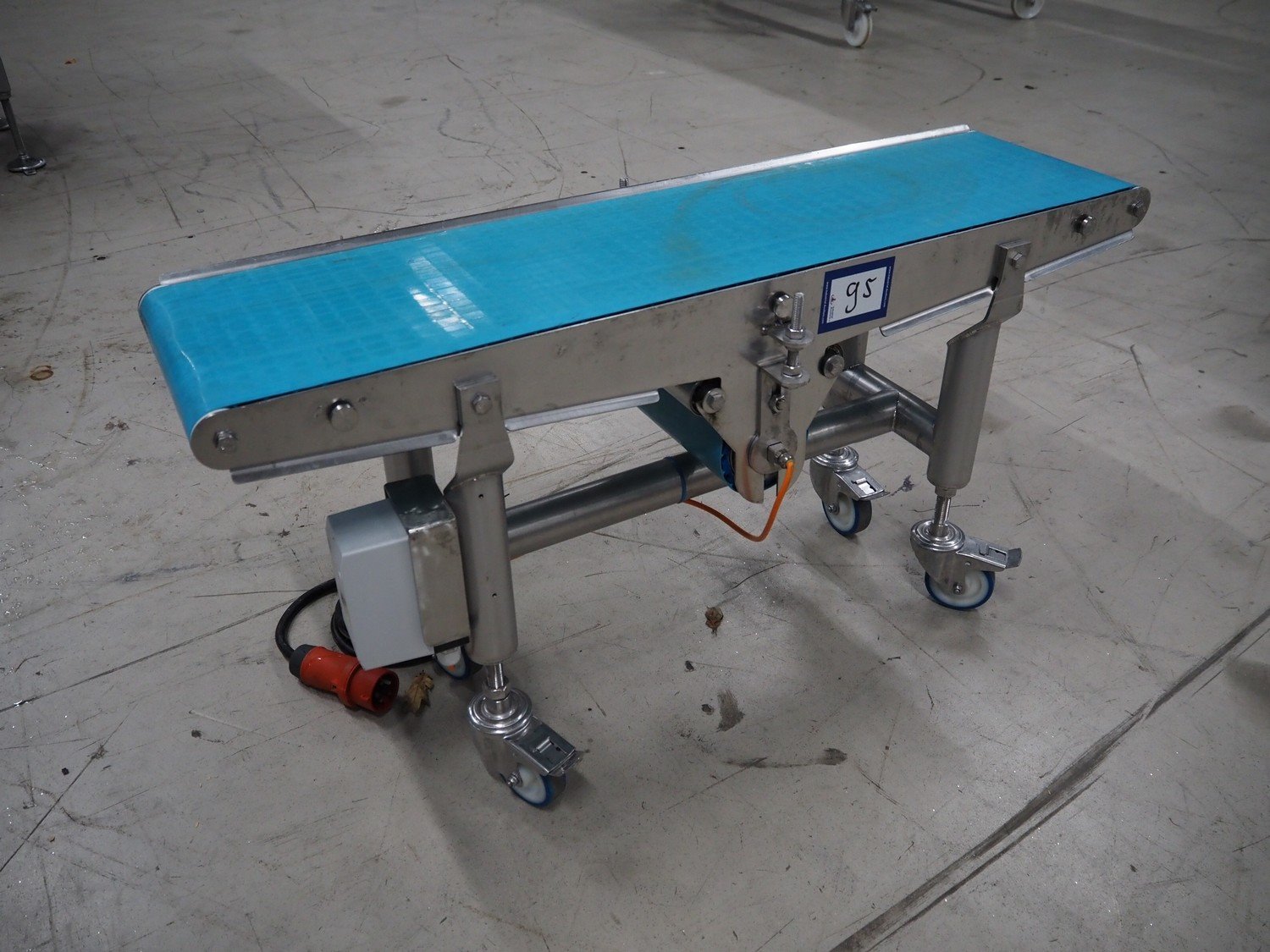 Mobile transport belt, s/s frame, plastic belt, belt width: 290 mm, total dimensions: 1200 mm x 420 mm x 610 mm.
