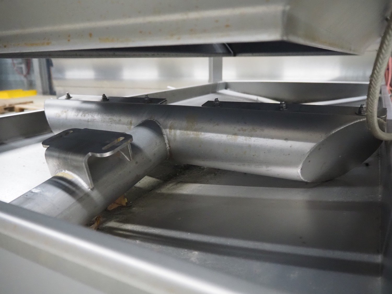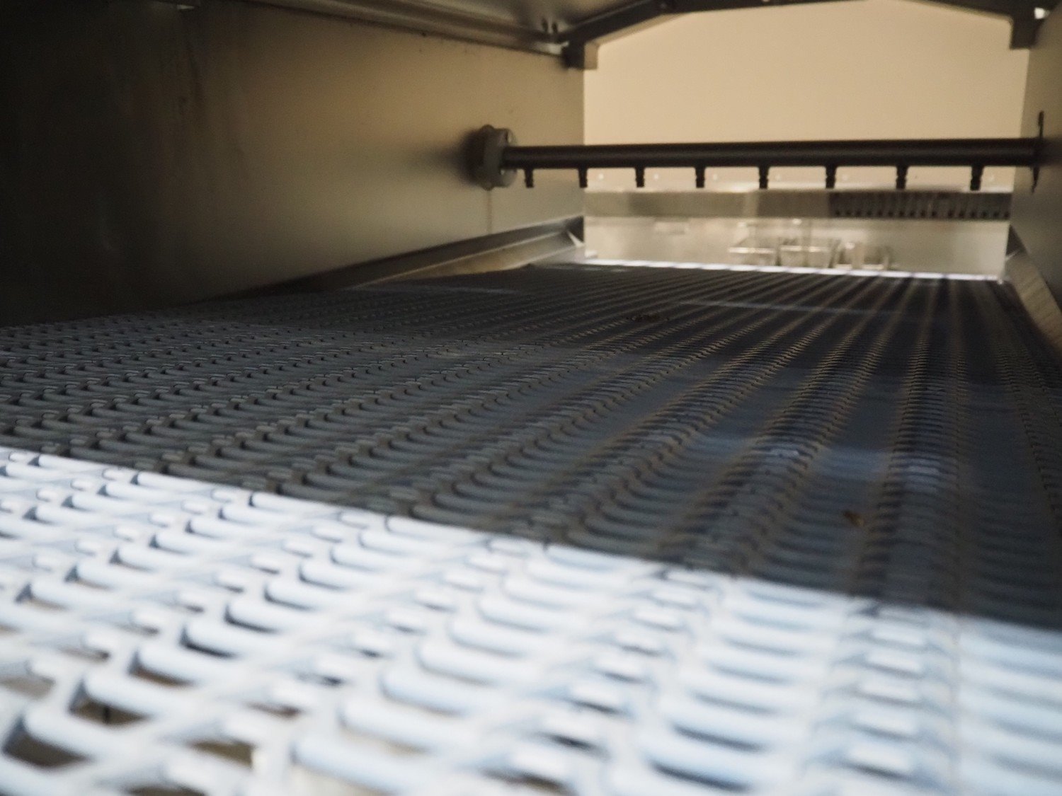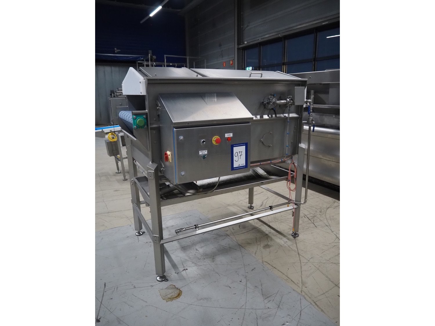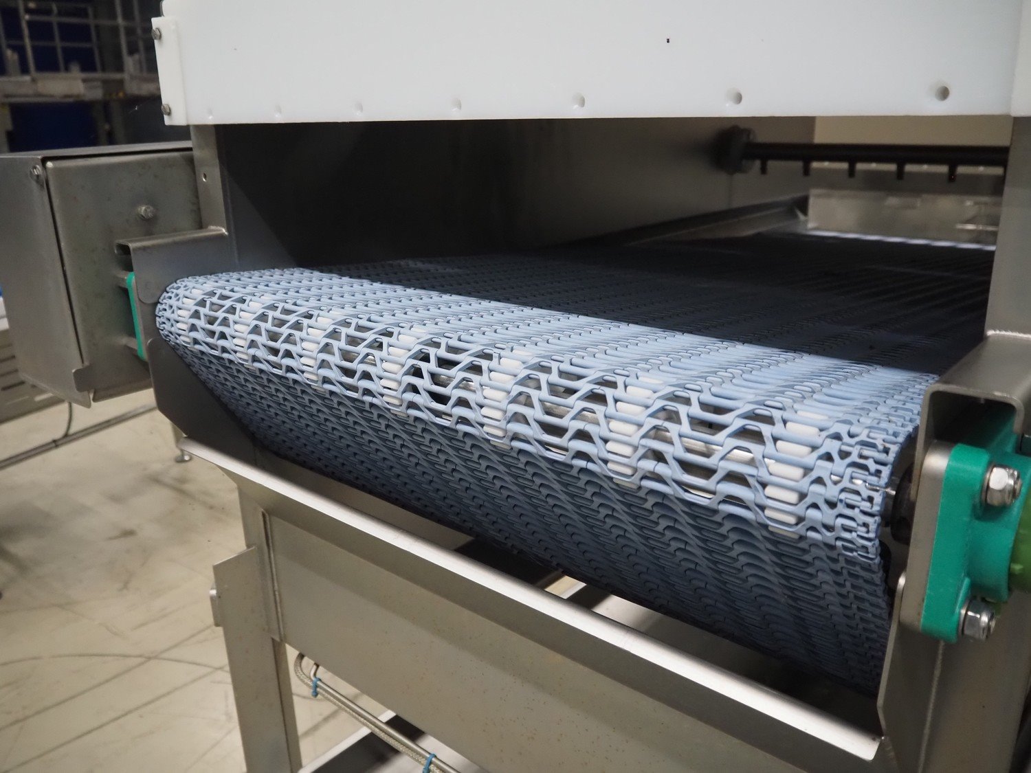 Jansen Techniek salmon rinsing tunnel, model: Zalmspelmachine Links, type: Spoelen en drogen van boven, number: 2020000540, year of construction: 2020, plastic mesh belt, belt width: 710 mm, total dimensions: 1700 mm x 1300 mm x 1730 mm.