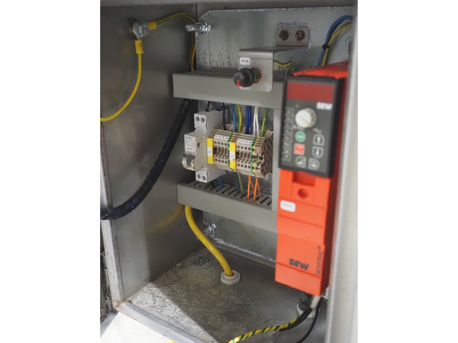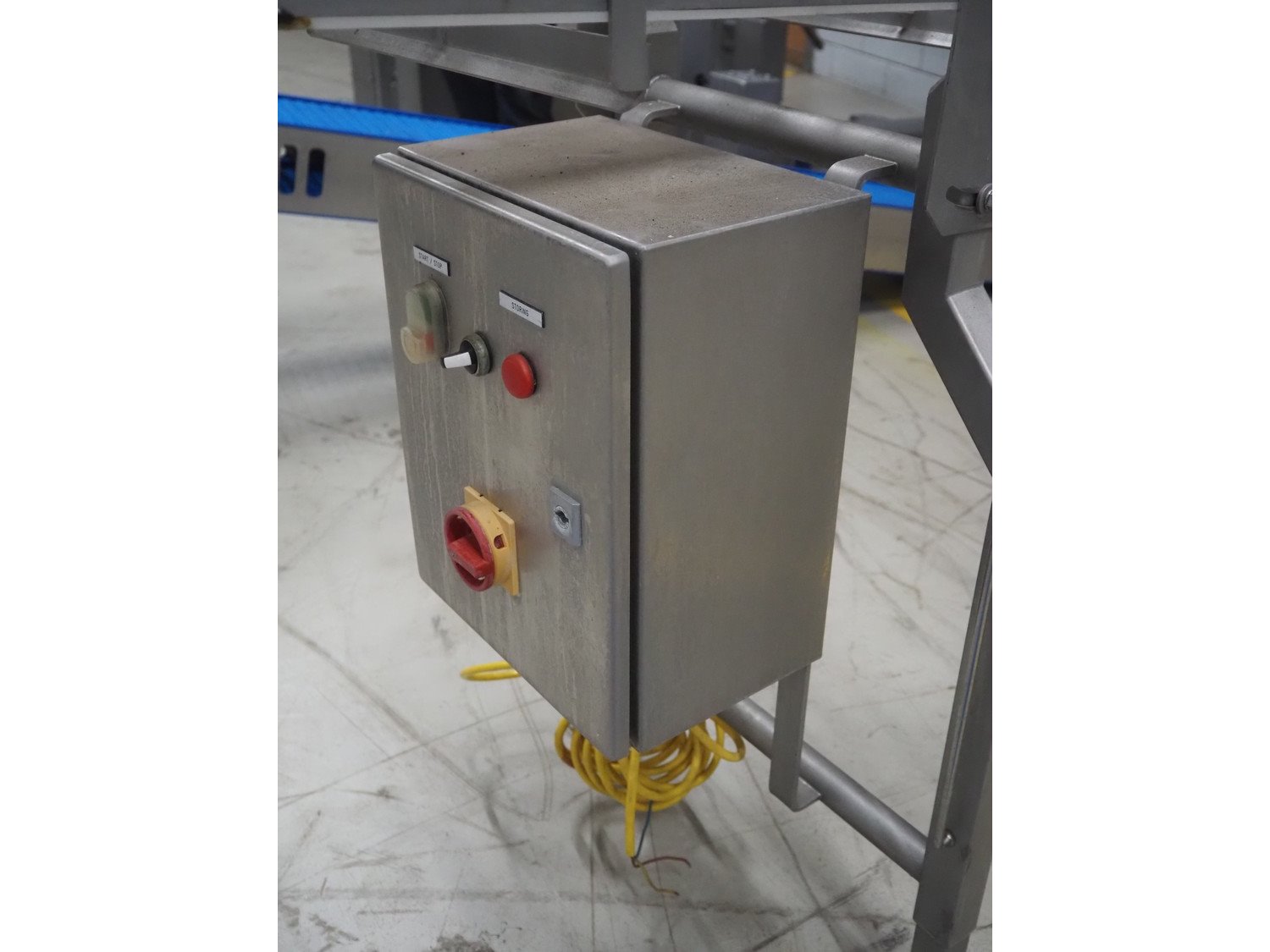 Marvu 90° curve conveyor, s/s frame, plastic mesh belt, belt width: 350 mm, total dimensions: 3500 mm x 2300 mm x 1250 mm.