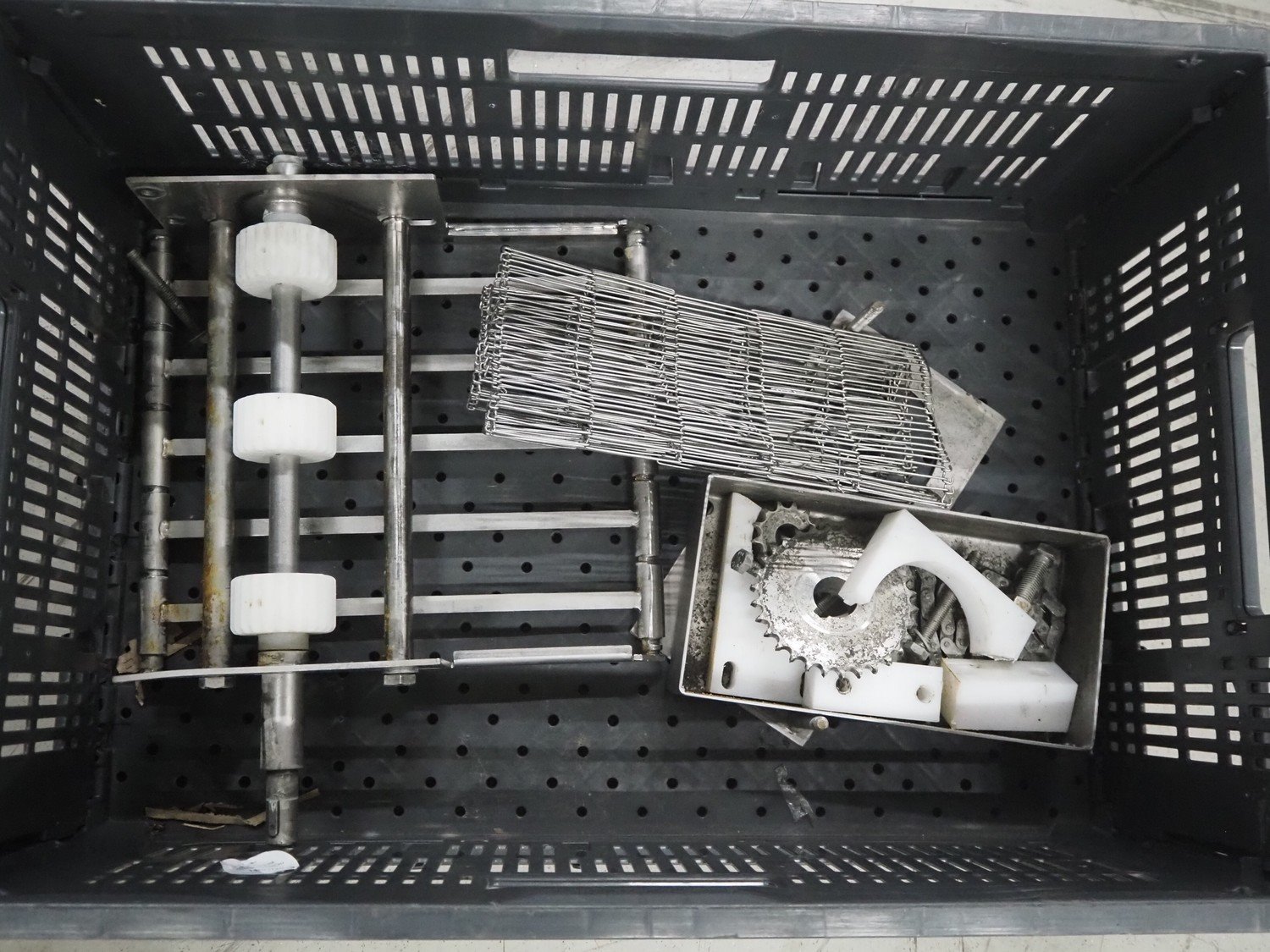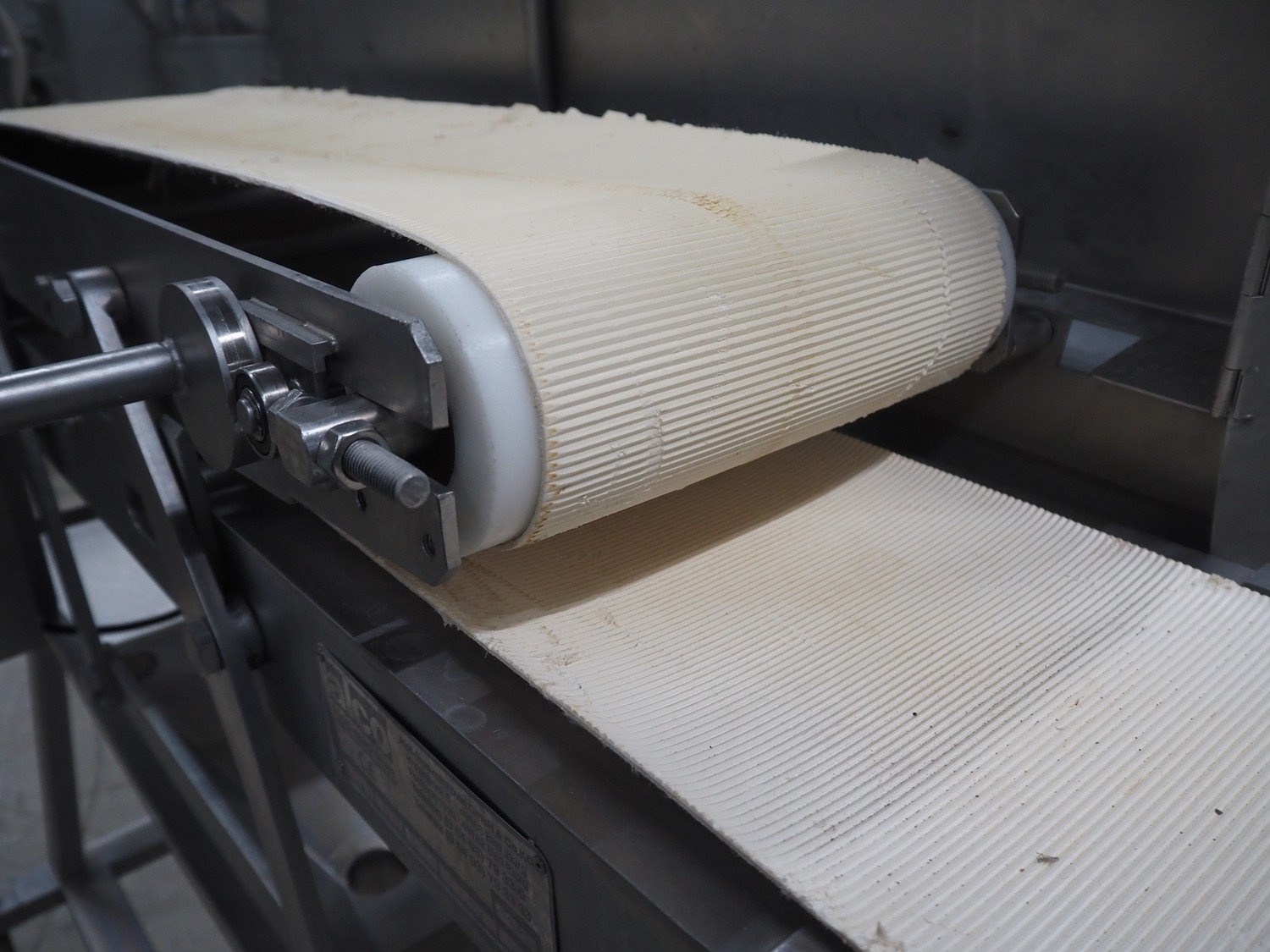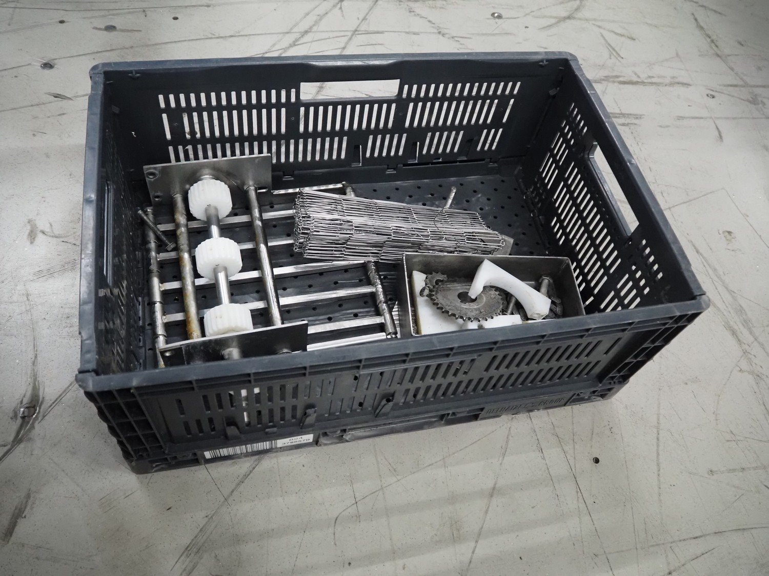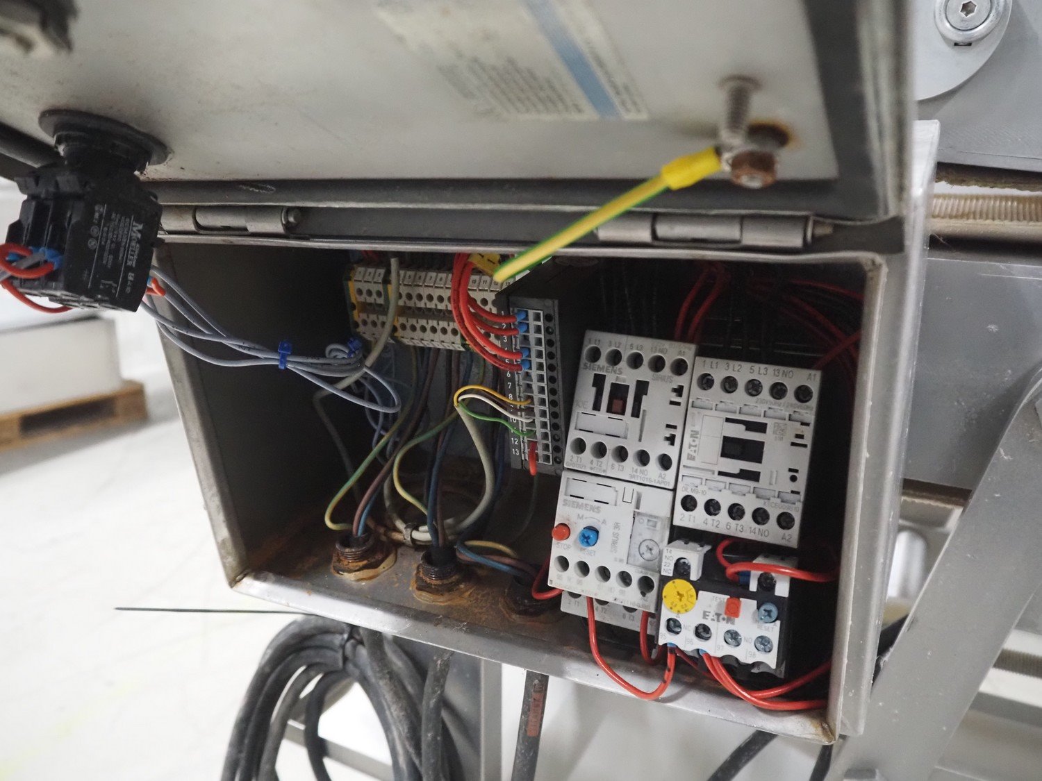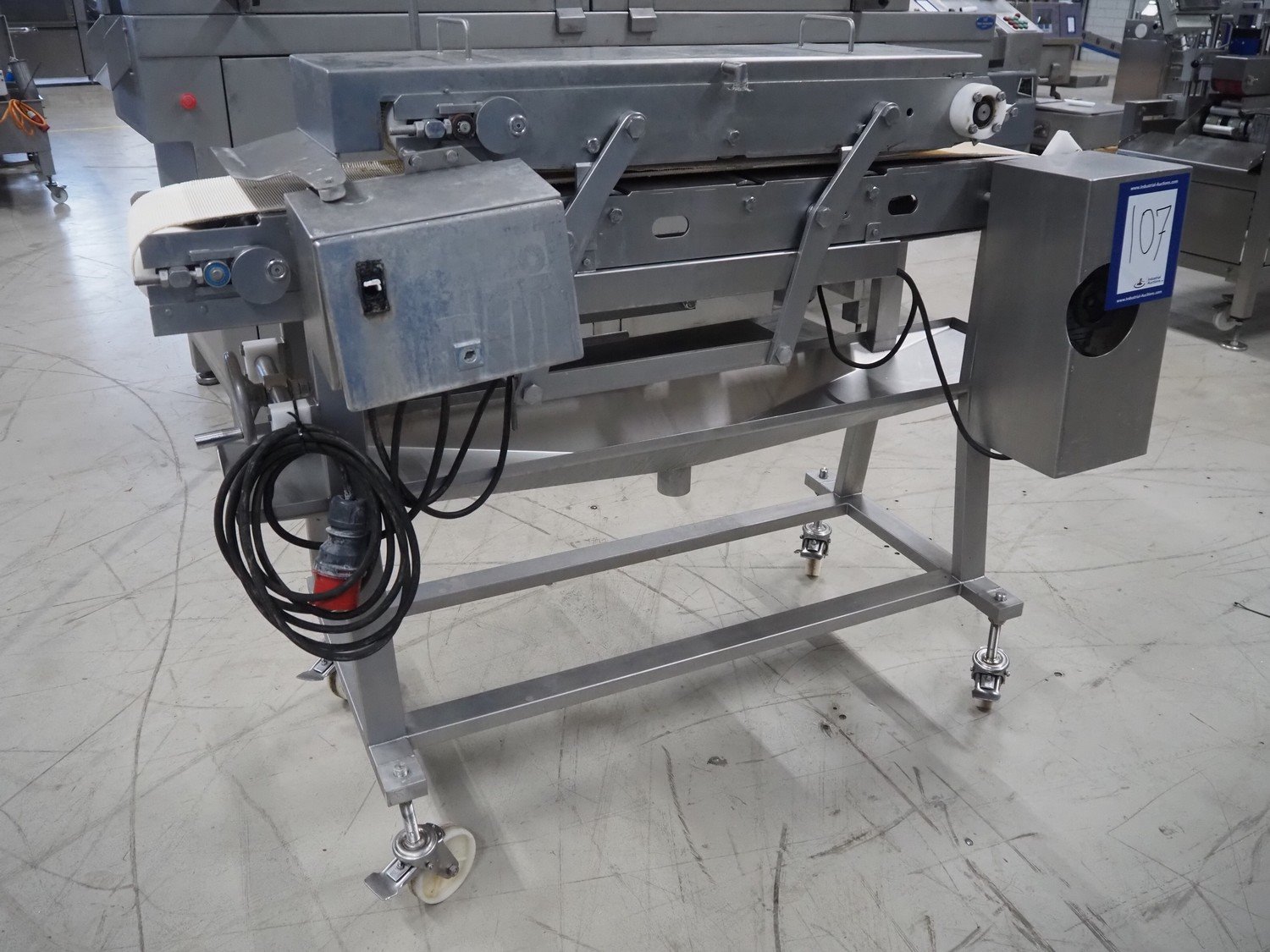 Alco mobile flattening machine, type: ASP 250, serial number: 19301213, year of construction: 2002, 400 V, (2x) 0.18 kW, 260 kg, plastic belt, belt width: (1x) 245 mm, (1x) 250 mm, total dimensions: 1600 mm x 650 mm x 1410 mm. Technical condition unknown.