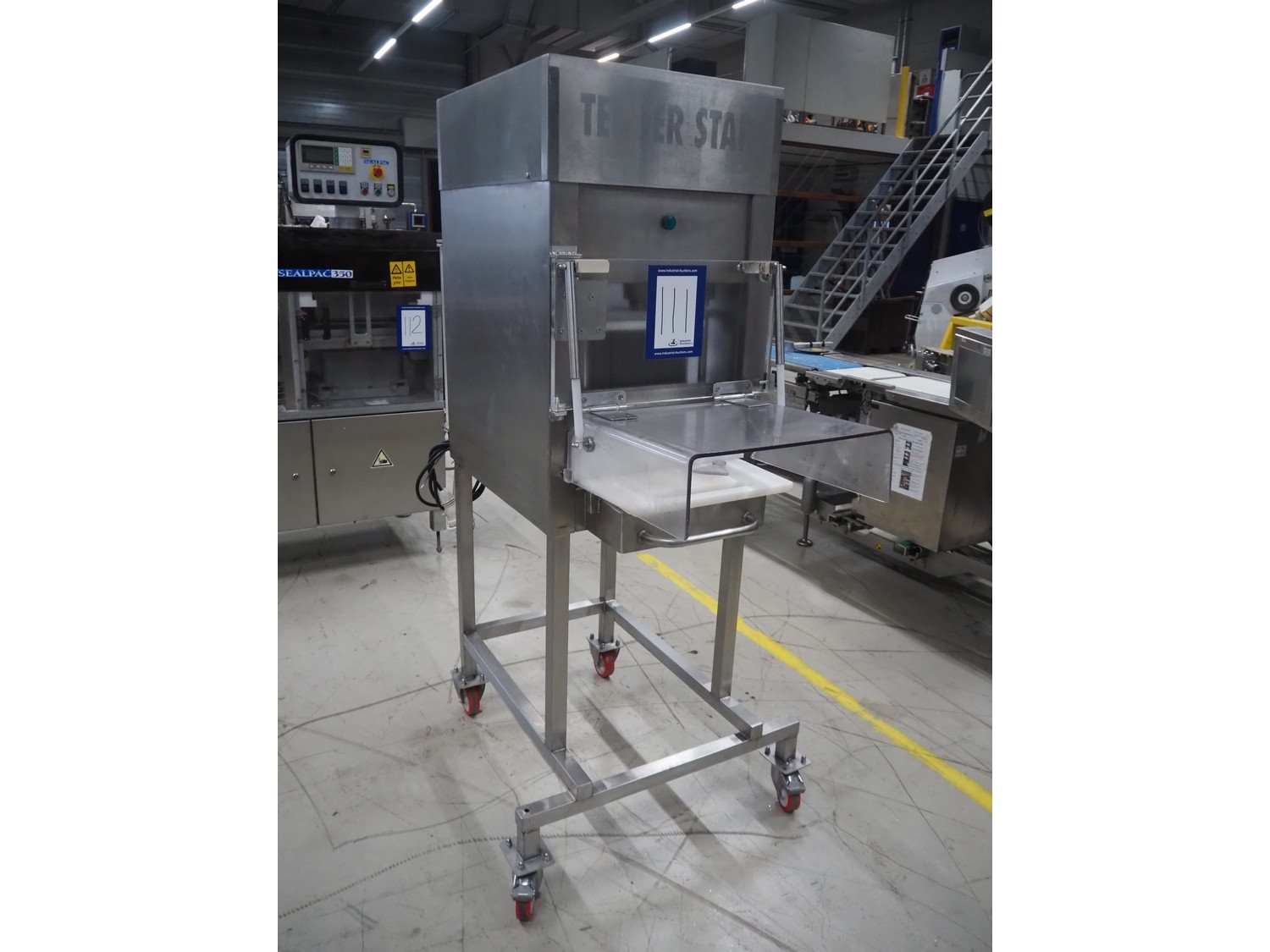 Tender Star mobile tenderizer, model: T.S.E. serial number: 2012344, year of construction: 2001, 220/380 V, 3 Ph, 50 Hz, 0.9 kW, clearance: 400 mm x 160 mm, total dimensions: 970 mm x 850 mm x 1800 mm.