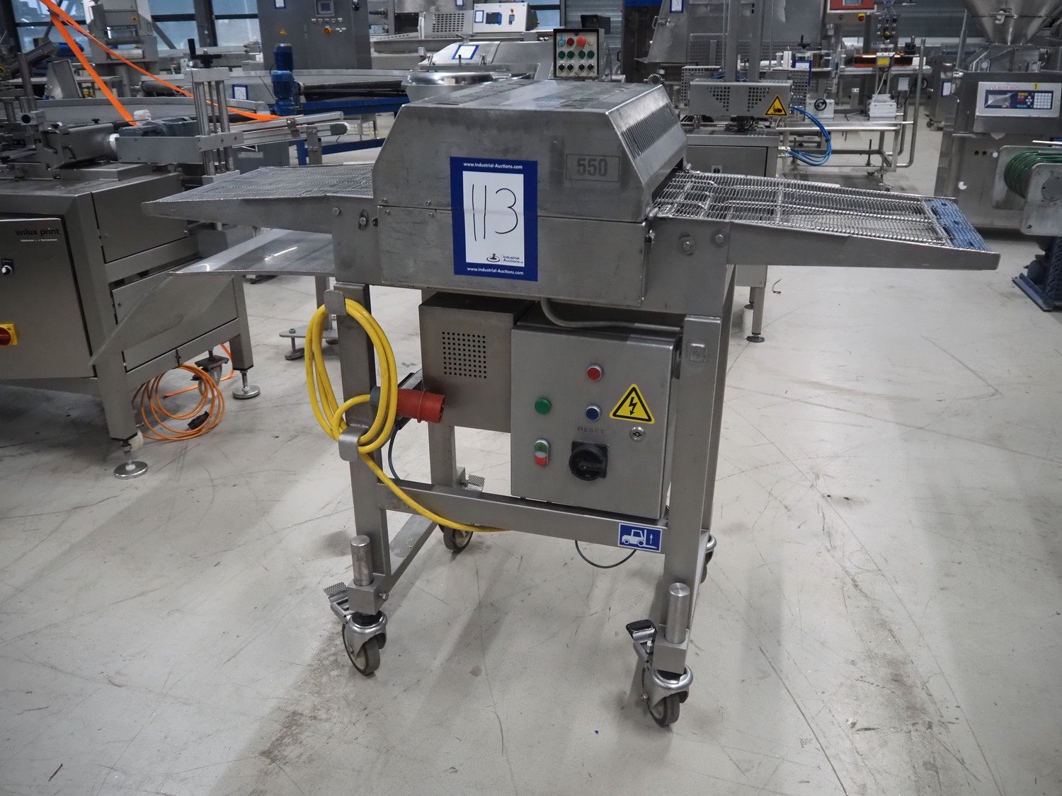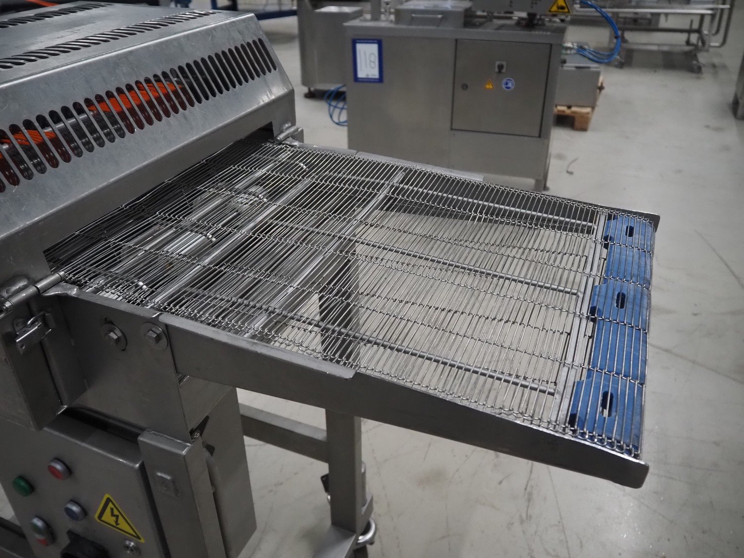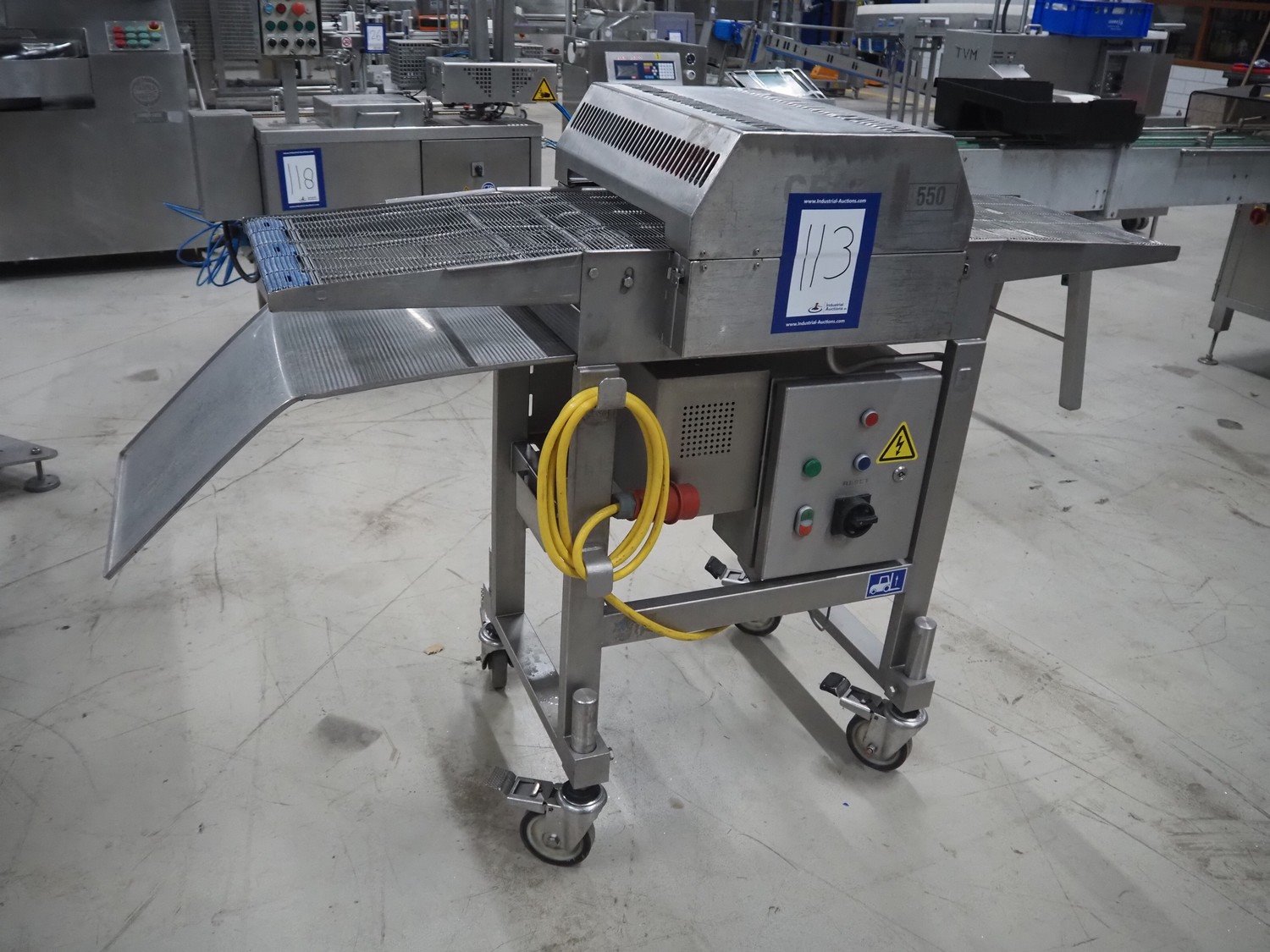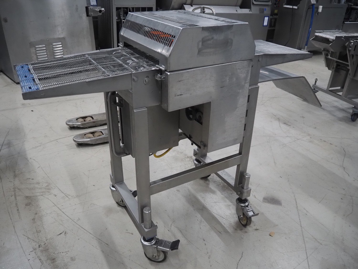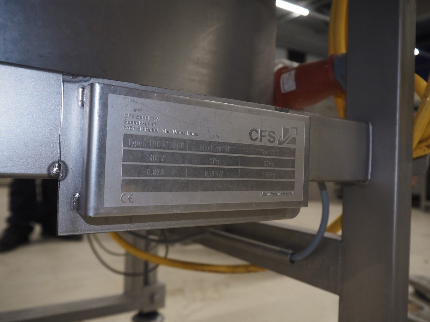 CFS mobile steaker, type: TRC 400 SCR, machine number: 141, year of construction: 2010, 400 V, 3 Ph, 50 Hz, 0.87 A, 0.18 kW, weight: 135 kg, s/s mesh belt, belt width: 400 mm, working width: 400 mm, total dimensions: 1800 mm x 600 mm x 1230 mm.
