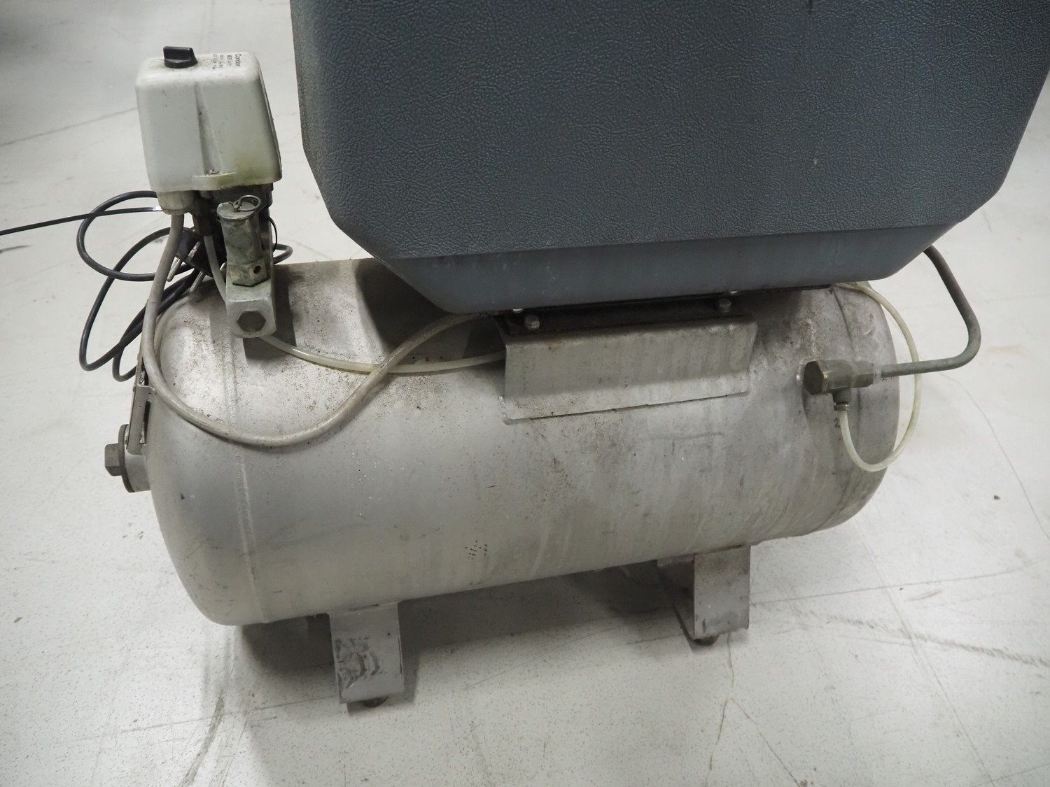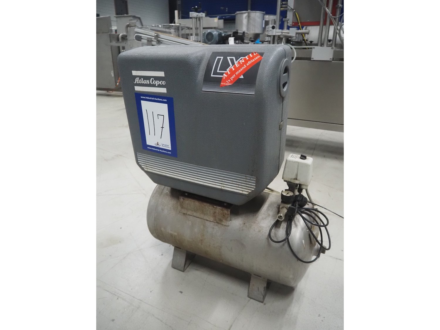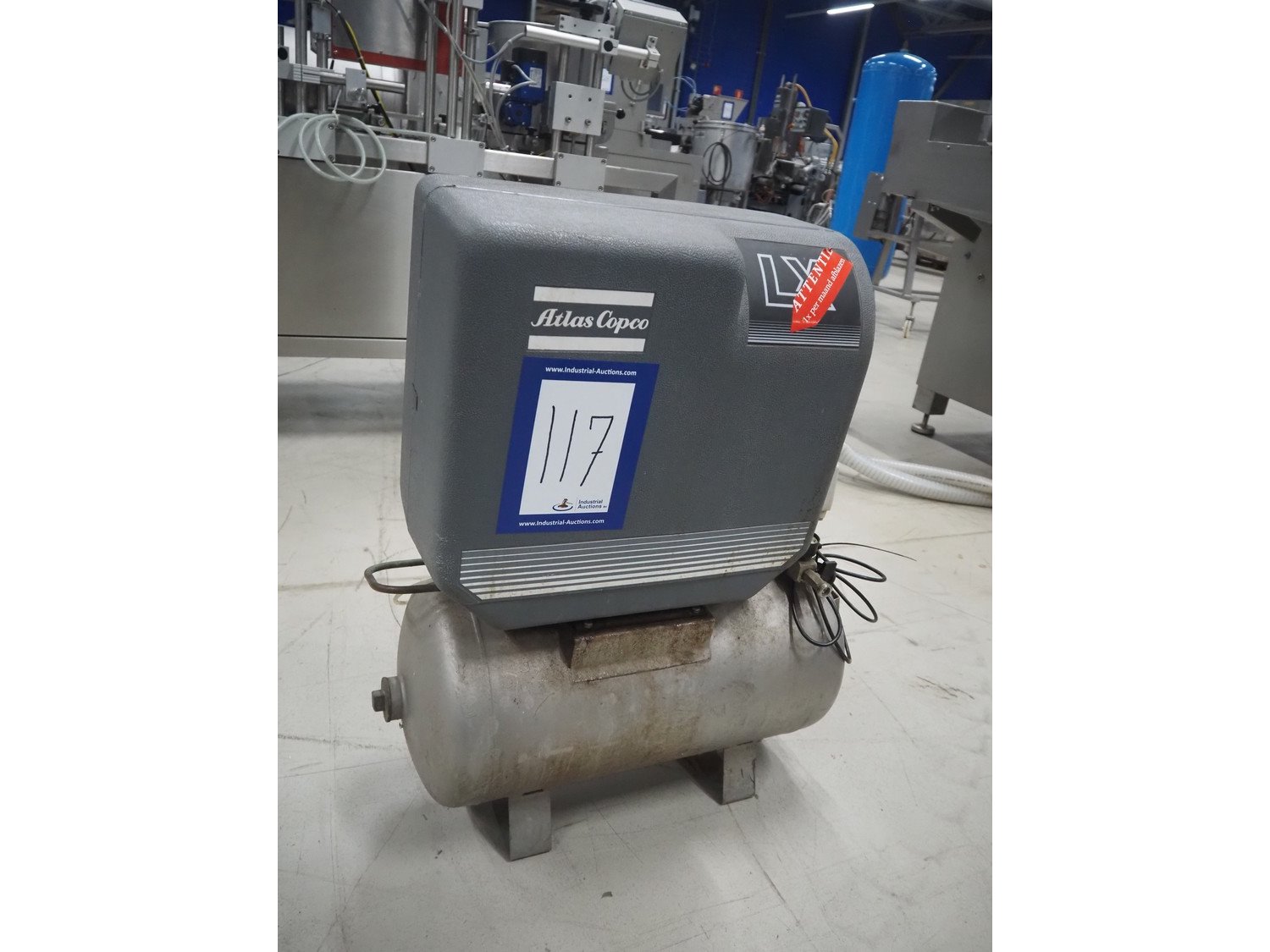 Atlas Copco mobile air compressor, 220 V, 1 Ph, 50 Hz, 7.3 A, 1.1 kW, dimensions: 730 mm x 370 mm x 900 mm.