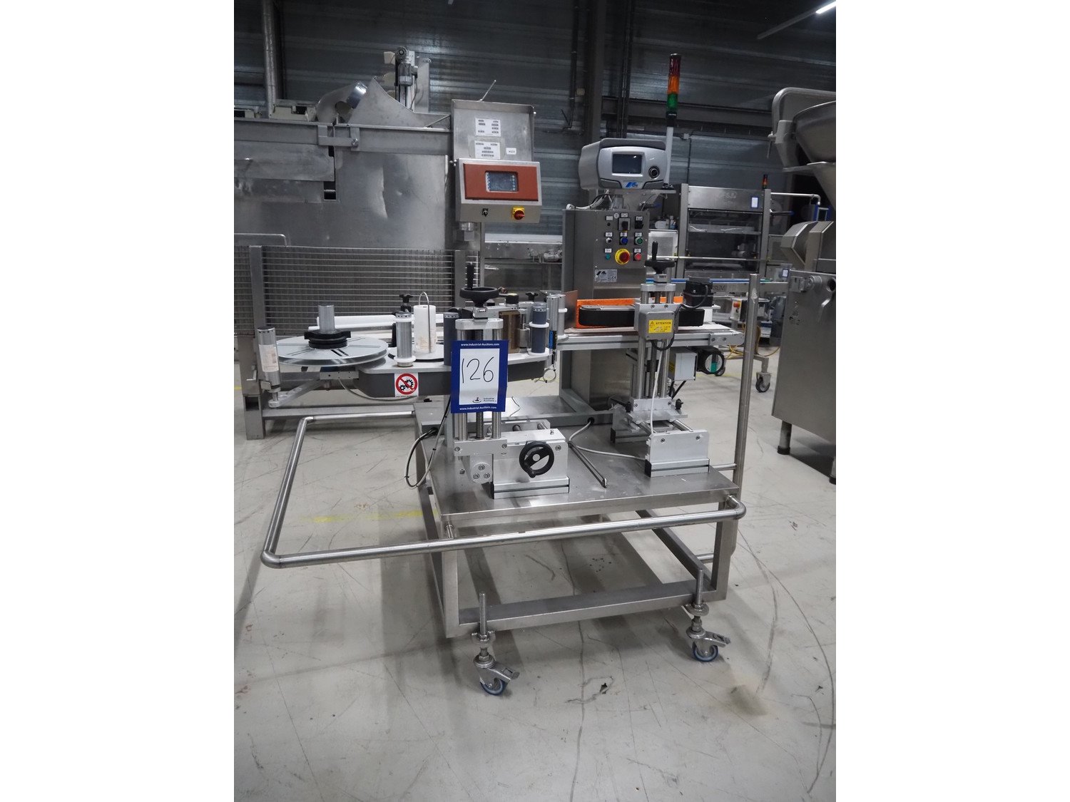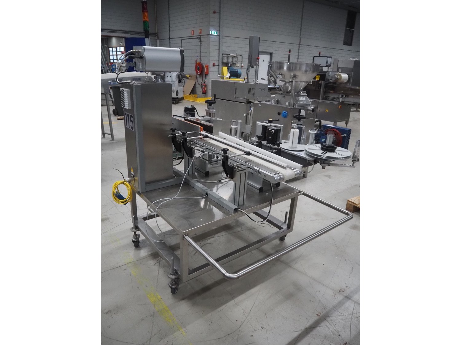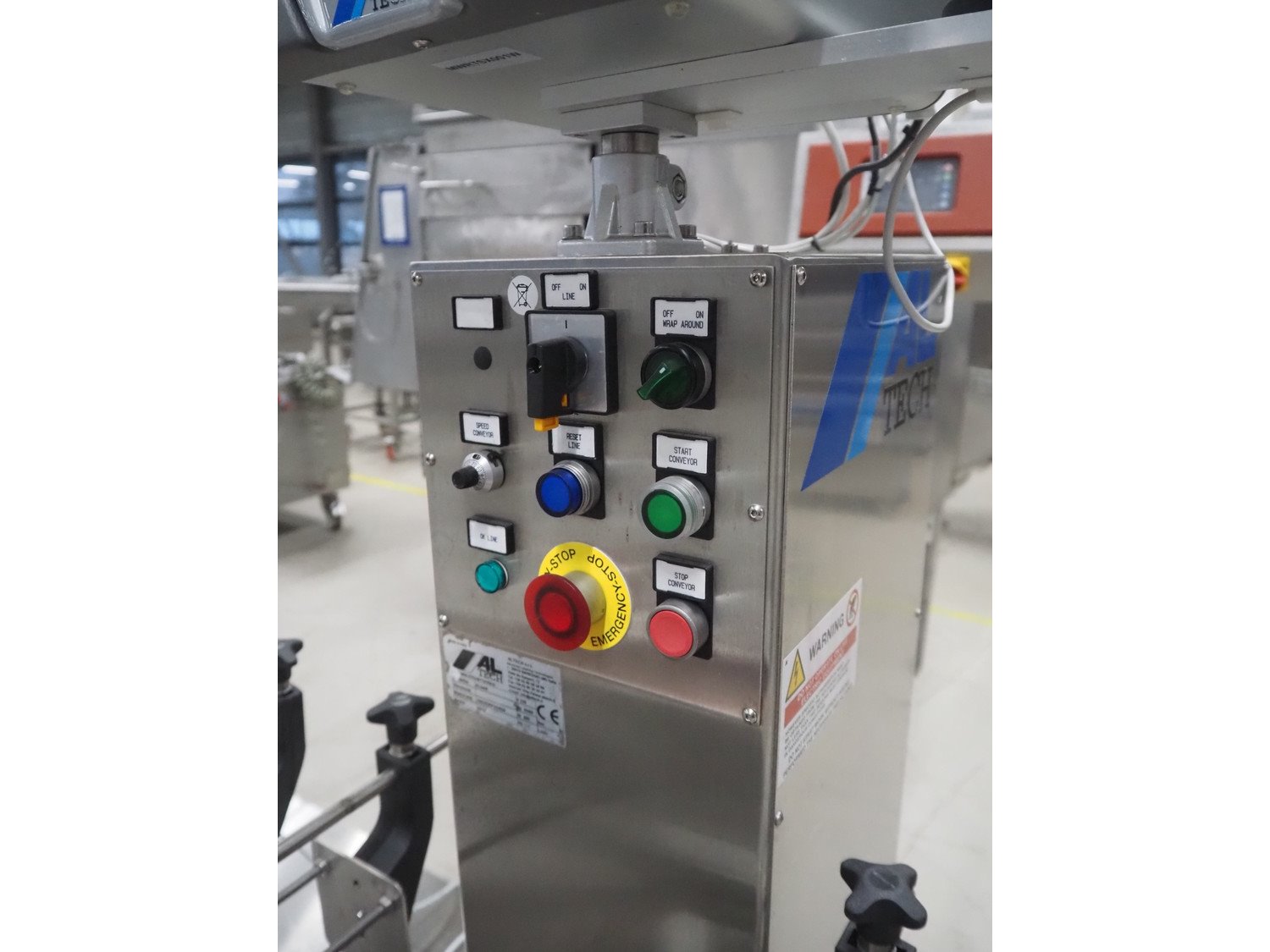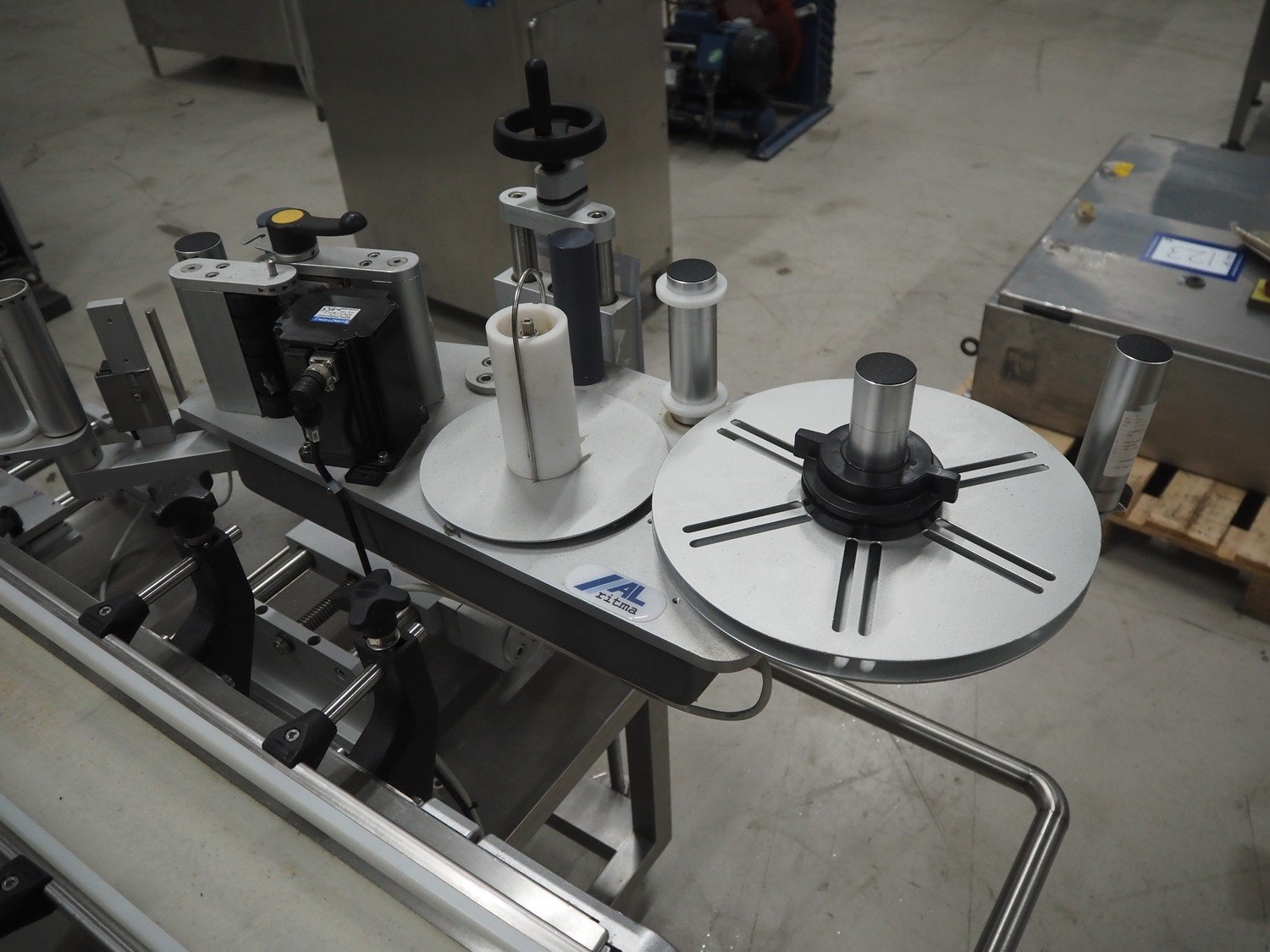ALTech mobile labelling machine, model: Albelt, serial number: 1903020022434, year of construction: 2019, 230 V, 1 Ph, 50/60 Hz, 800 W, plastic belt, belt width: 100 mm, total dimensions: 1600 mm x 1250 mm x 1970 mm.