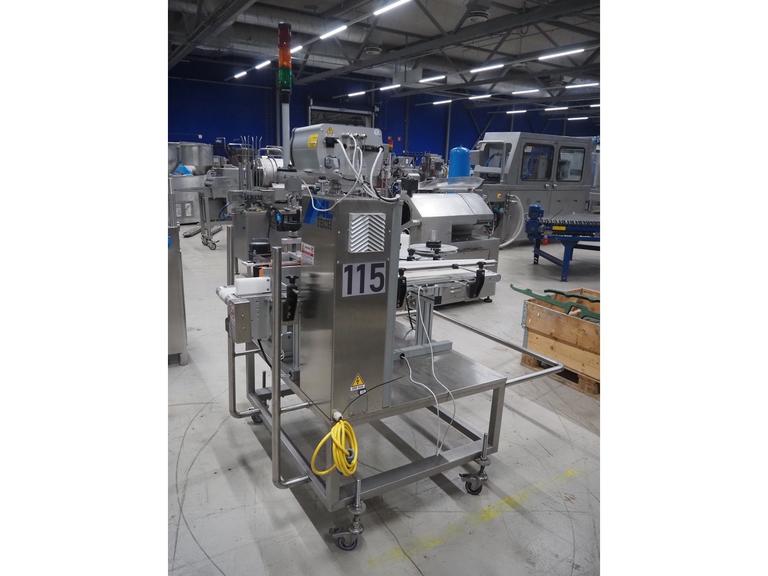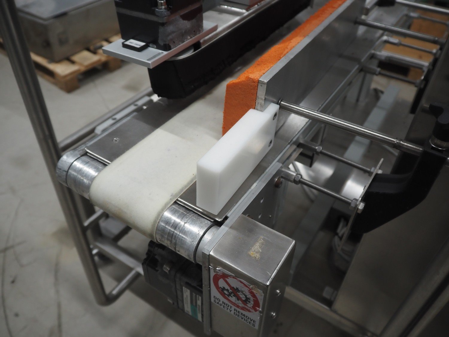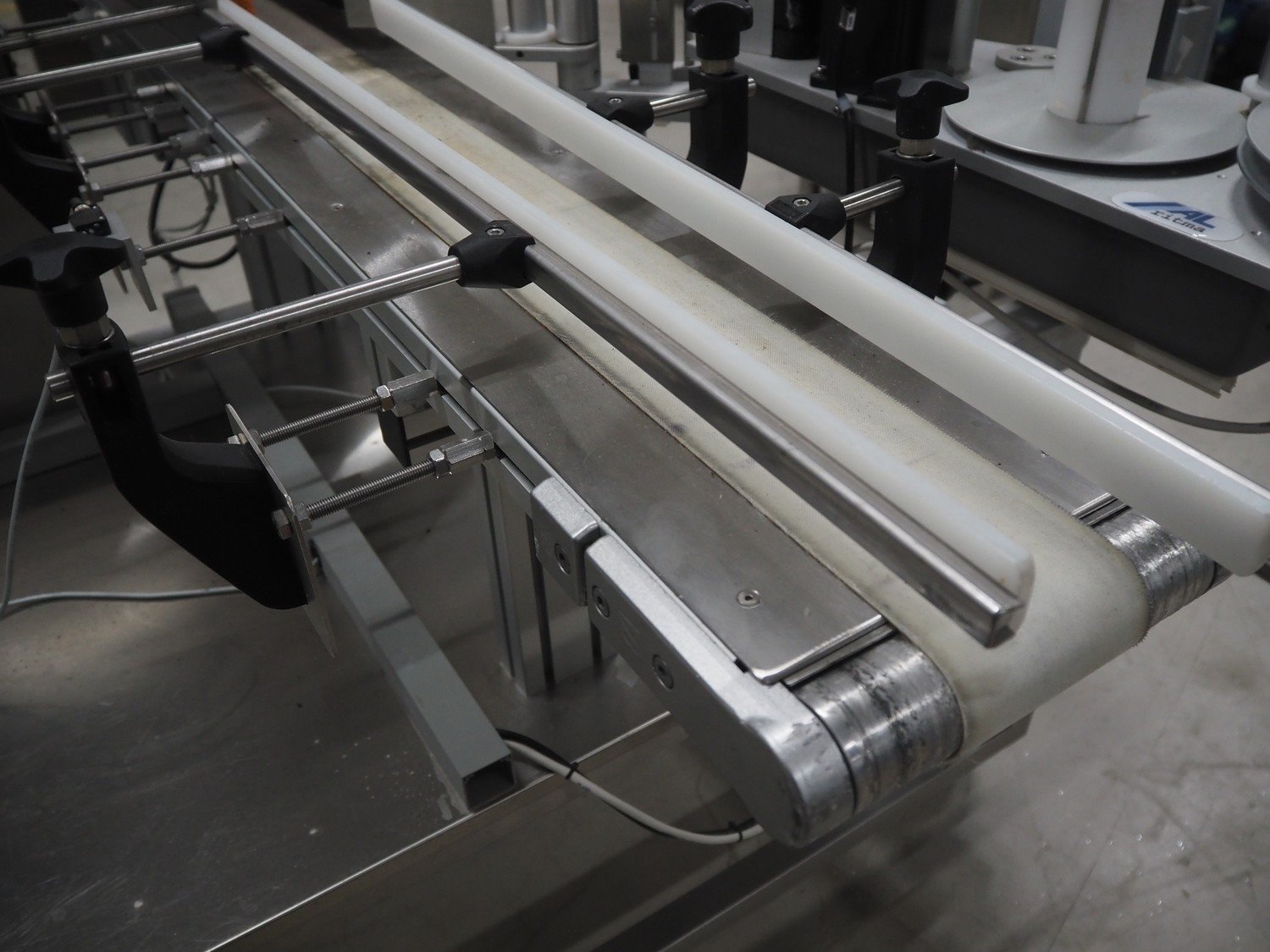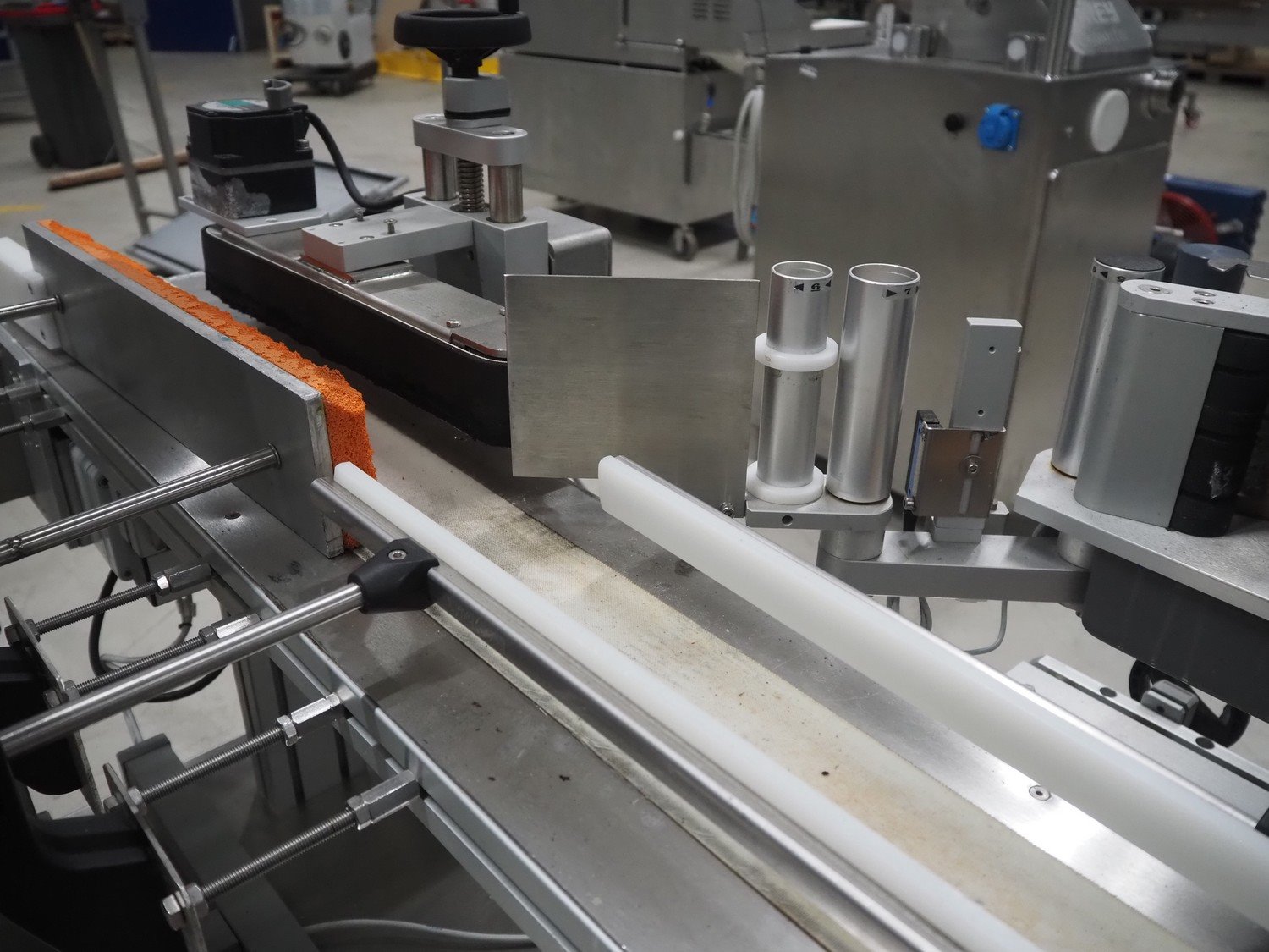 ALTech mobile labelling machine, model: Albelt, serial number: 1903020022434, year of construction: 2019, 230 V, 1 Ph, 50/60 Hz, 800 W, plastic belt, belt width: 100 mm, total dimensions: 1600 mm x 1250 mm x 1970 mm.