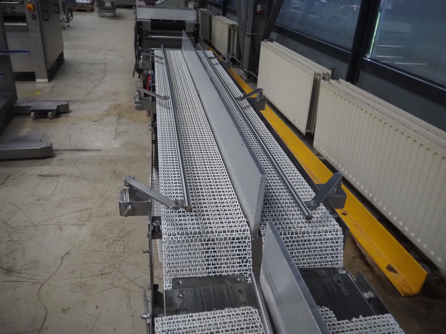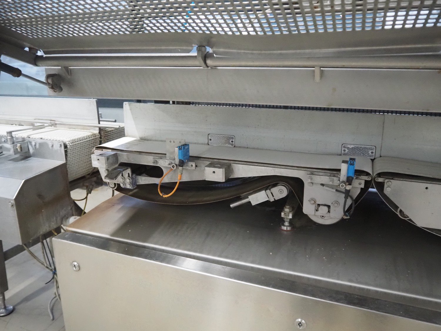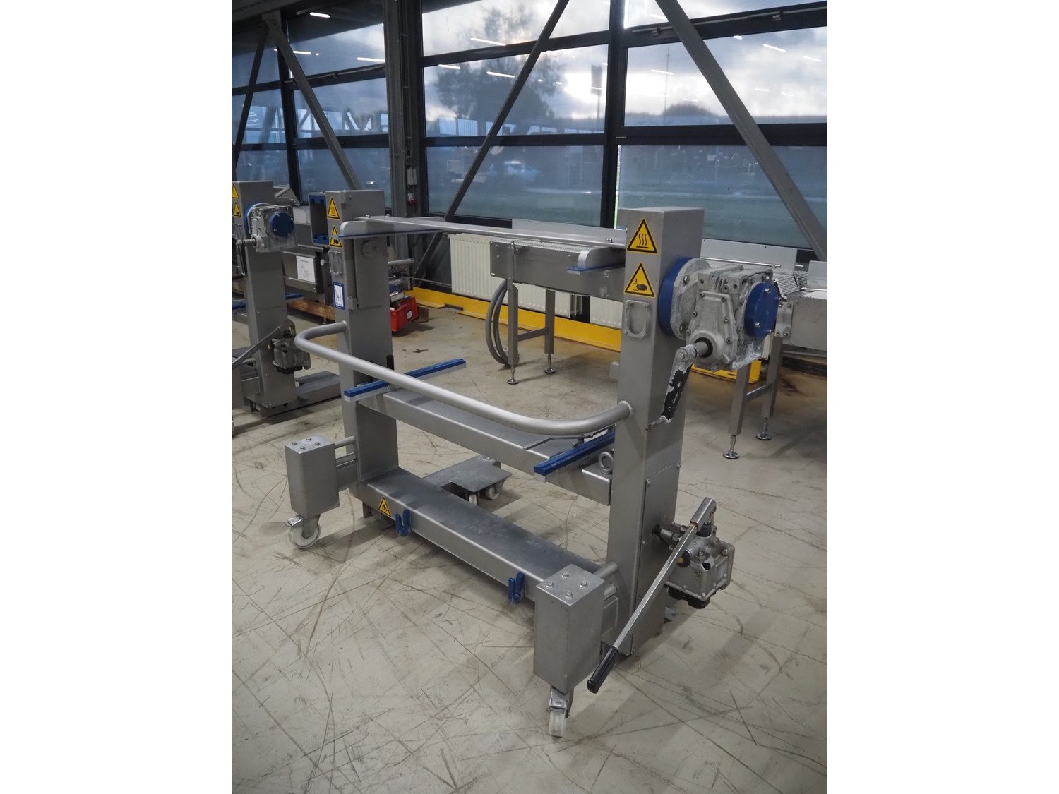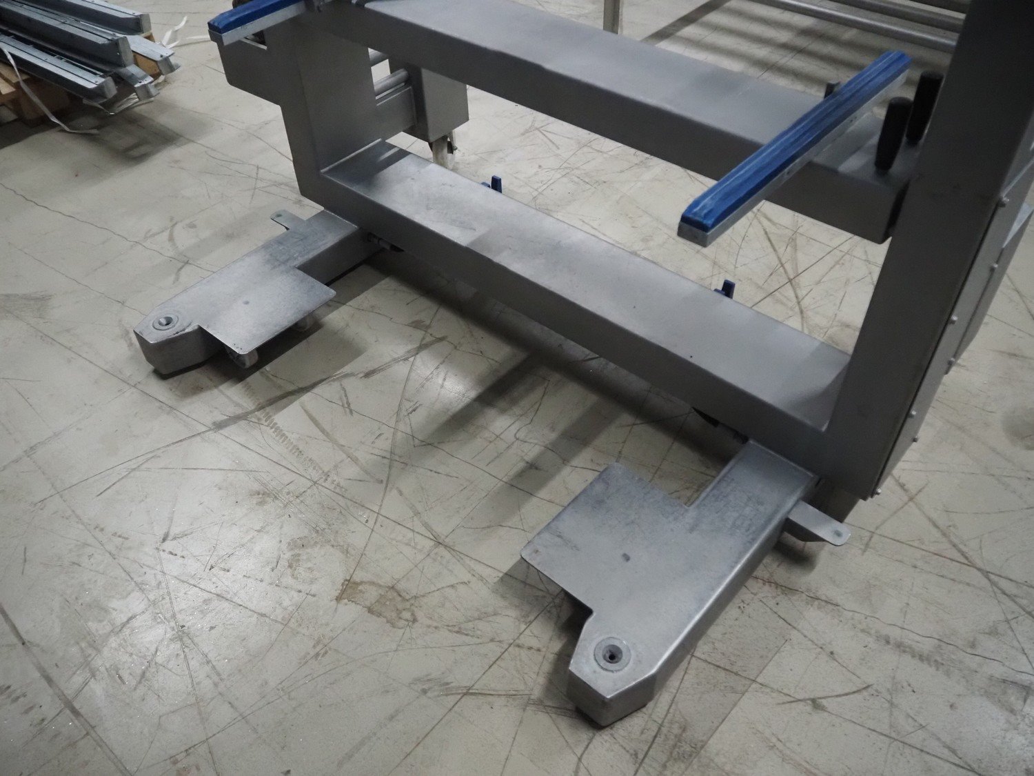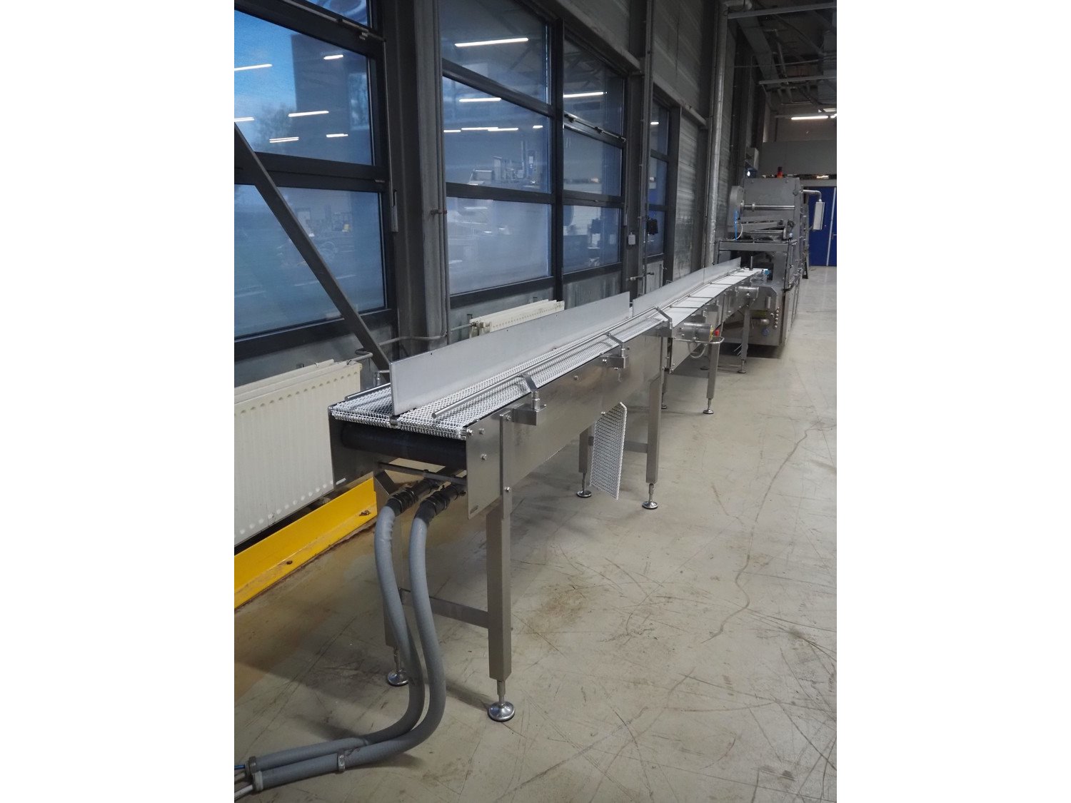 CFS traysealer, type: Twin Star, machine number: 773-118, year of construction: 2004, 400 V, 3 Ph, 50 Hz, 18 A, 12 kW, 2200 kg, plastic mesh infeed belts, belt width: (2x) 170 mm, total dimensions: 4600 mm x 1100 mm x 2200 mm, 2100 mm x 600 mm x 1100 mm and 4000 mm x 1000 mm x 1100 mm. With pallet with spacers and 2 trolleys for changing dyes, dimensions pallet: 2000 mm x 1300 mm x 900 mm, dimensions trolleys: (2x) 1900 mm x 1100 mm x 1350 mm. Incomplete.