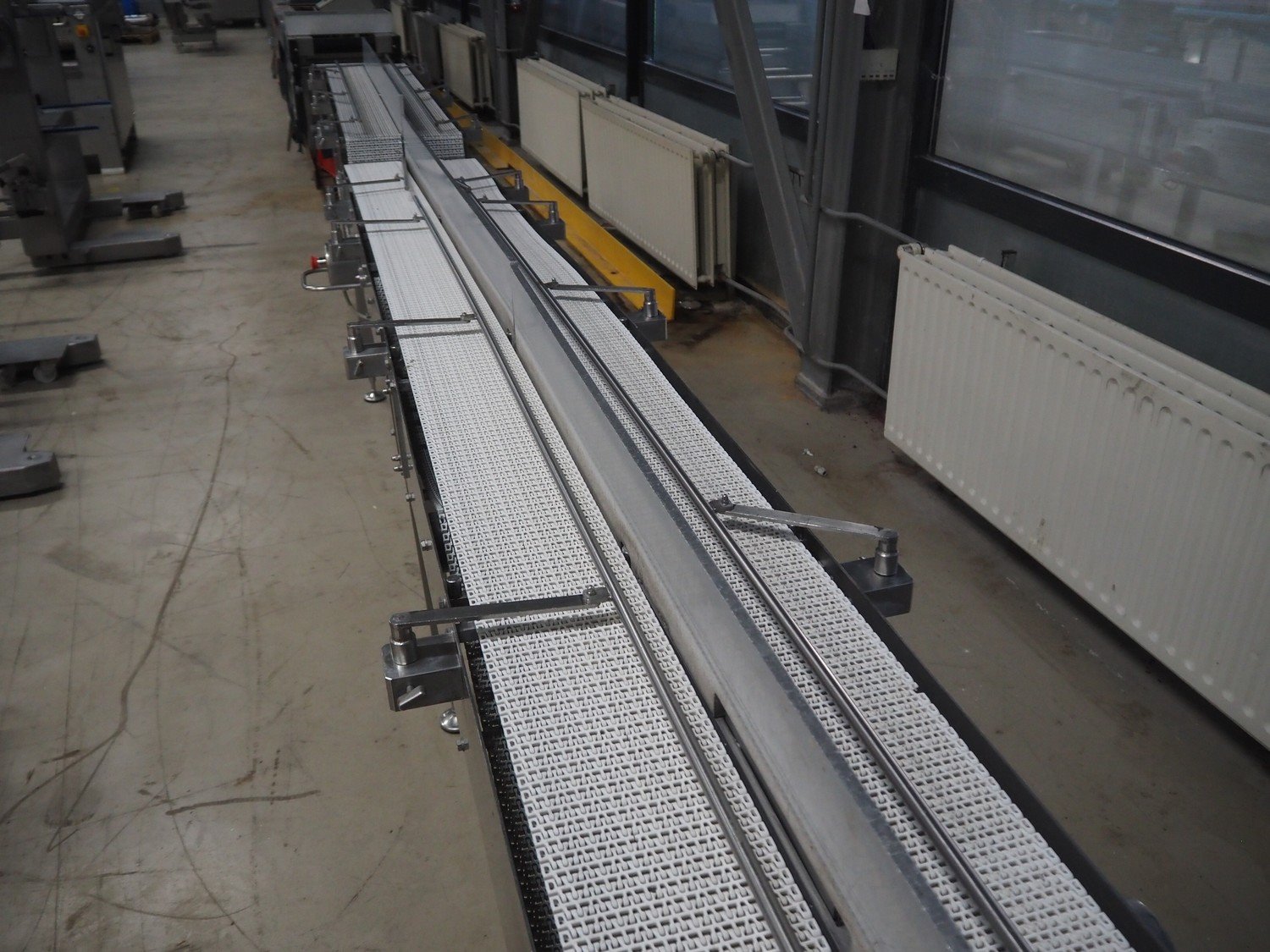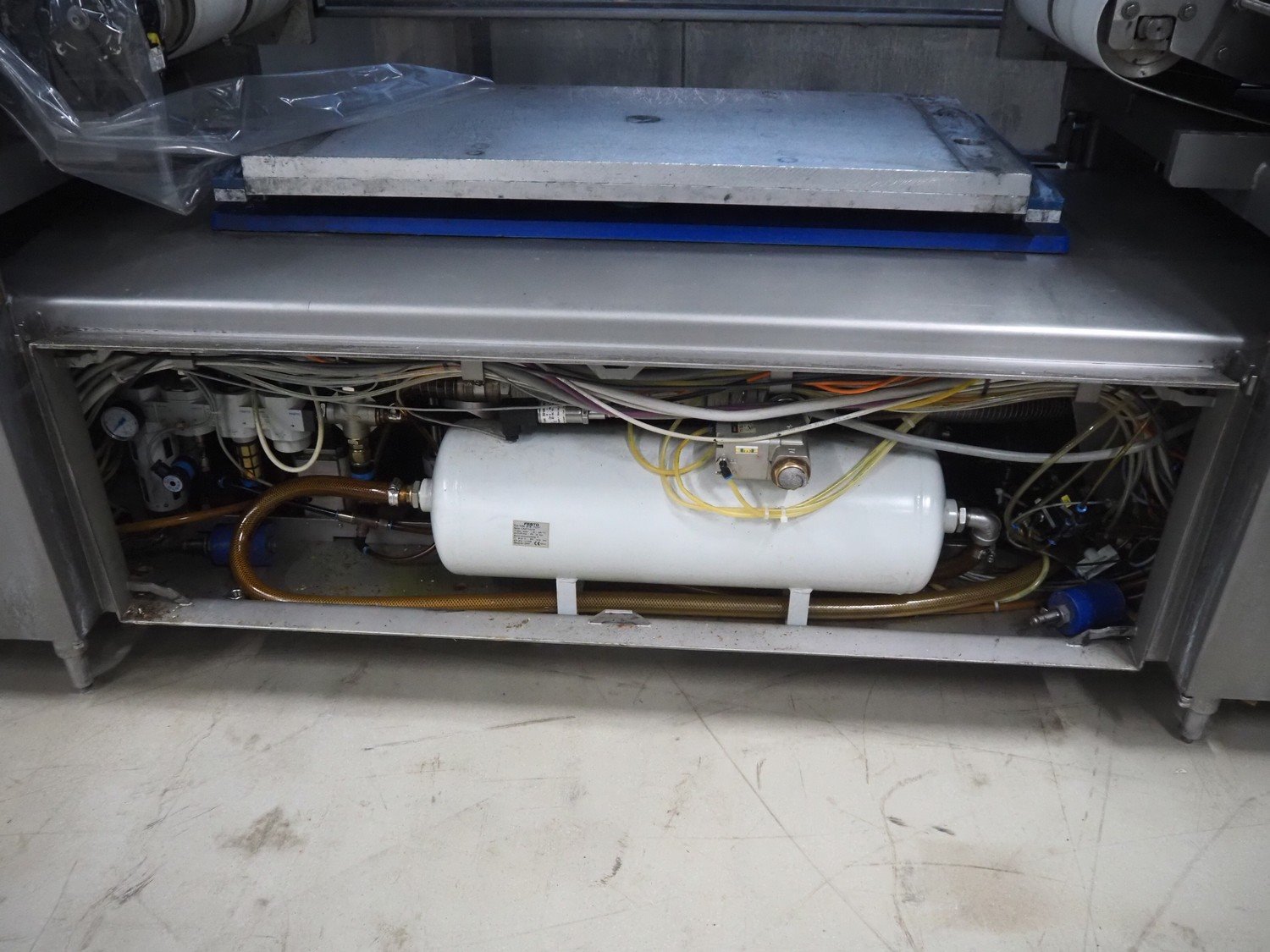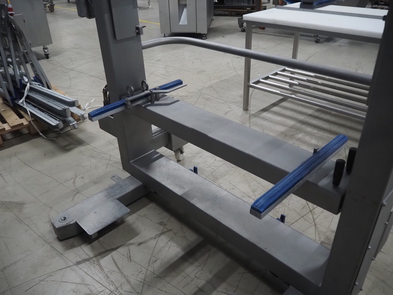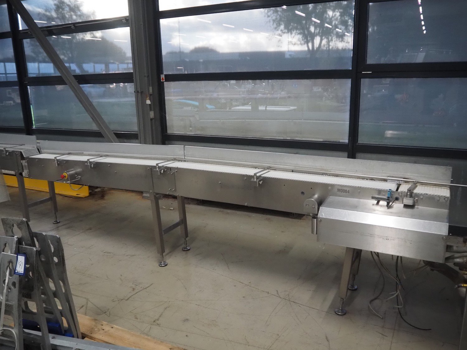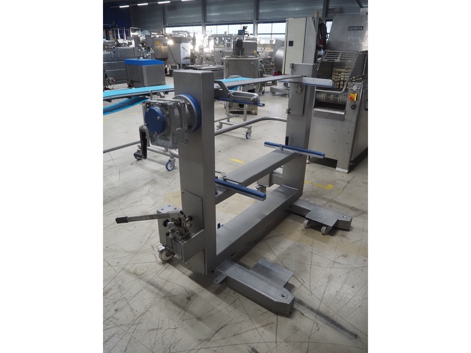 CFS traysealer, type: Twin Star, machine number: 773-118, year of construction: 2004, 400 V, 3 Ph, 50 Hz, 18 A, 12 kW, 2200 kg, plastic mesh infeed belts, belt width: (2x) 170 mm, total dimensions: 4600 mm x 1100 mm x 2200 mm, 2100 mm x 600 mm x 1100 mm and 4000 mm x 1000 mm x 1100 mm. With pallet with spacers and 2 trolleys for changing dyes, dimensions pallet: 2000 mm x 1300 mm x 900 mm, dimensions trolleys: (2x) 1900 mm x 1100 mm x 1350 mm. Incomplete.