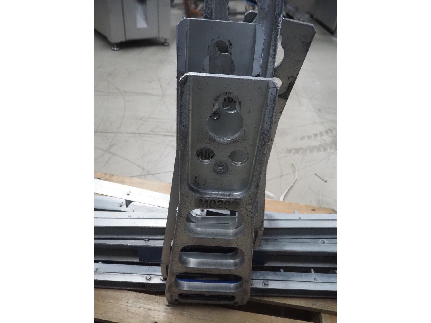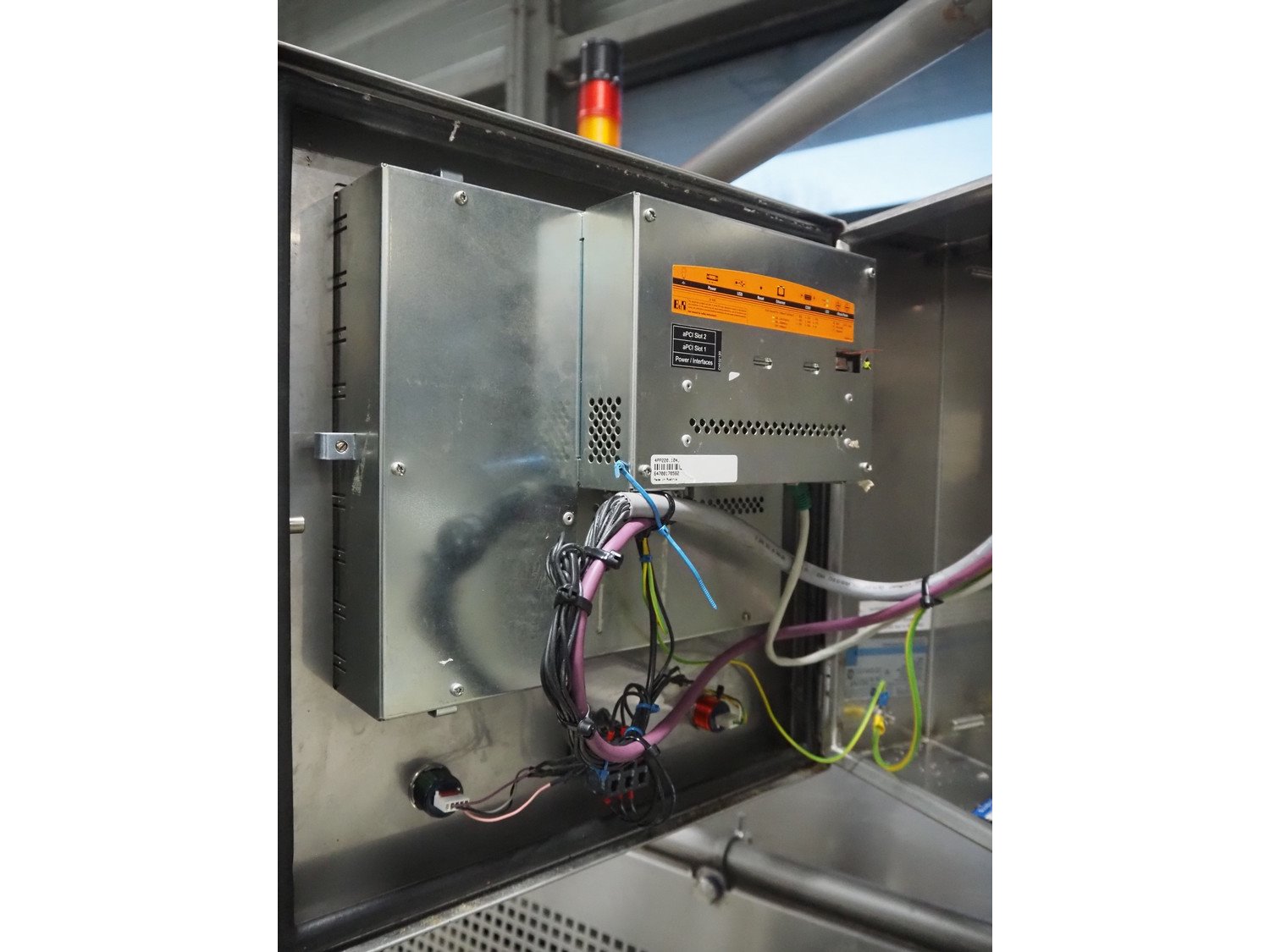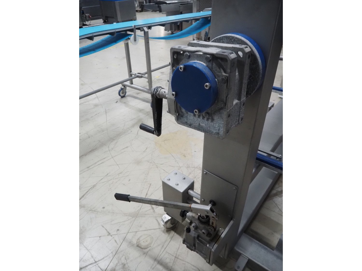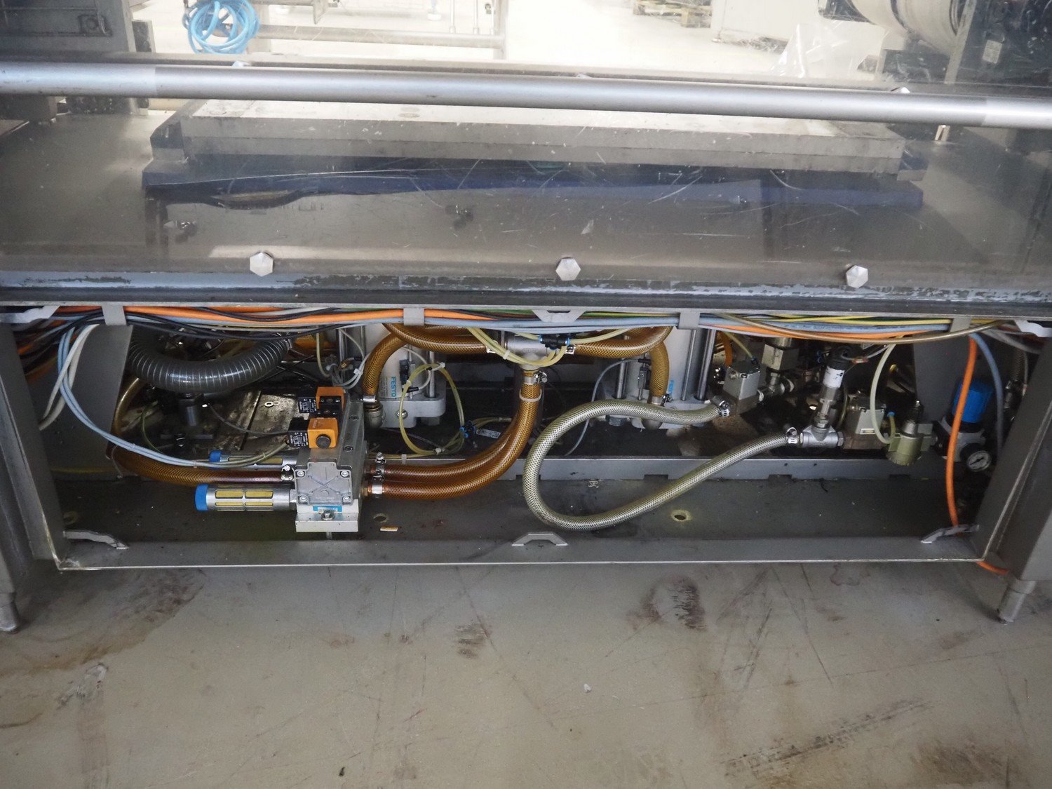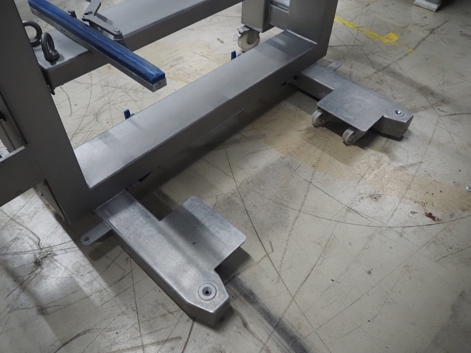 CFS traysealer, type: Twin Star, machine number: 773-118, year of construction: 2004, 400 V, 3 Ph, 50 Hz, 18 A, 12 kW, 2200 kg, plastic mesh infeed belts, belt width: (2x) 170 mm, total dimensions: 4600 mm x 1100 mm x 2200 mm, 2100 mm x 600 mm x 1100 mm and 4000 mm x 1000 mm x 1100 mm. With pallet with spacers and 2 trolleys for changing dyes, dimensions pallet: 2000 mm x 1300 mm x 900 mm, dimensions trolleys: (2x) 1900 mm x 1100 mm x 1350 mm. Incomplete.