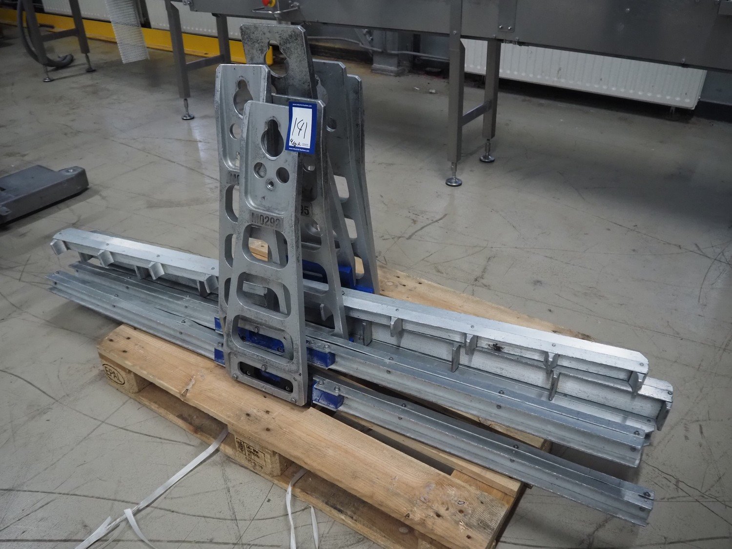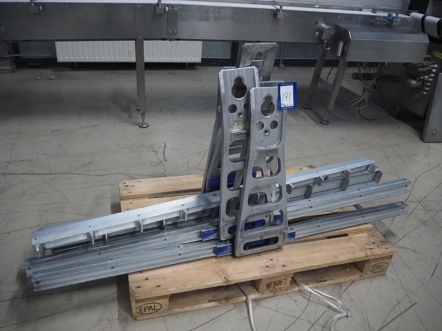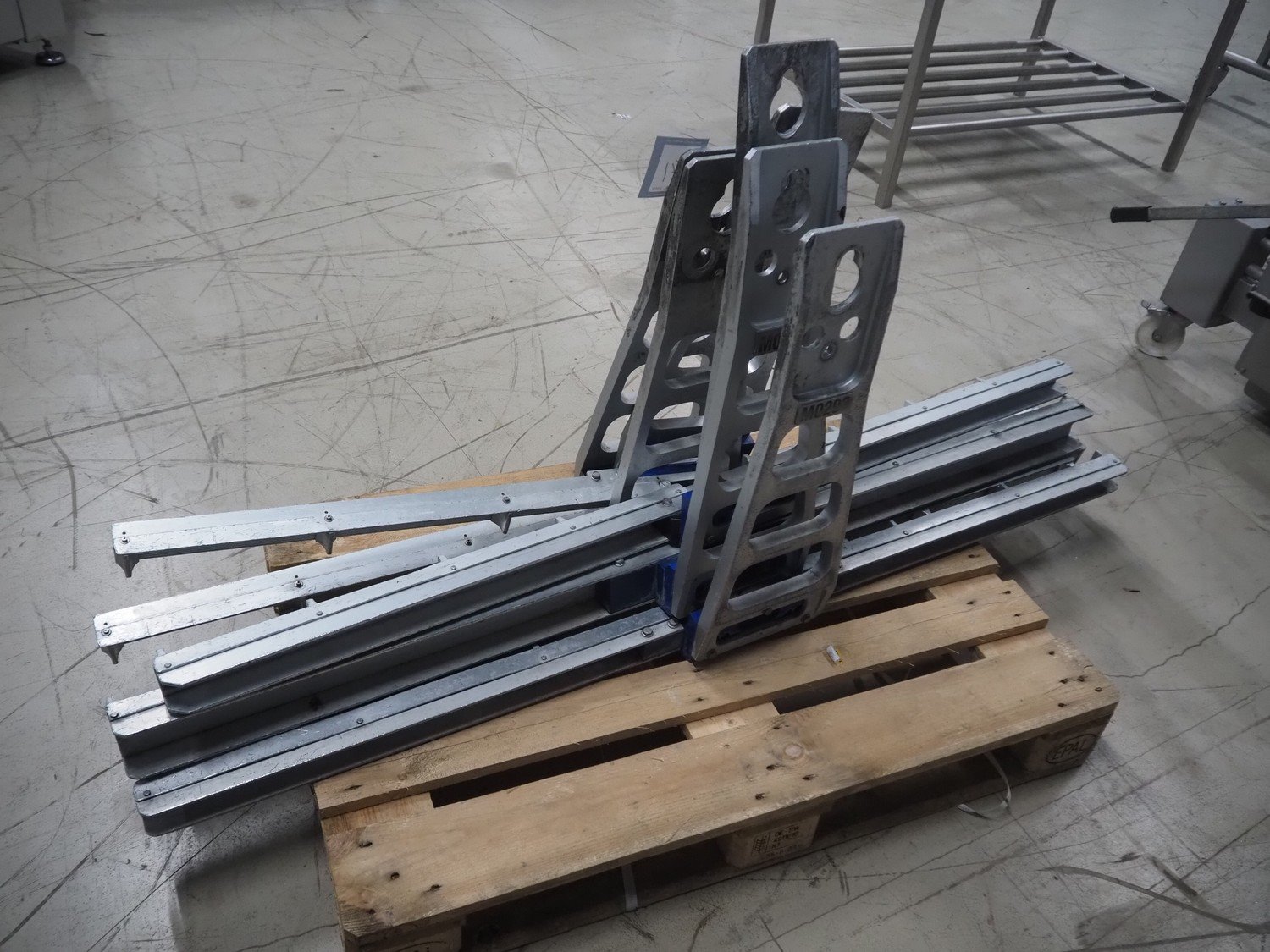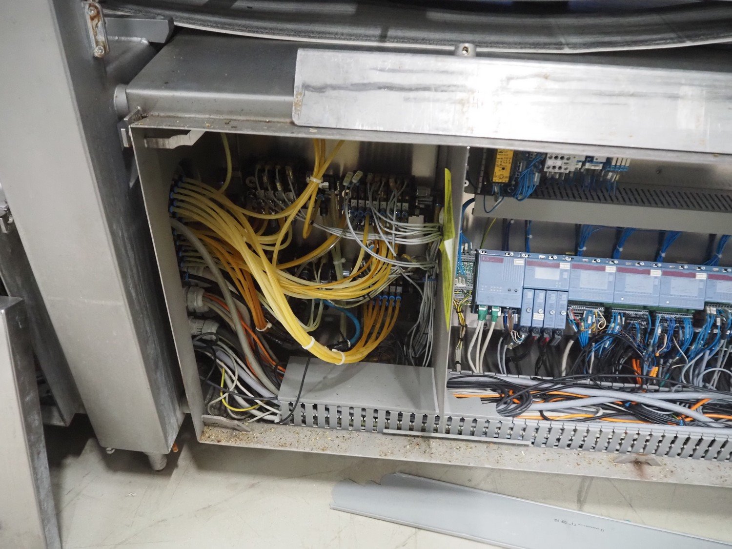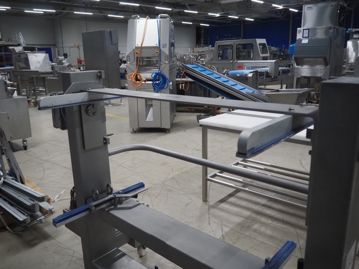 CFS traysealer, type: Twin Star, machine number: 773-118, year of construction: 2004, 400 V, 3 Ph, 50 Hz, 18 A, 12 kW, 2200 kg, plastic mesh infeed belts, belt width: (2x) 170 mm, total dimensions: 4600 mm x 1100 mm x 2200 mm, 2100 mm x 600 mm x 1100 mm and 4000 mm x 1000 mm x 1100 mm. With pallet with spacers and 2 trolleys for changing dyes, dimensions pallet: 2000 mm x 1300 mm x 900 mm, dimensions trolleys: (2x) 1900 mm x 1100 mm x 1350 mm. Incomplete.