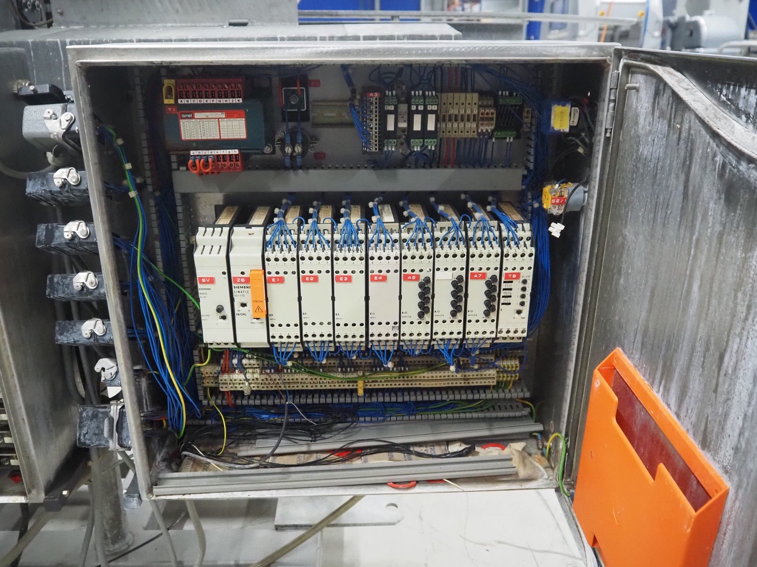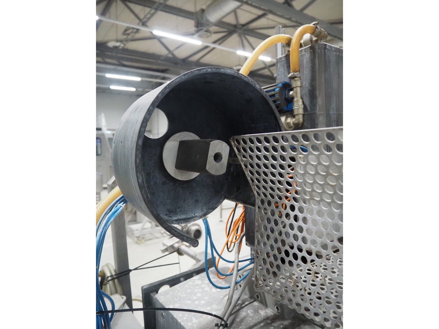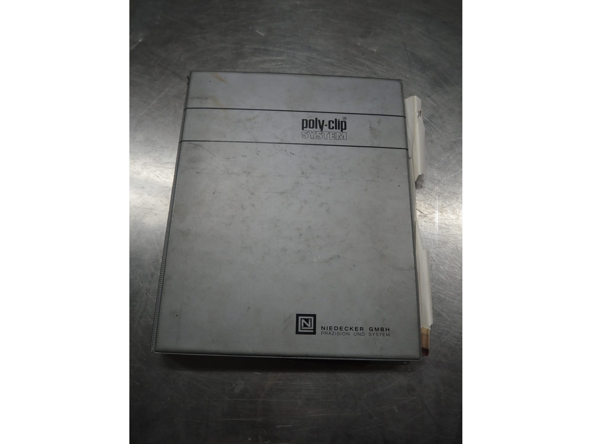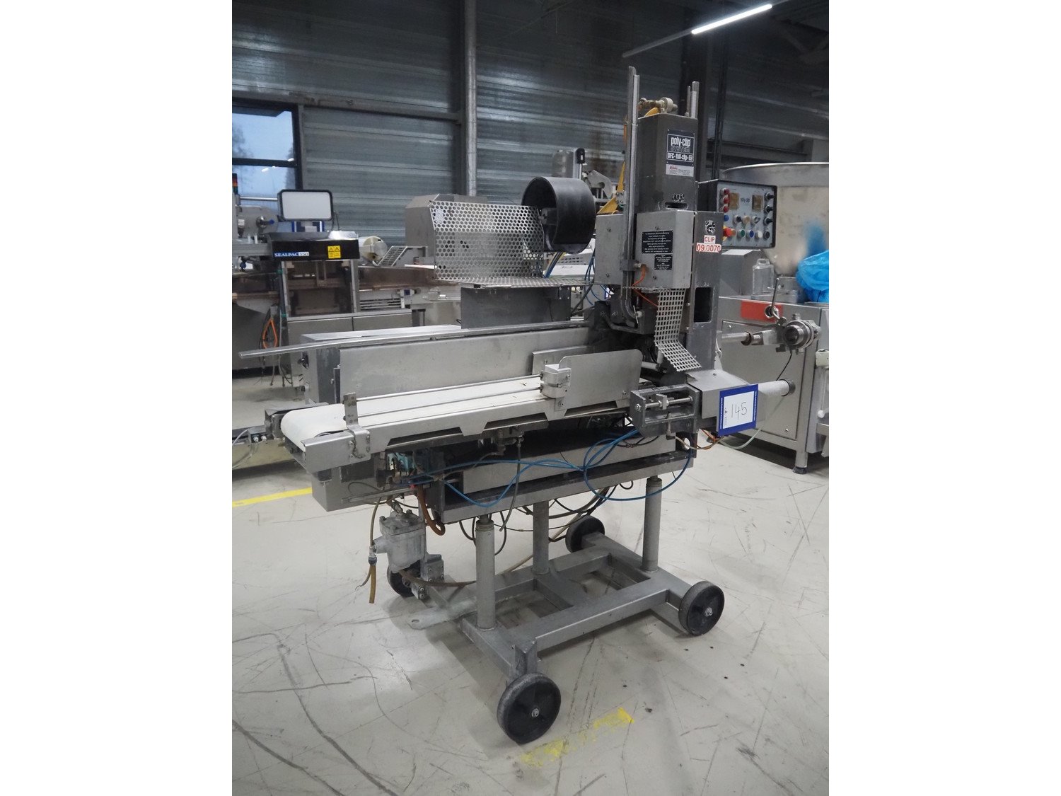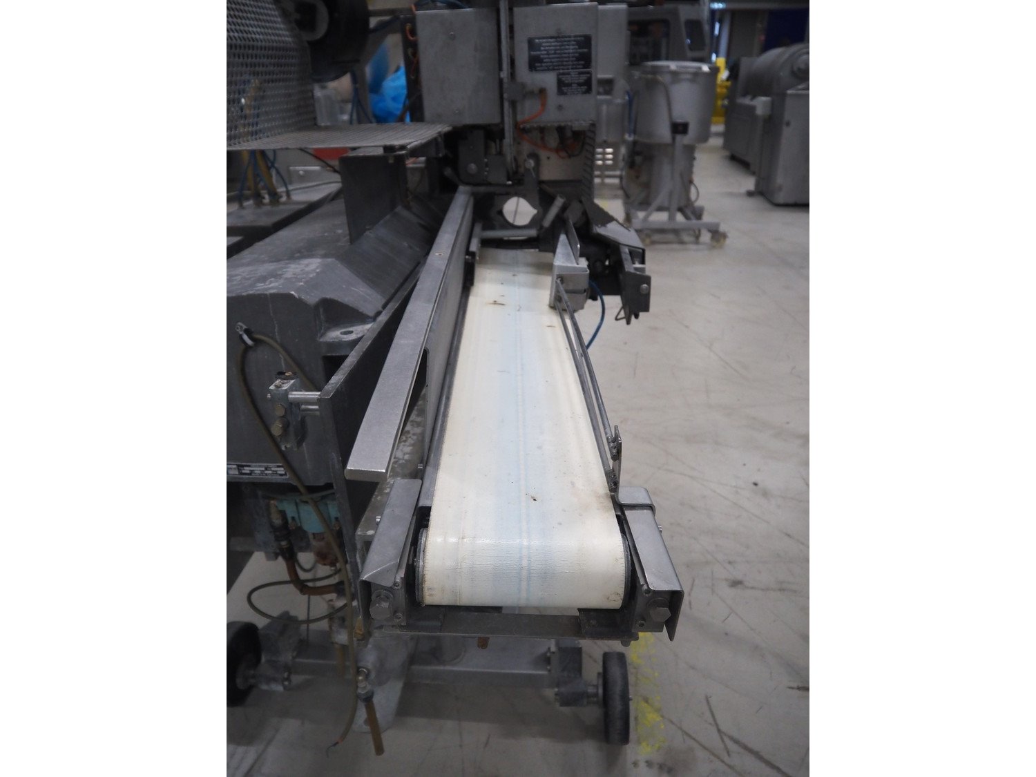 Poly-clip system GmbH & Co. KG mobile double automatic clipper, type: DFC 8161, number: 12879, 380 V, 1 Ph, 50 Hz, 5/7 bar, plastic belt, belt width: 185 mm, total dimensions: 2200 mm x 1100 mm x 1950 mm.