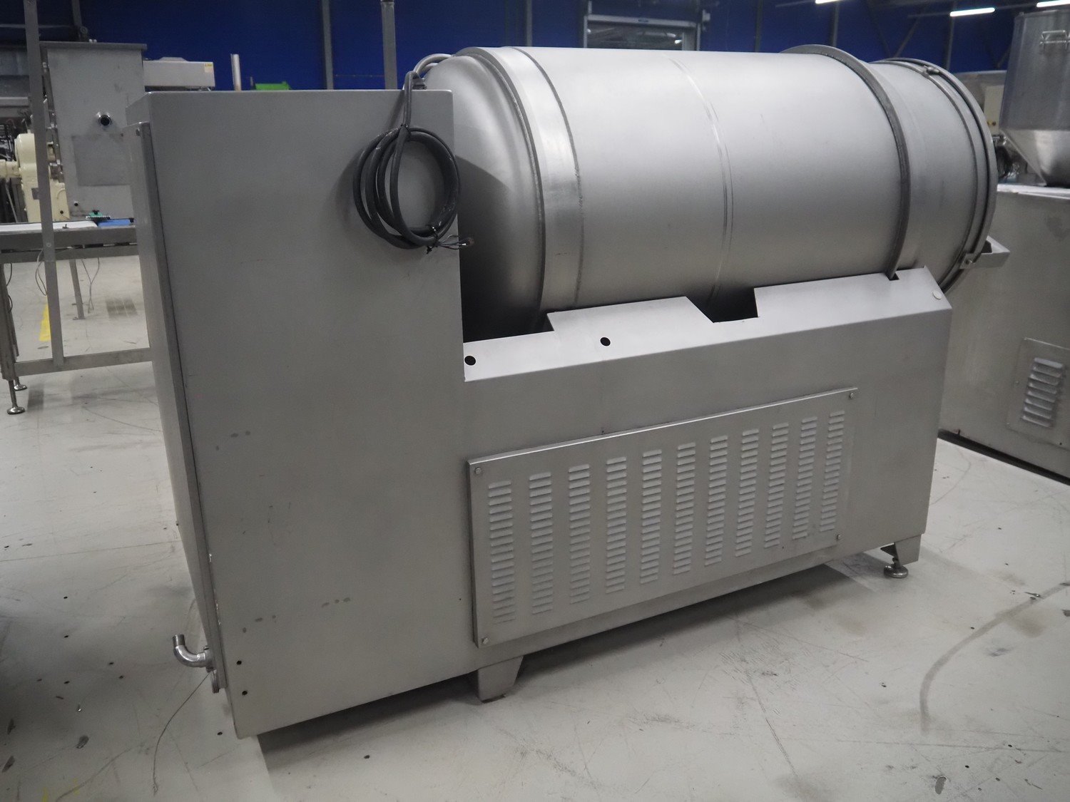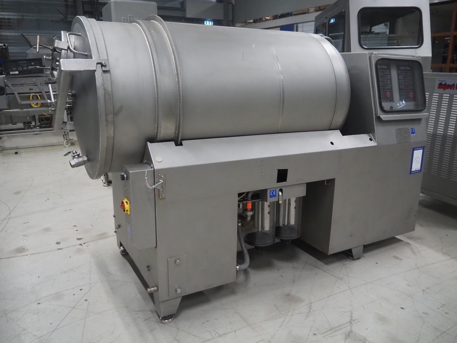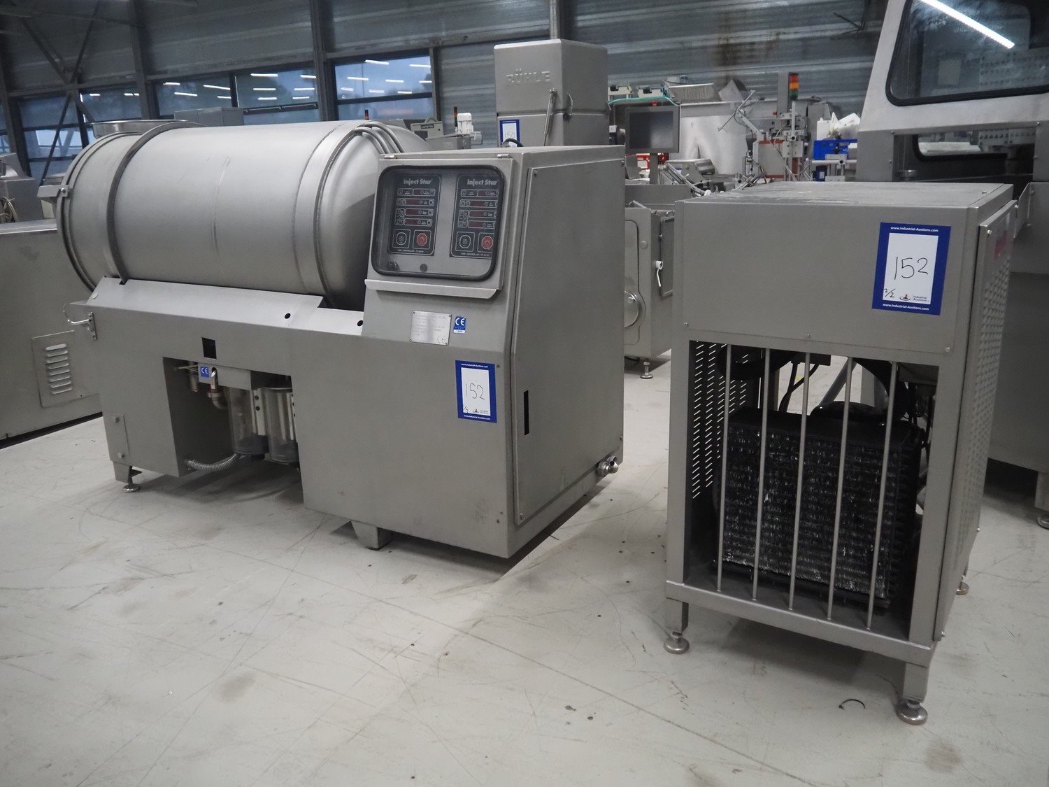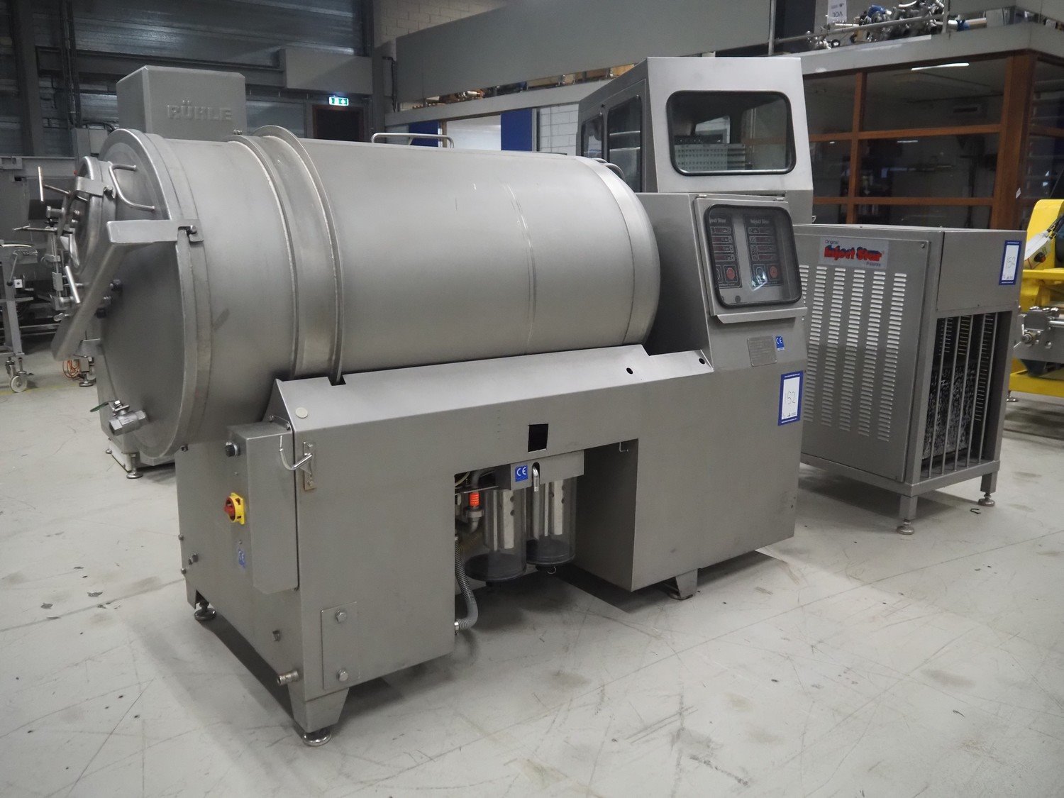 Inject Star cooled vacuum tumbler, type: ES-800-COOL, number: K-101, year of construction: 1999, 400/230 V, 3 Ph, 50 Hz, 3.3 kW, volume: 800 liter, Rietschle vacuum pump, type: VCE 15, number: 1976467, capacity: 15/18 m³ per hour, dimensions: 2550 mm x 1100 mm x 1600 mm. Including cooling unit, dimensions: 750 mm x 820 mm x 1300 mm.