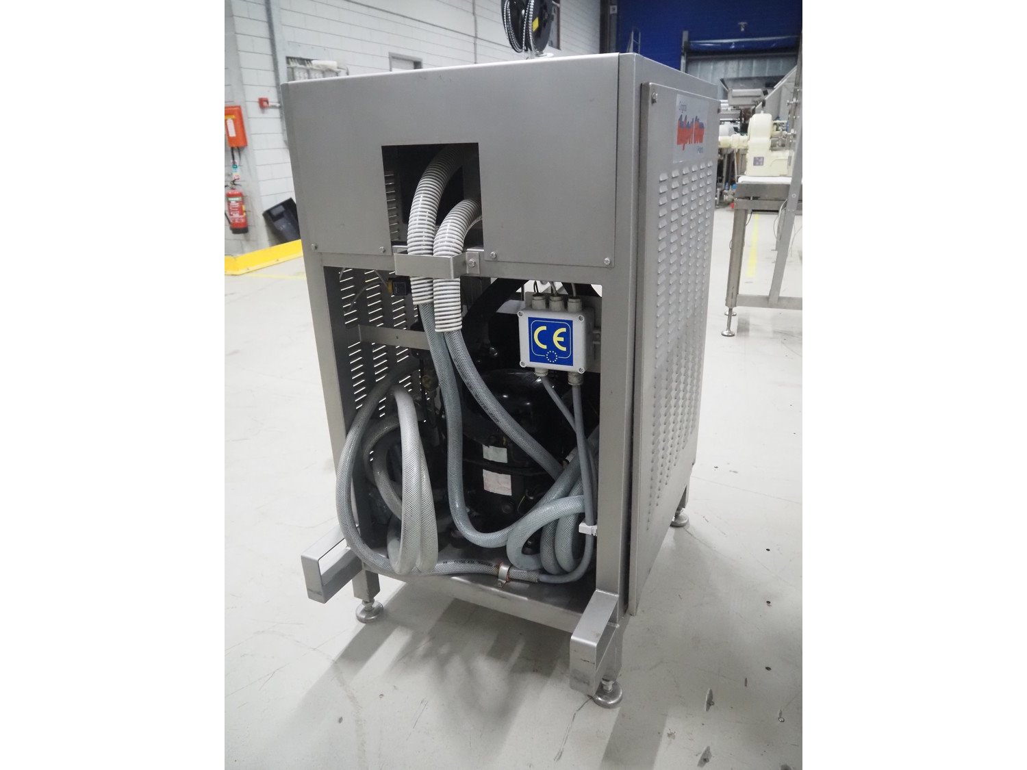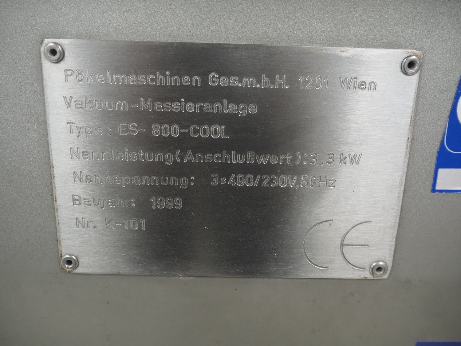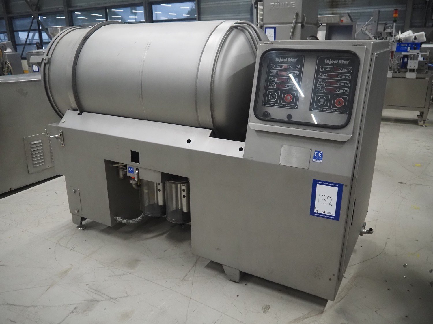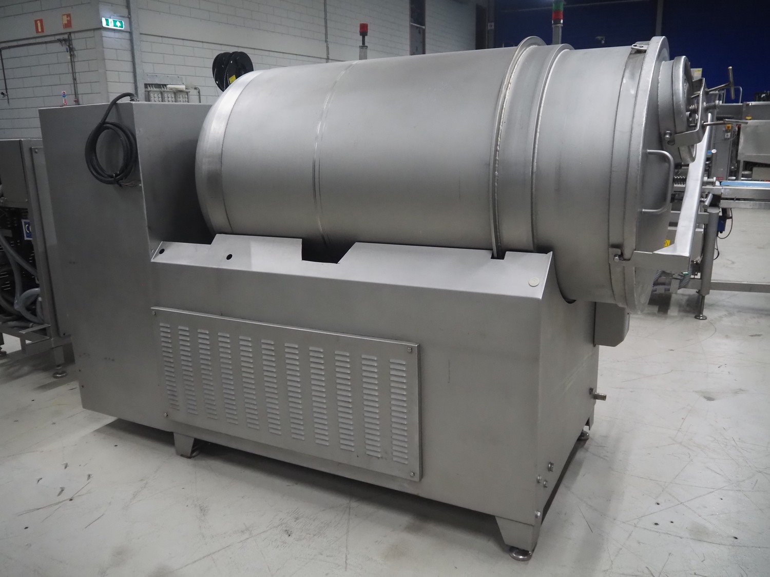 Inject Star cooled vacuum tumbler, type: ES-800-COOL, number: K-101, year of construction: 1999, 400/230 V, 3 Ph, 50 Hz, 3.3 kW, volume: 800 liter, Rietschle vacuum pump, type: VCE 15, number: 1976467, capacity: 15/18 m³ per hour, dimensions: 2550 mm x 1100 mm x 1600 mm. Including cooling unit, dimensions: 750 mm x 820 mm x 1300 mm.