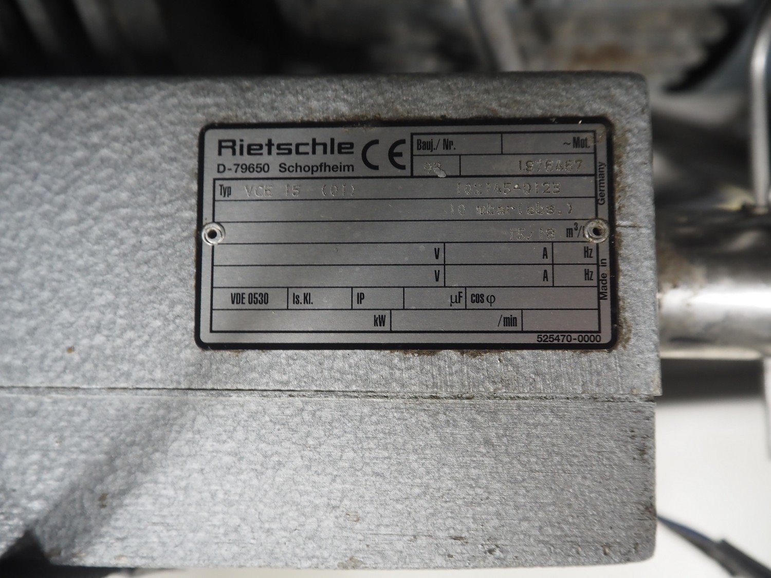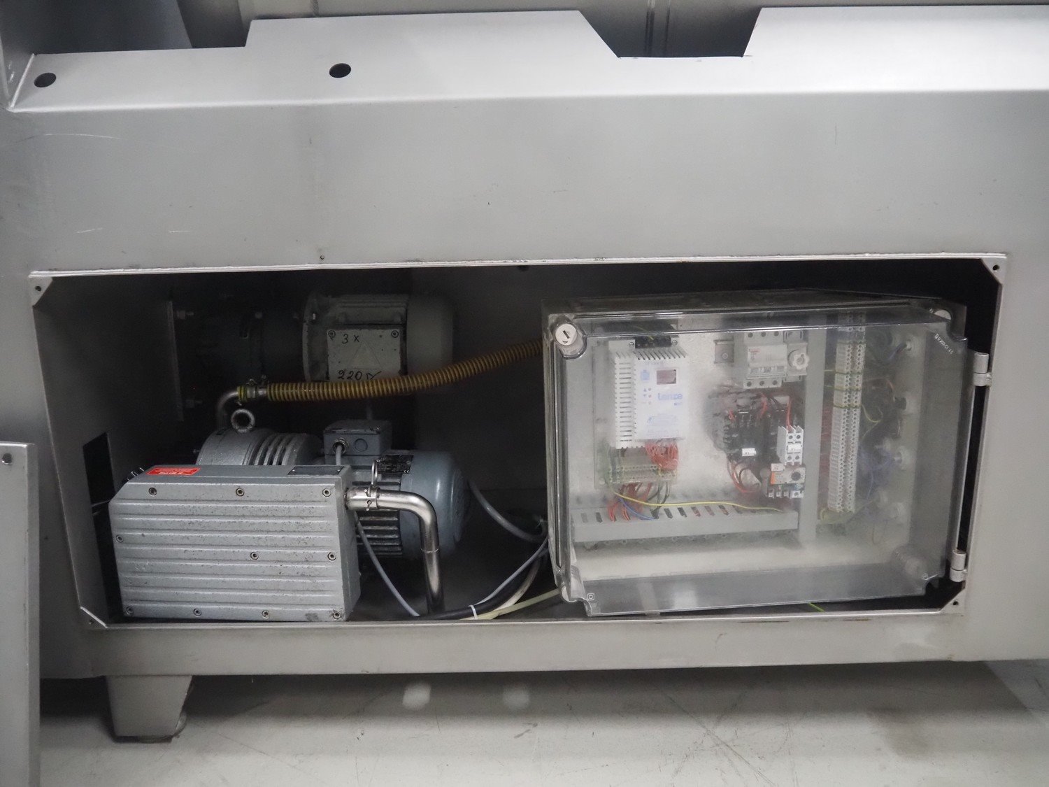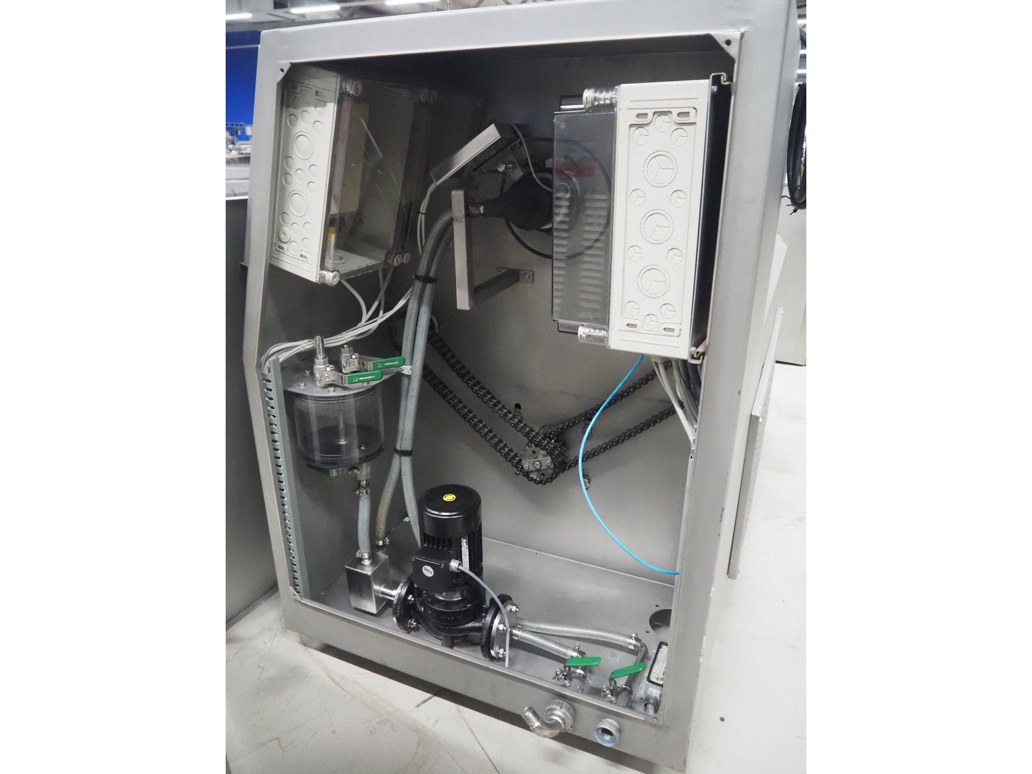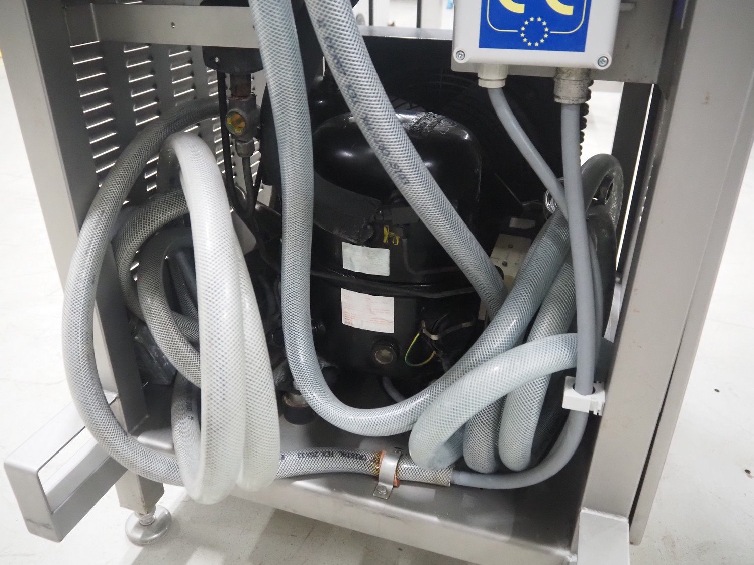 Inject Star cooled vacuum tumbler, type: ES-800-COOL, number: K-101, year of construction: 1999, 400/230 V, 3 Ph, 50 Hz, 3.3 kW, volume: 800 liter, Rietschle vacuum pump, type: VCE 15, number: 1976467, capacity: 15/18 m³ per hour, dimensions: 2550 mm x 1100 mm x 1600 mm. Including cooling unit, dimensions: 750 mm x 820 mm x 1300 mm.