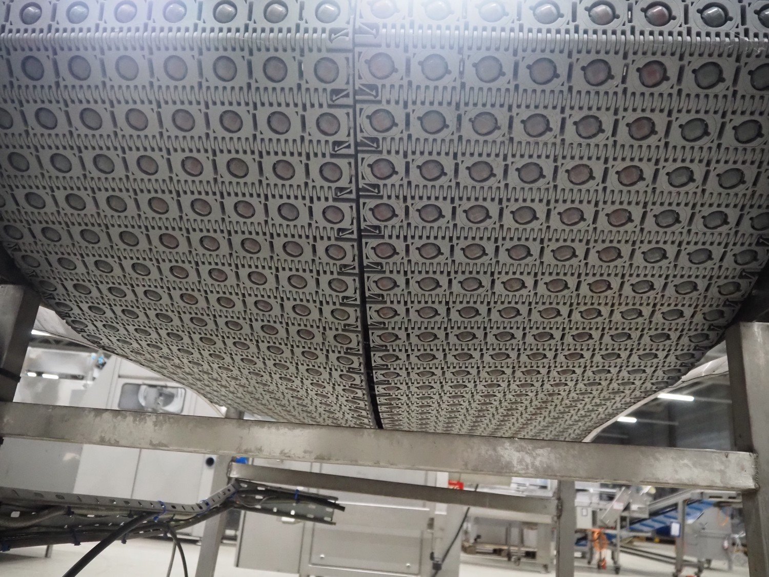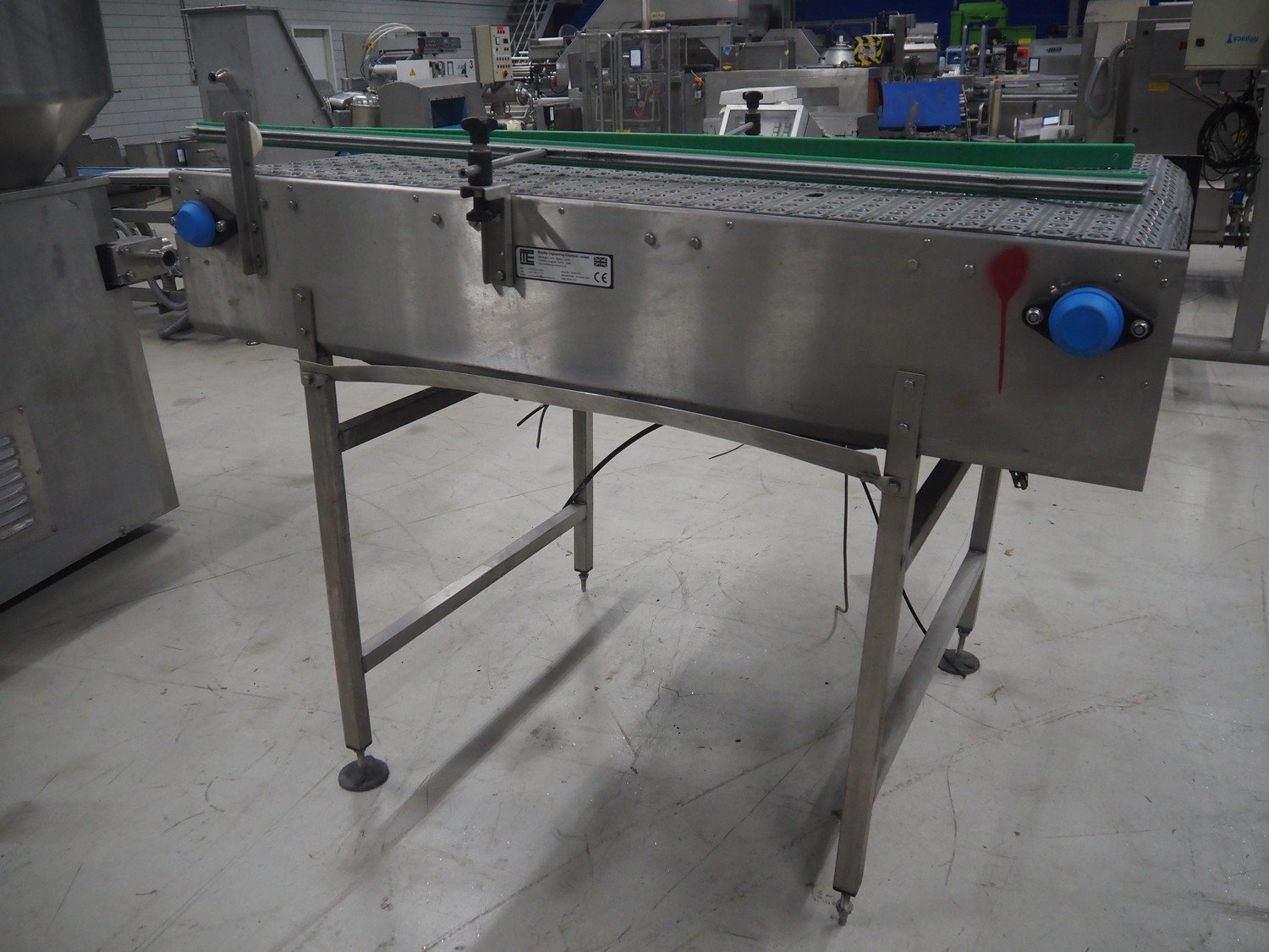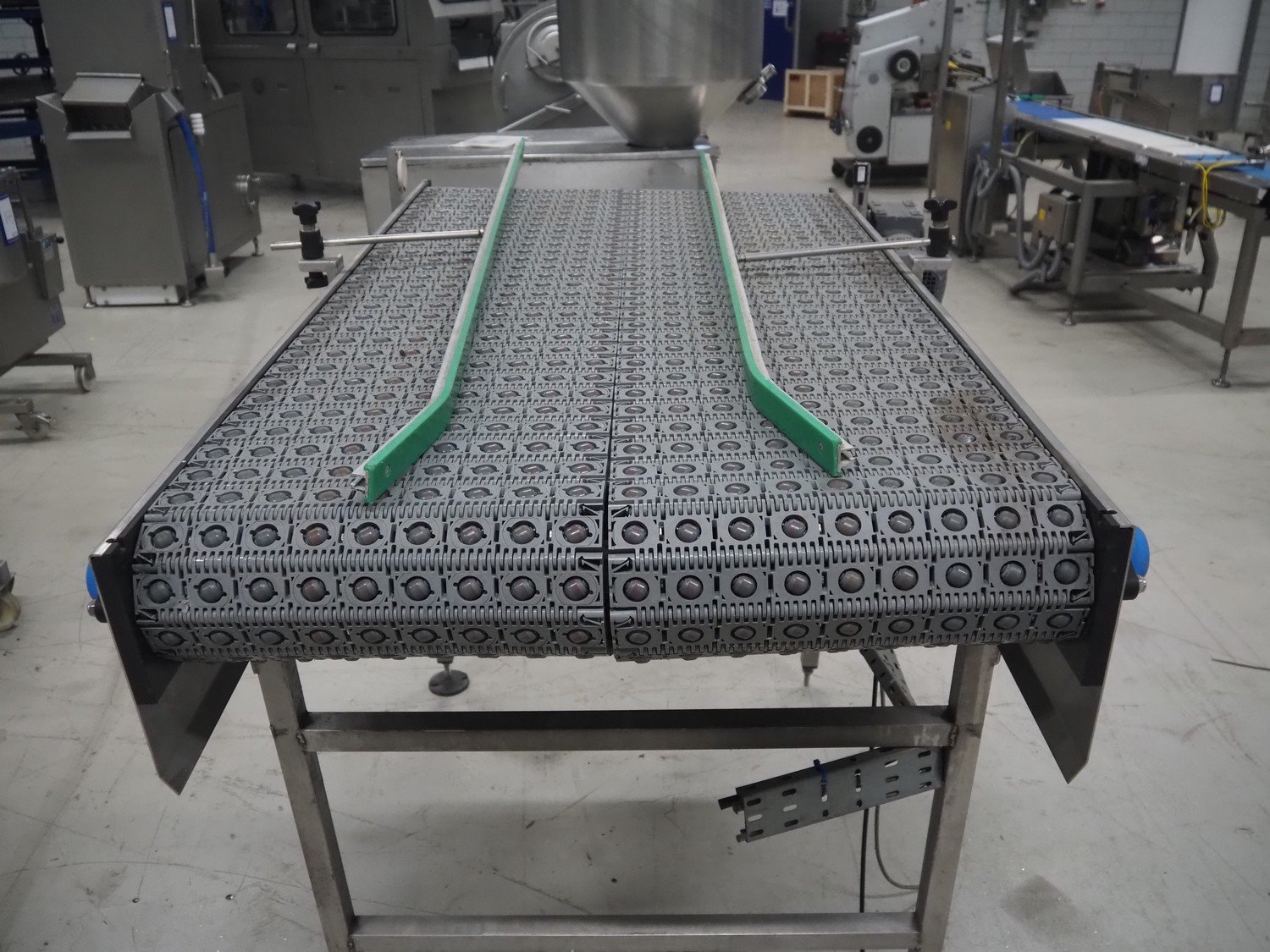 Mobility Engineering Limited transport belt, type: Merge Unit, serial number: CN9403879, year of construction: November 2009, plastic belt with rollers, belt width: 920 mm, total dimensions: 1850 mm x 1300 mm x 1315 mm.