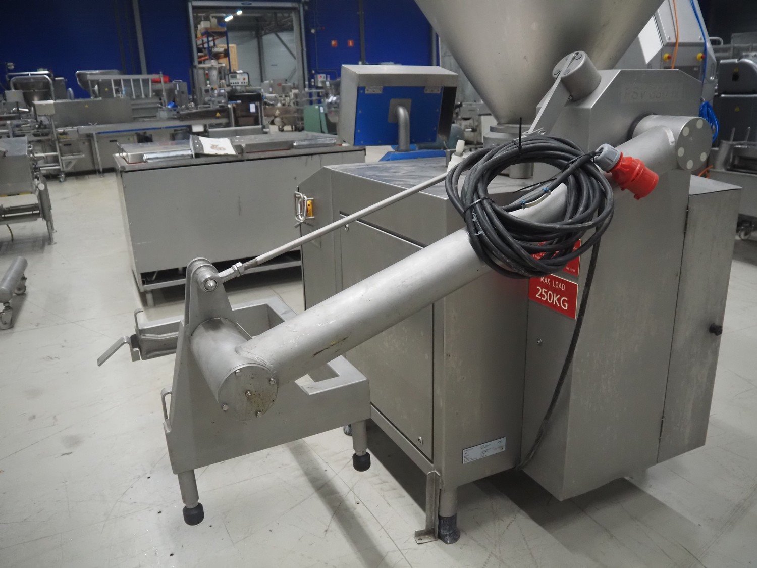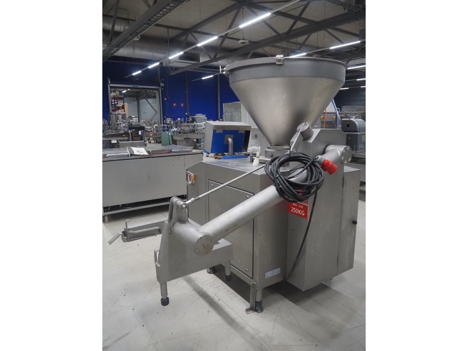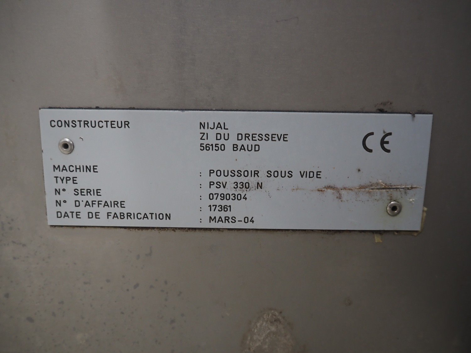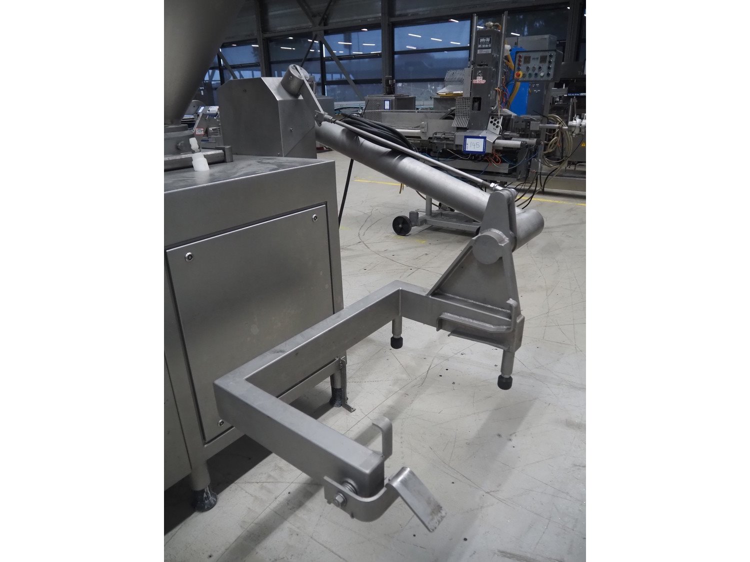 Nijal vacuum filling machine with lifter for 200 liter meat bins, type: PSV 330 N, serial number: 0790304, year of construction: March 2004, dimensions: 2050 mm x 1600 mm x 1950 mm.