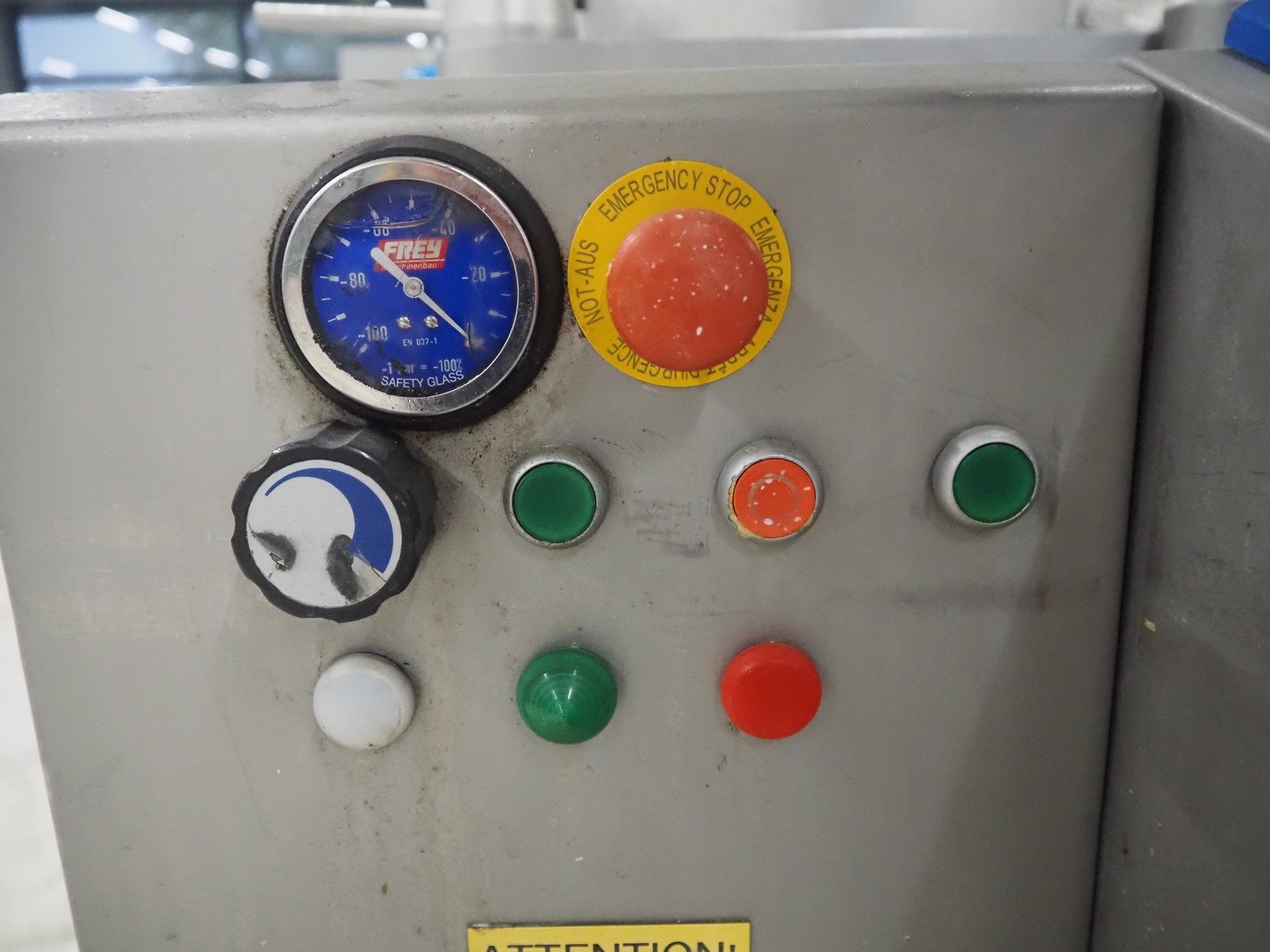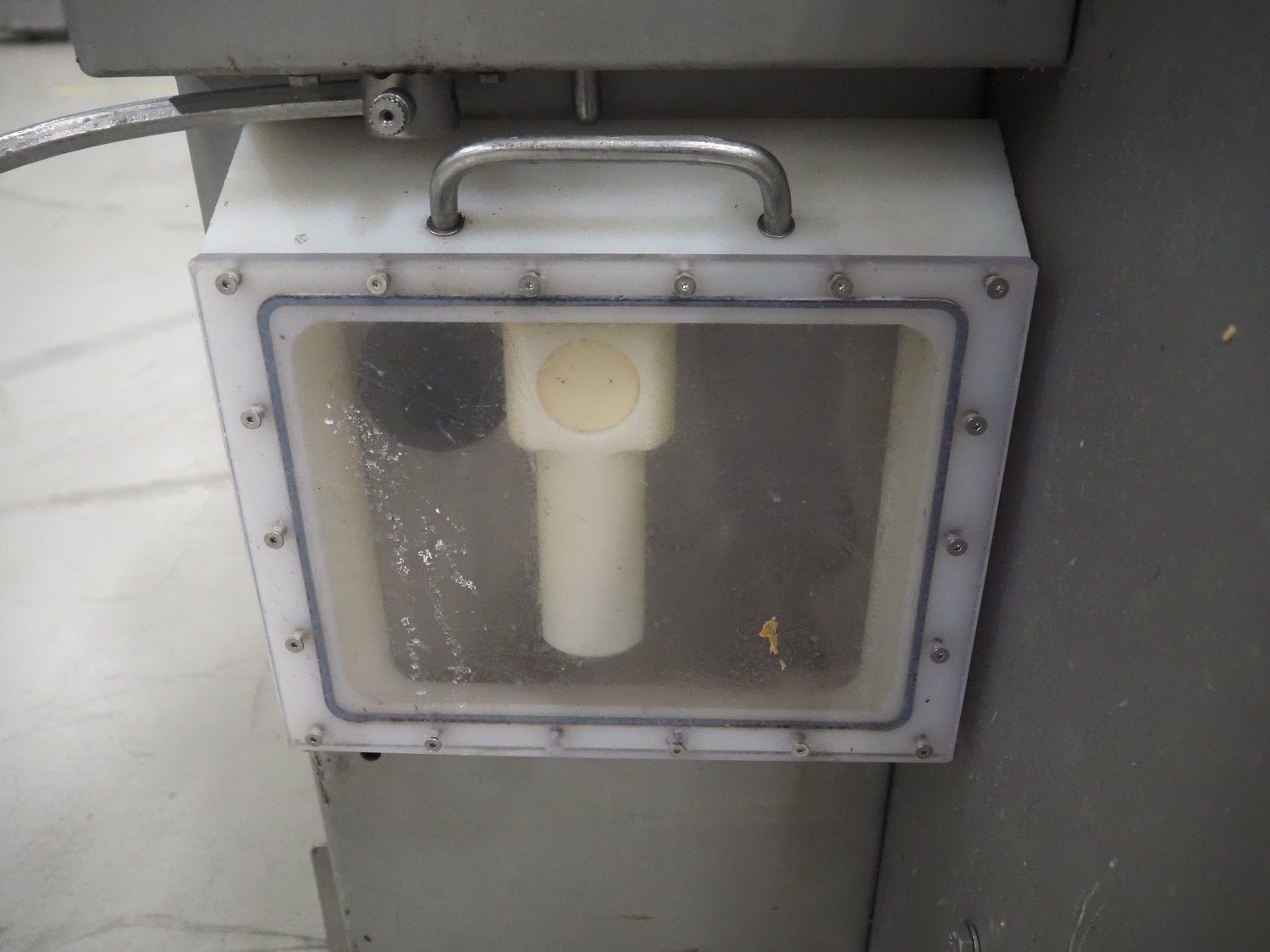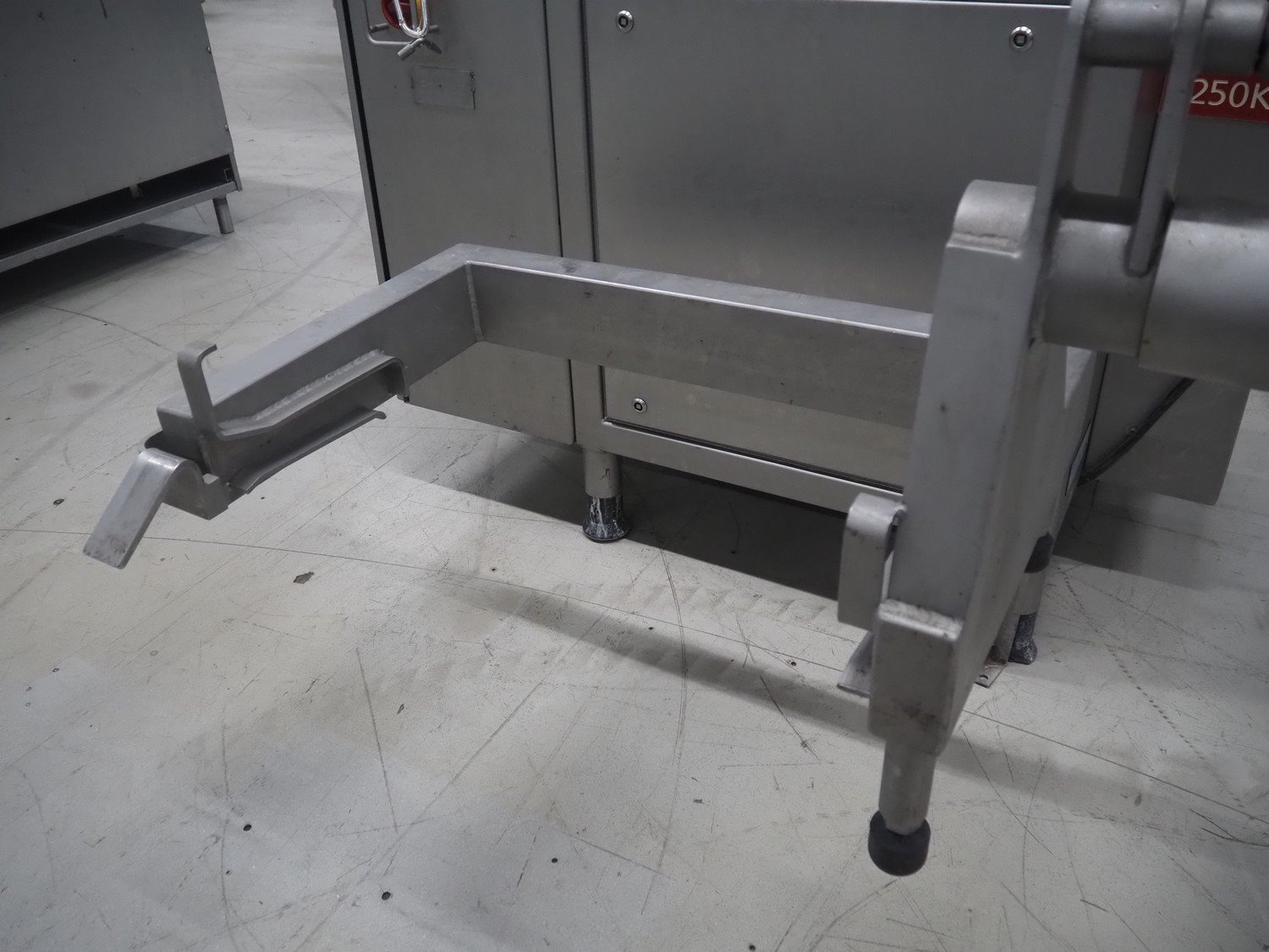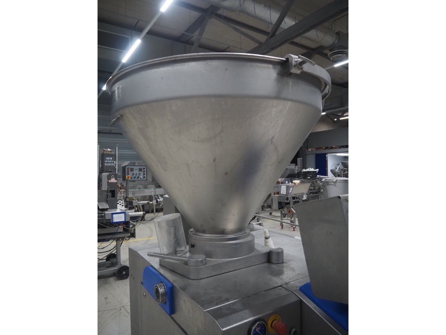 Nijal vacuum filling machine with lifter for 200 liter meat bins, type: PSV 330 N, serial number: 0790304, year of construction: March 2004, dimensions: 2050 mm x 1600 mm x 1950 mm.